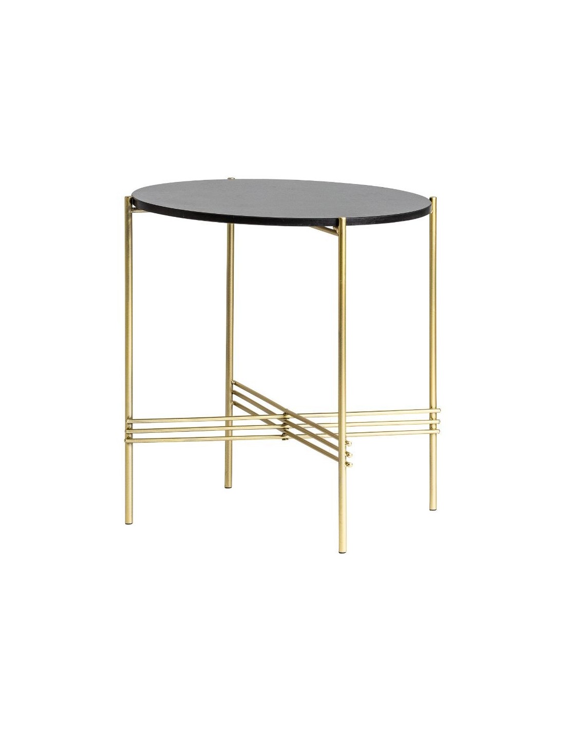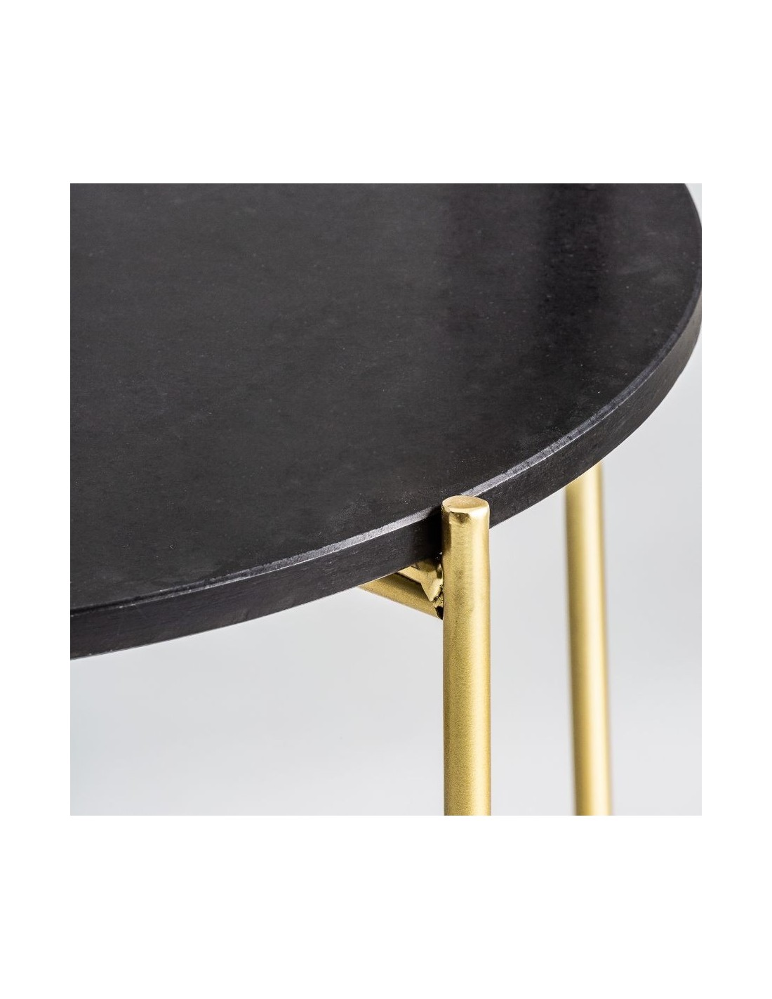 Mesa Auxiliar Parz, En Color Negro/Oro, De Estilo Art Deco. Fabricado En Hierro, Combinado Con Mármol. Producto Desmontable.