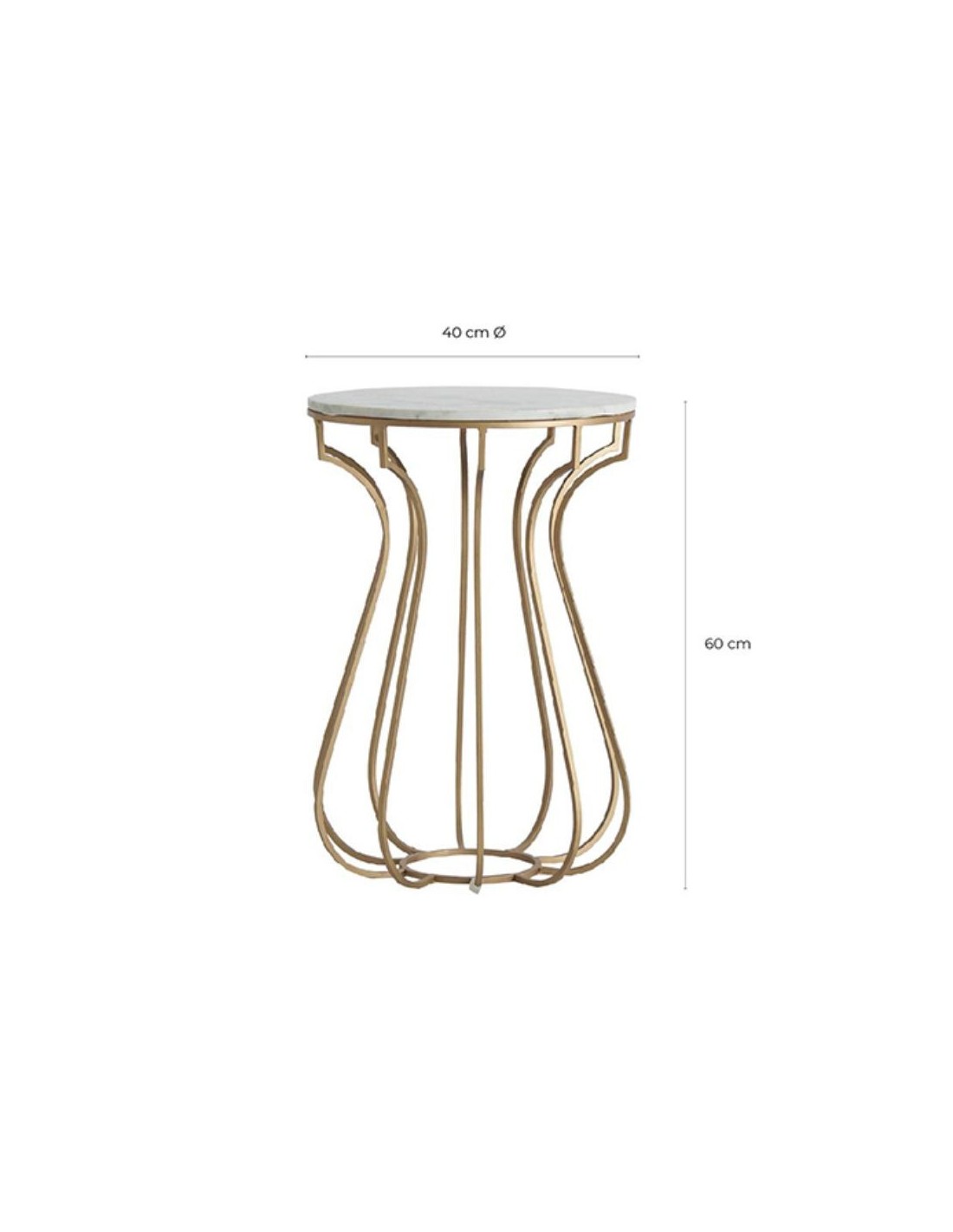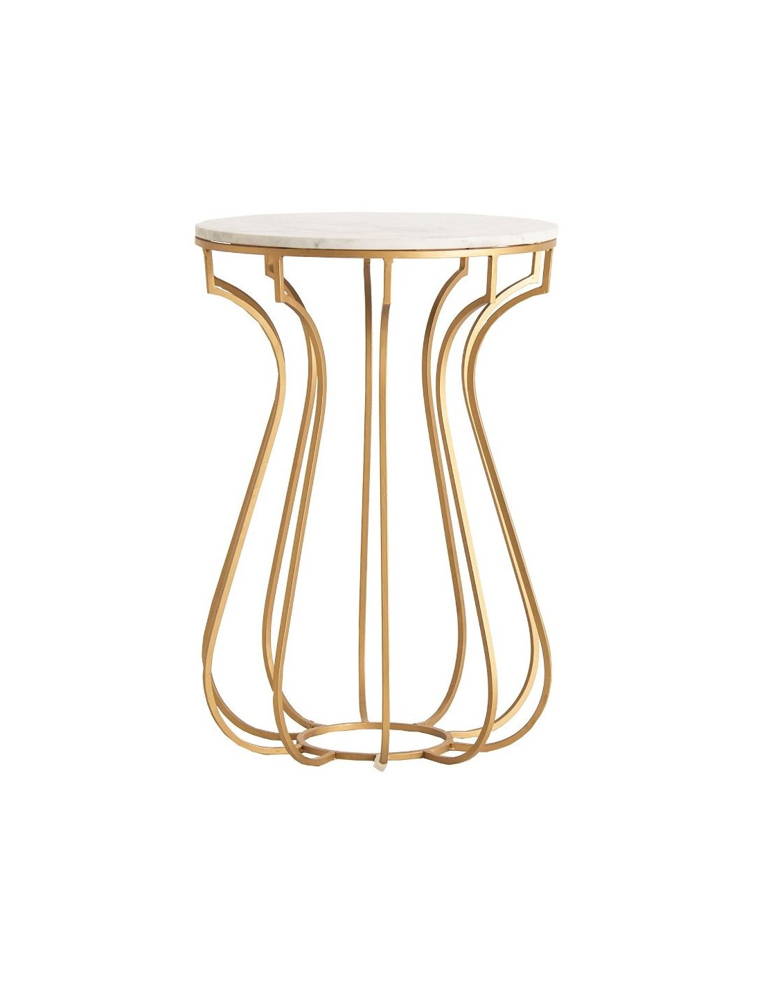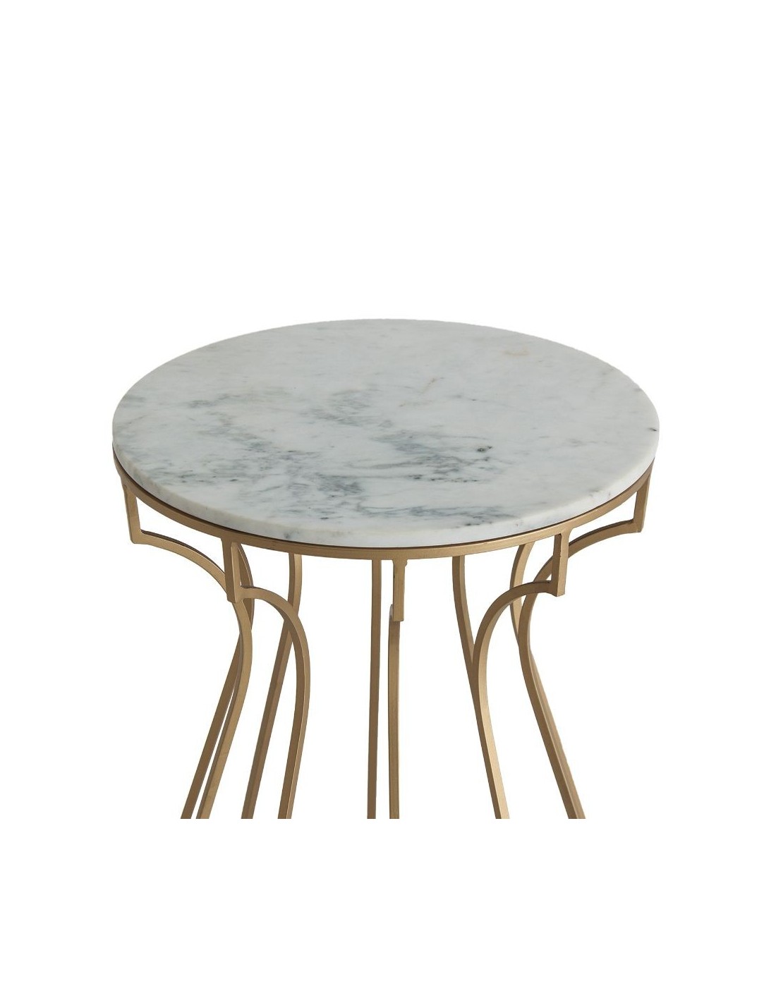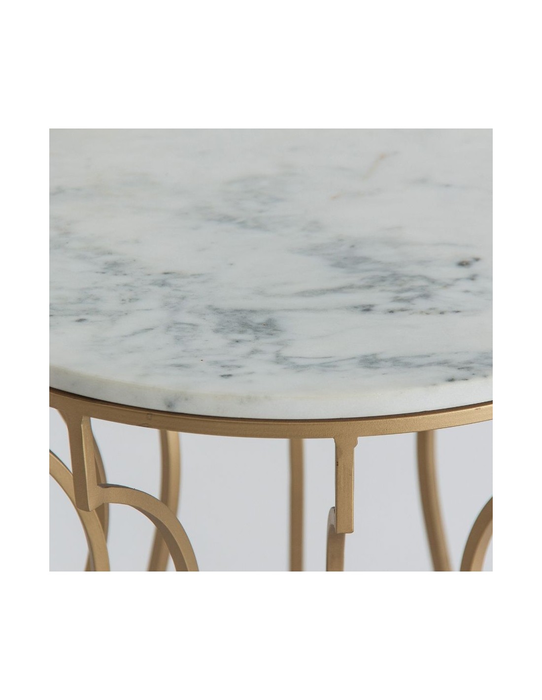 Mesa Auxiliar Redonda Tweng, En Color Blanco/Oro, De Estilo Art Deco. Fabricado En Hierro, Combinado Con Mármol.