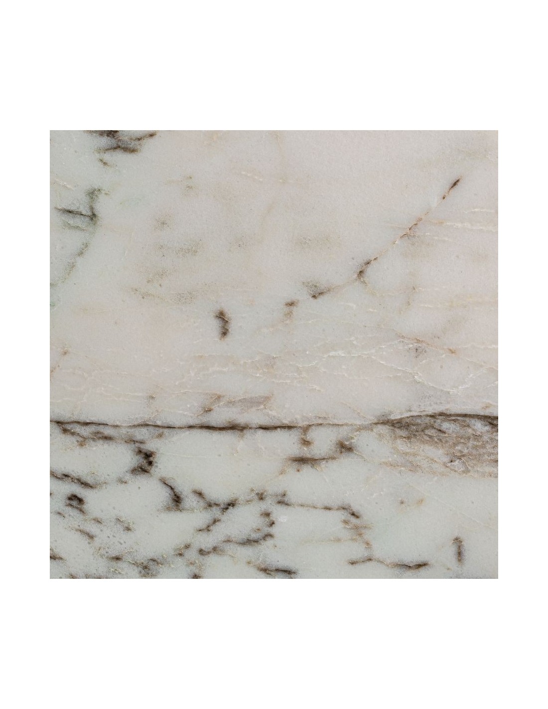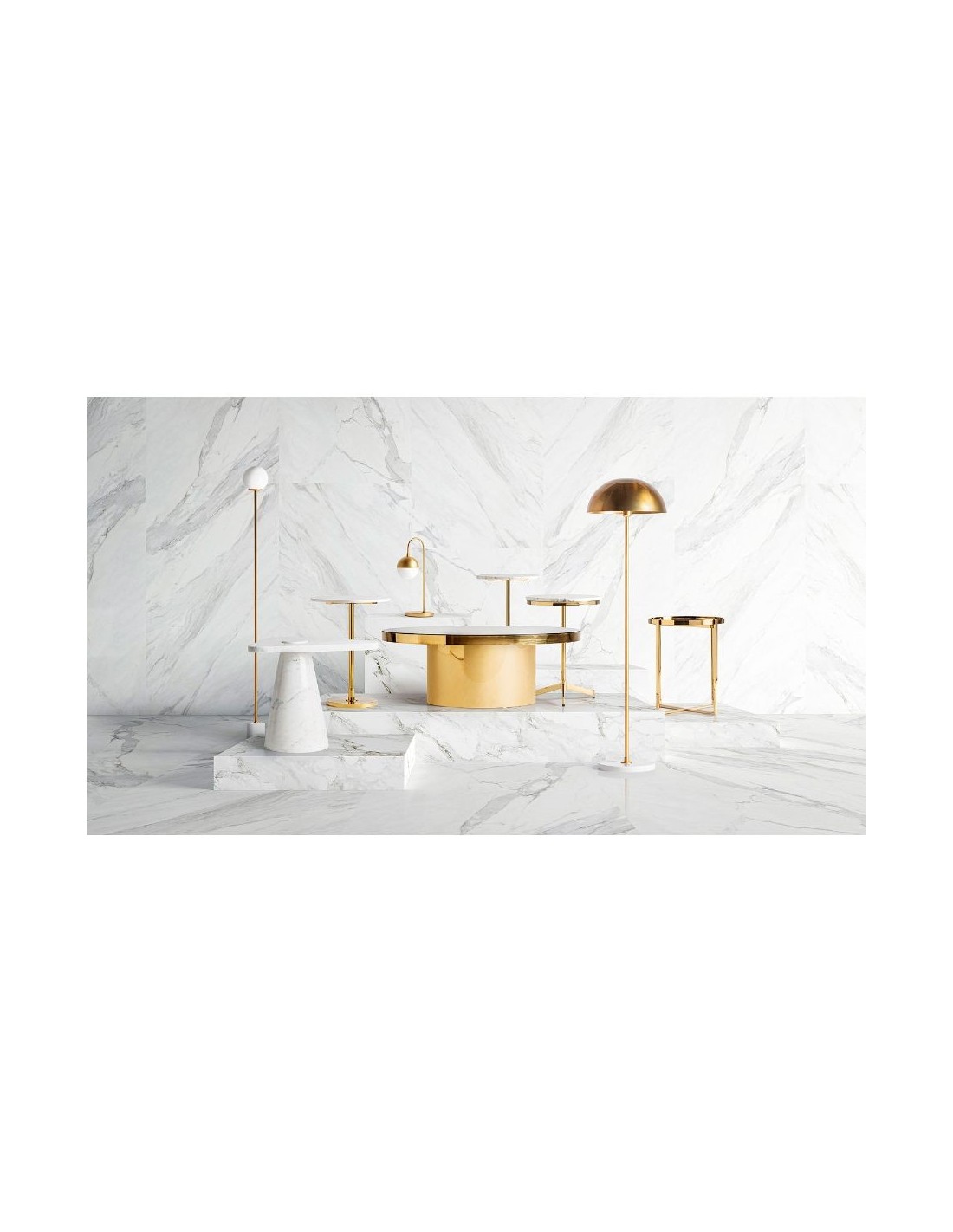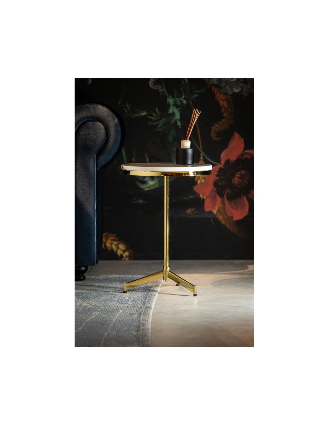 Mesa Auxiliar Redonda Ugod, En Color Blanco/Oro Brillo, De Estilo Art Deco. Fabricado En Acero, Combinado Con Mármol. Producto Desmontable.