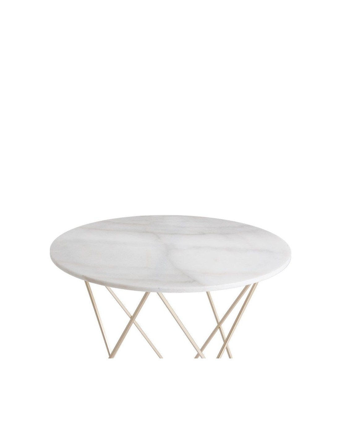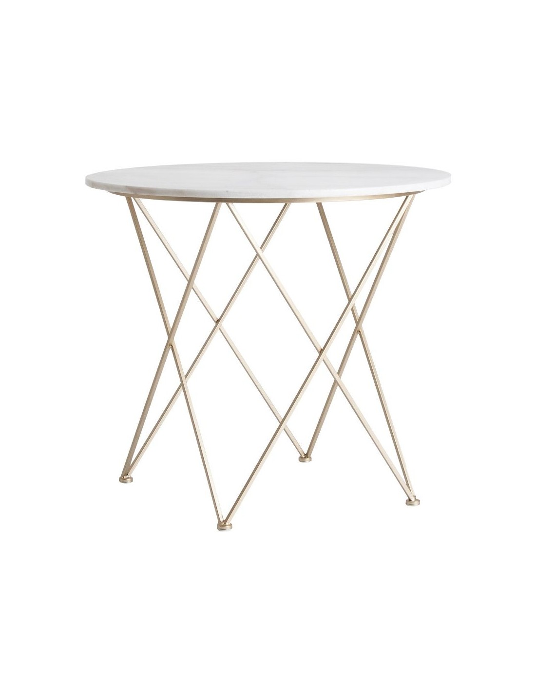 Mesa Bar Dernice, En Color Blanco/Oro Brillo, De Estilo Art Deco. Fabricado En Acero, Combinado Con Mármol.