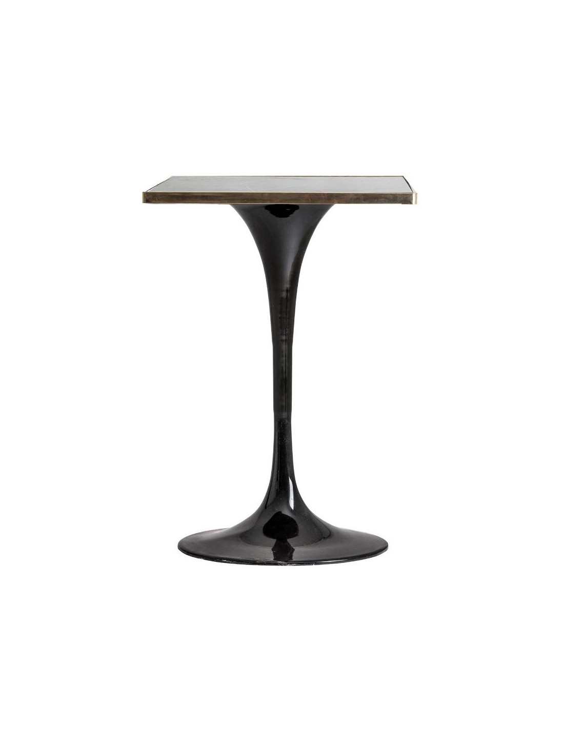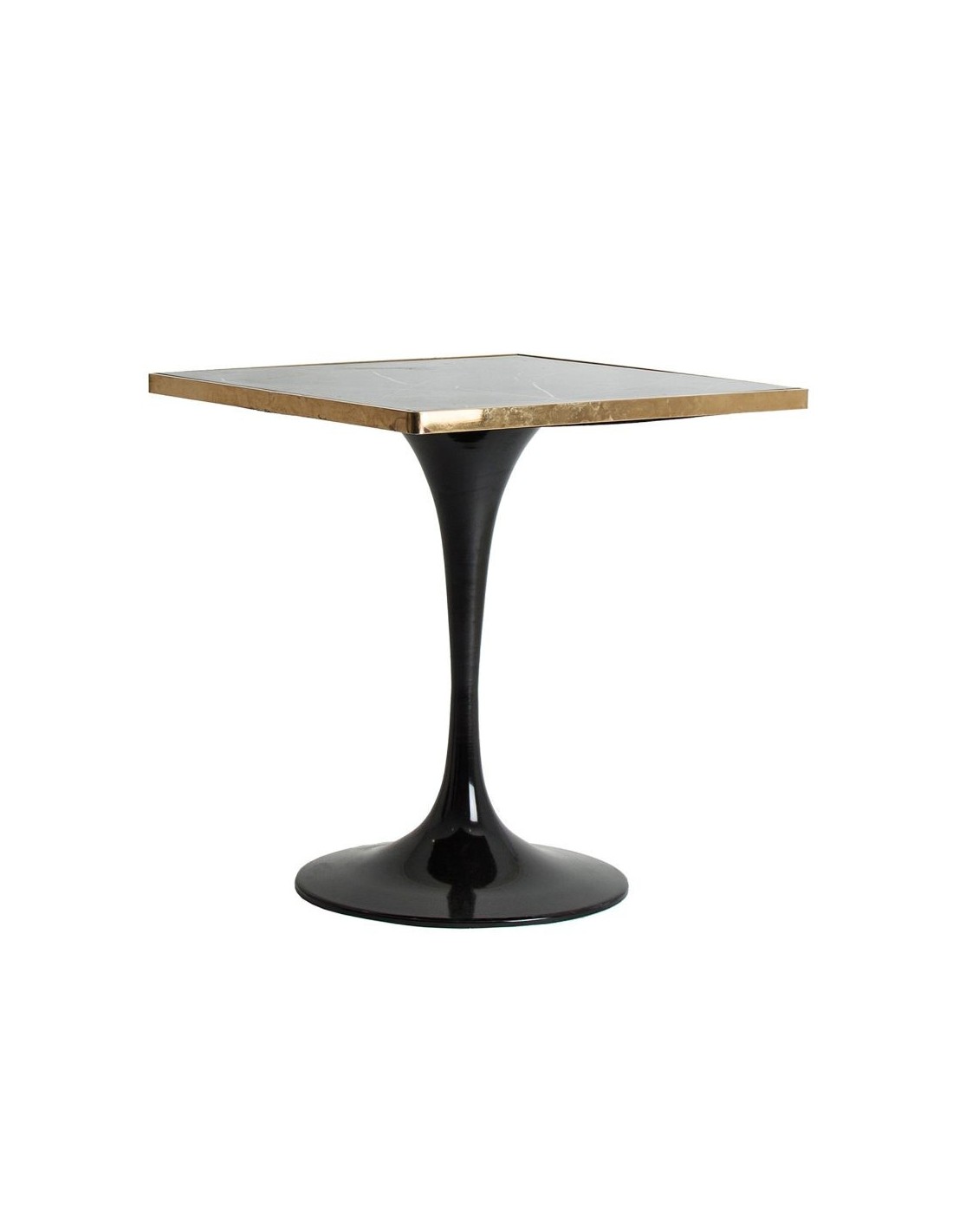 Mesa Bar Cuadrada Than, En Color Negro, De Estilo Art Deco. Fabricado En Mármol Porcelánic, Combinado Con Hierro Y Acero. Granito Con Acabado Mármol.