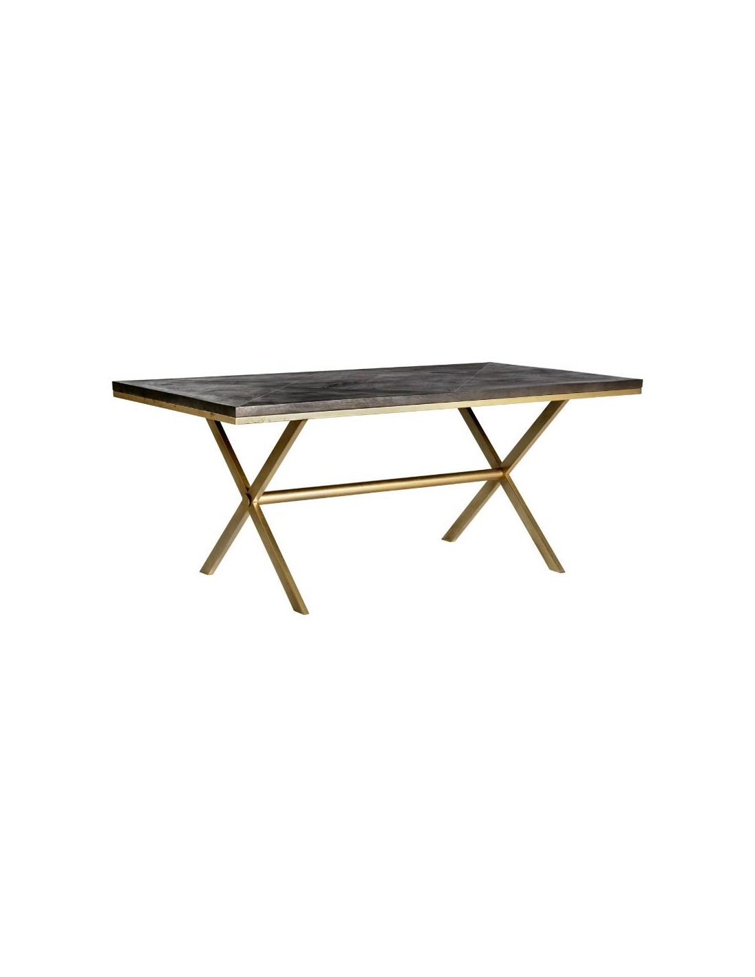 Mesa Comedor Mussing, En Color Negro/Oro, De Estilo Art Deco. Fabricado En Madera De Mango, Combinado Con Hierro. Producto Desmontable.