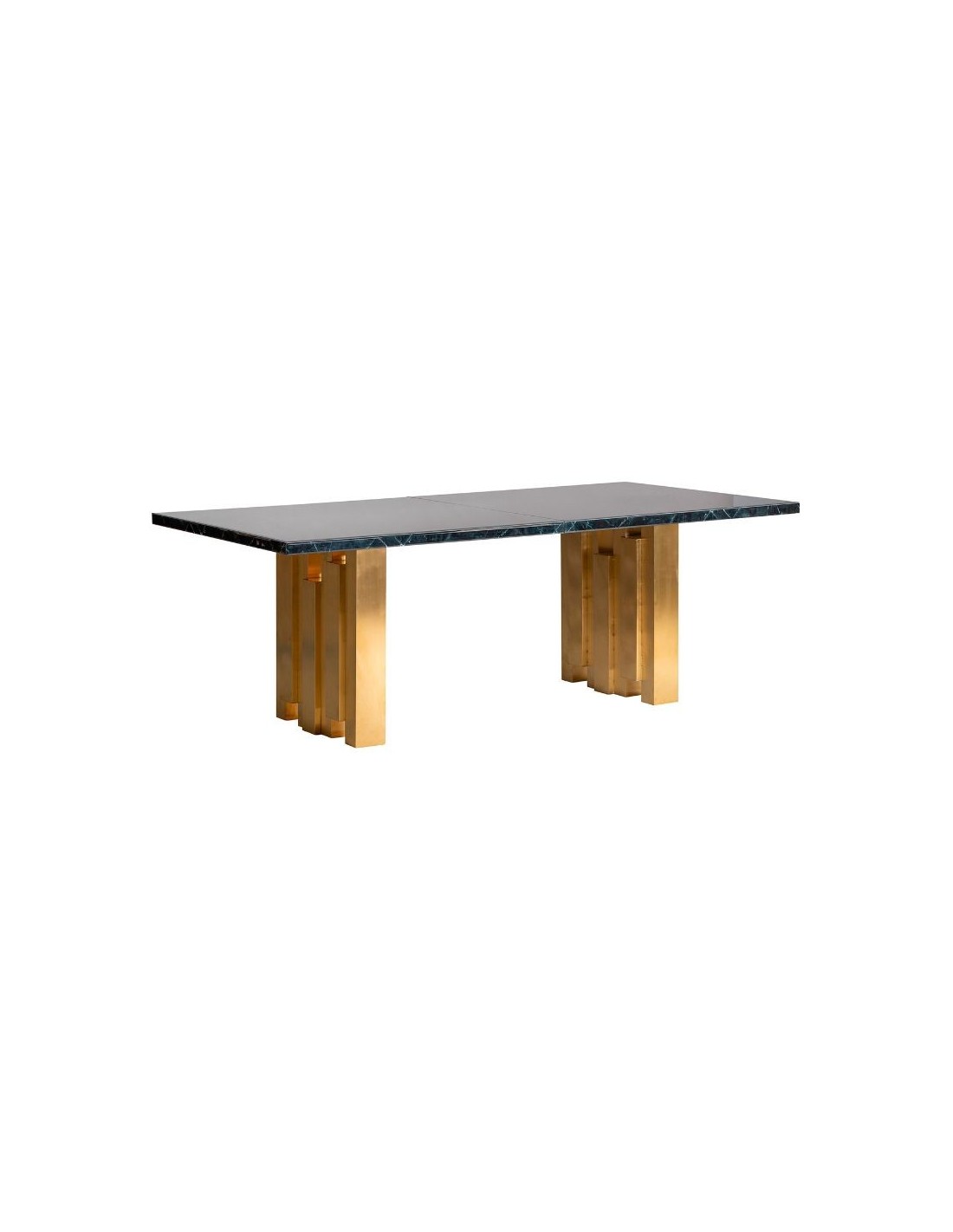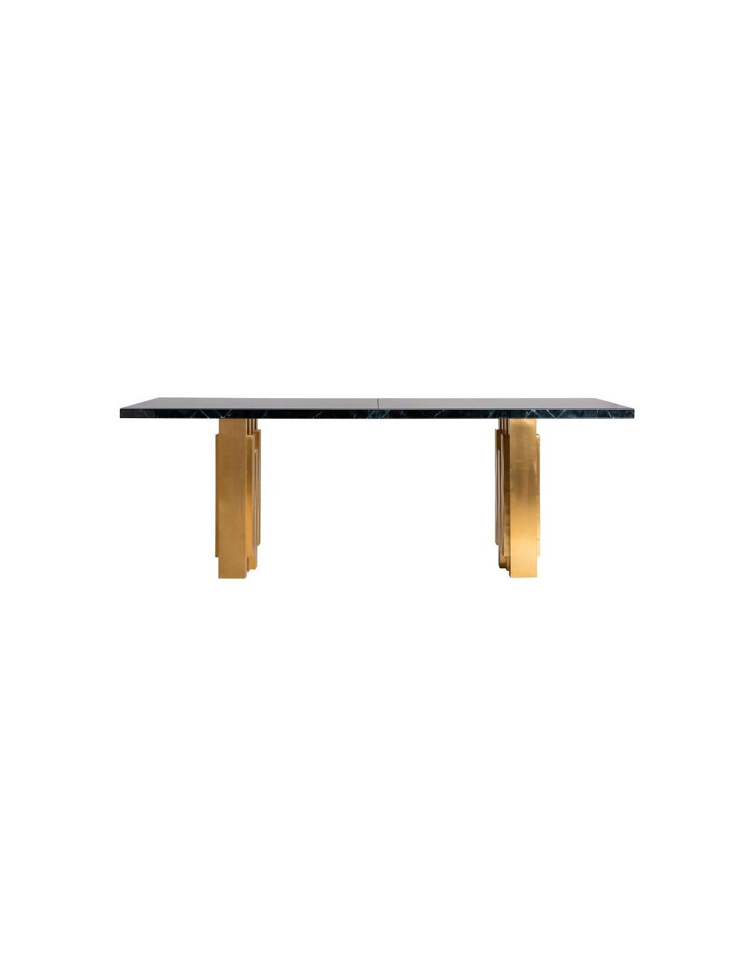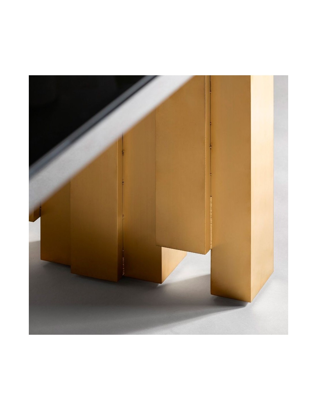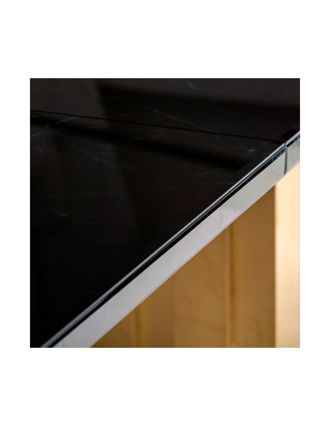 Mesa Comedor Neva, En Color Negro/Oro, De Estilo Art Deco. Fabricado En Vidrio, Combinado Con Hierro.