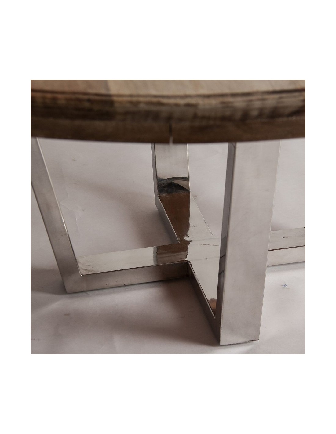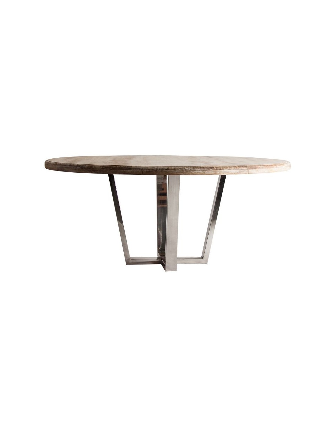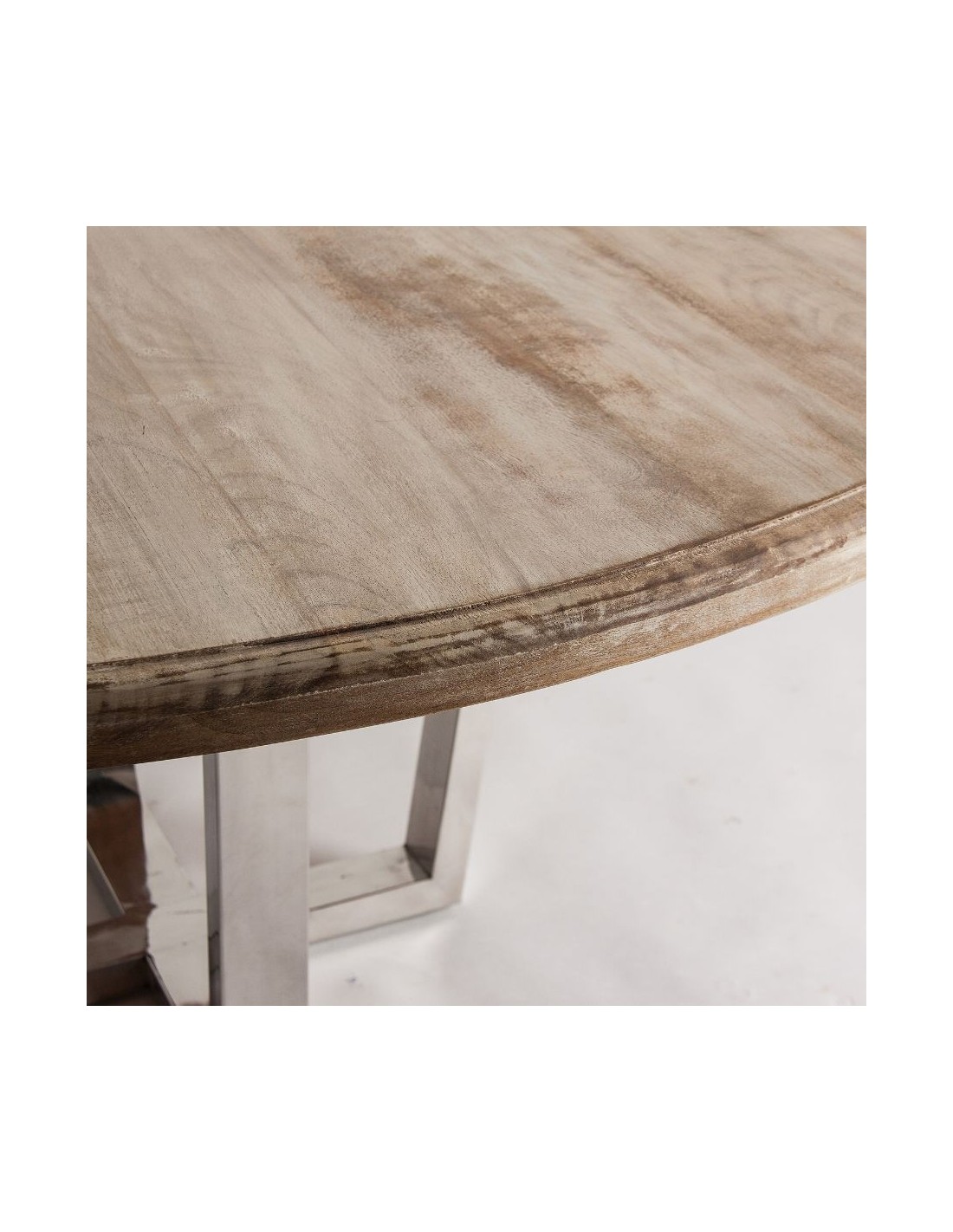 Mesa Comedor Redonda Skei, En Color Plata/Natural Envejecido, De Estilo Contemporáneo. Fabricado En Madera De Mango, Combinado Con Acero. Producto Desmontable.