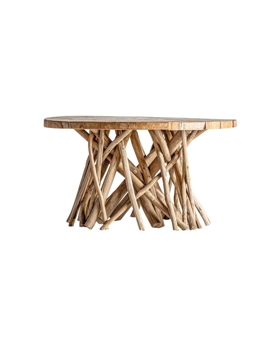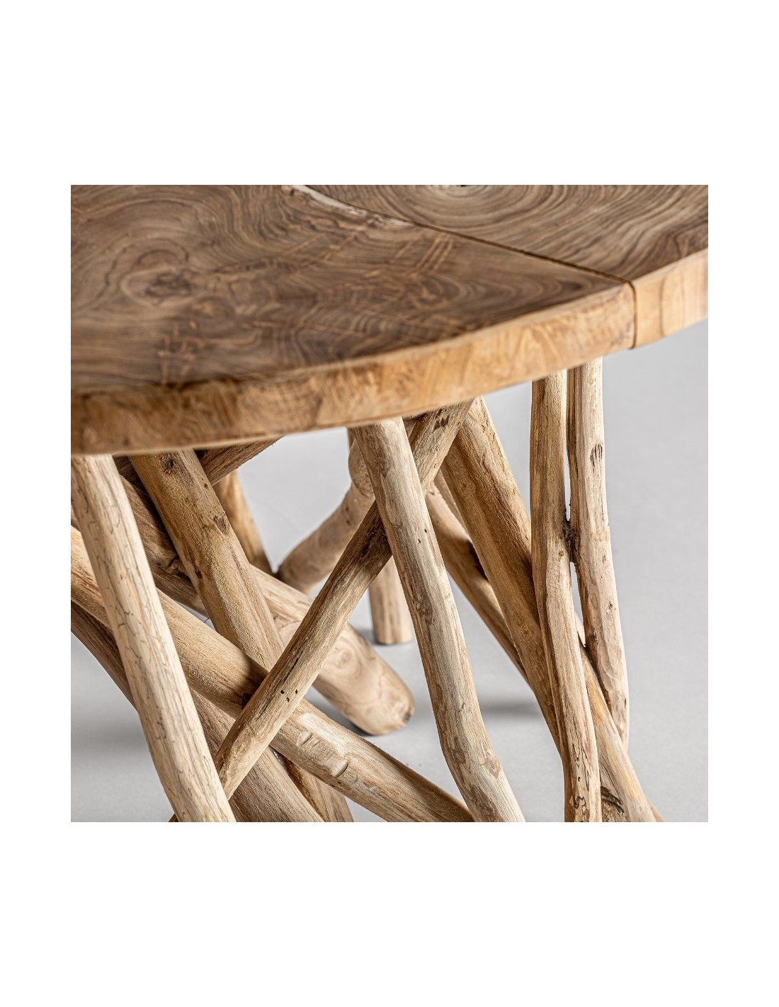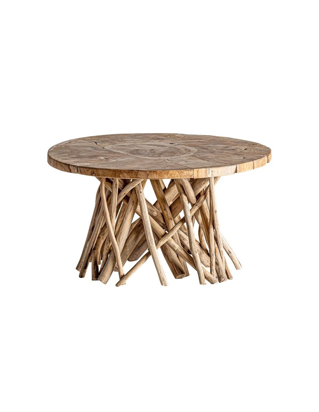 Mesa De Centro Atibo, En Color Natural, De Estilo Étnico. Fabricado En Madera De Teka.