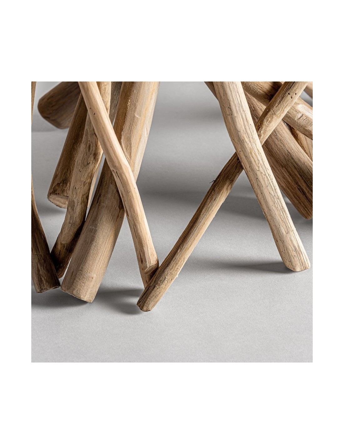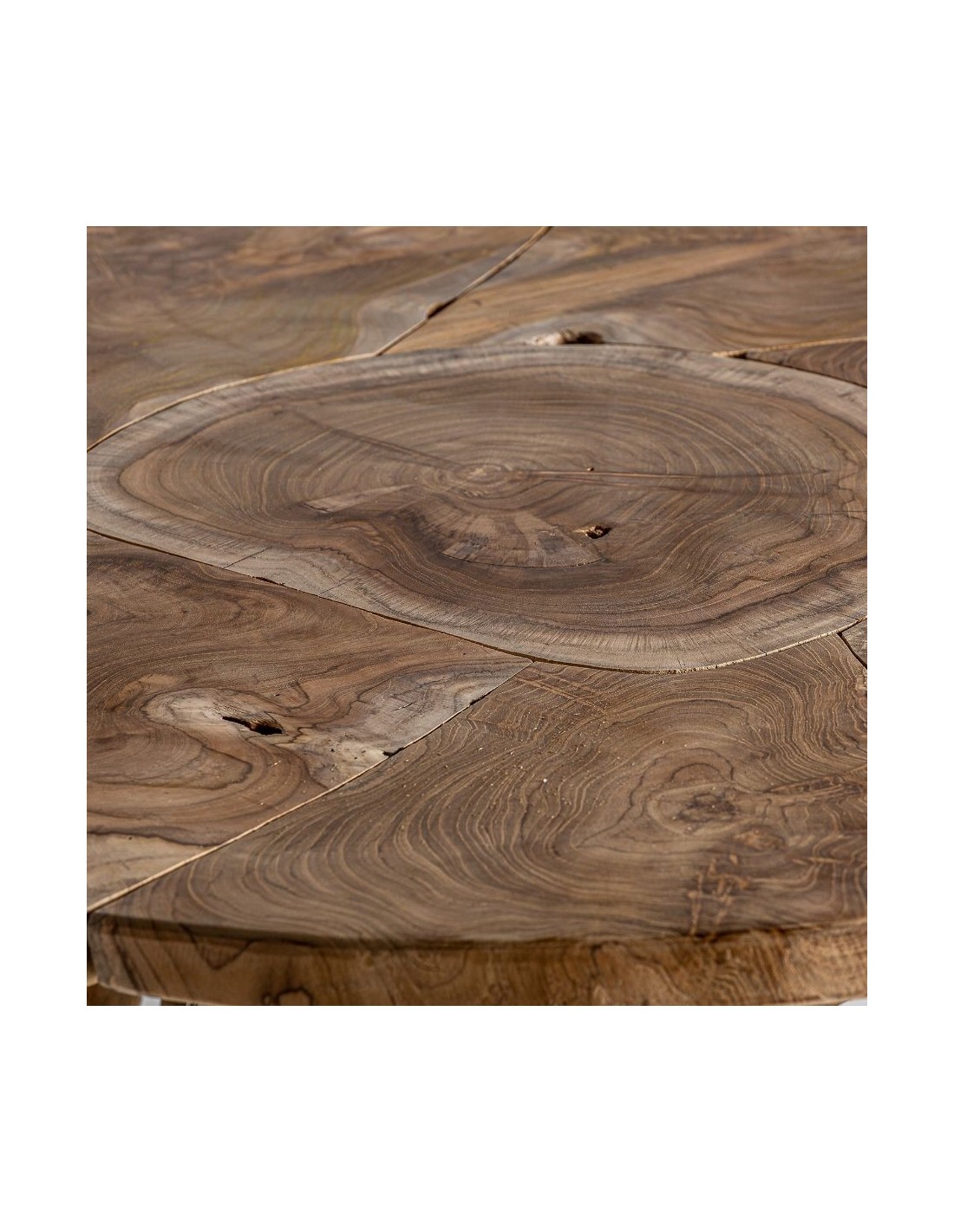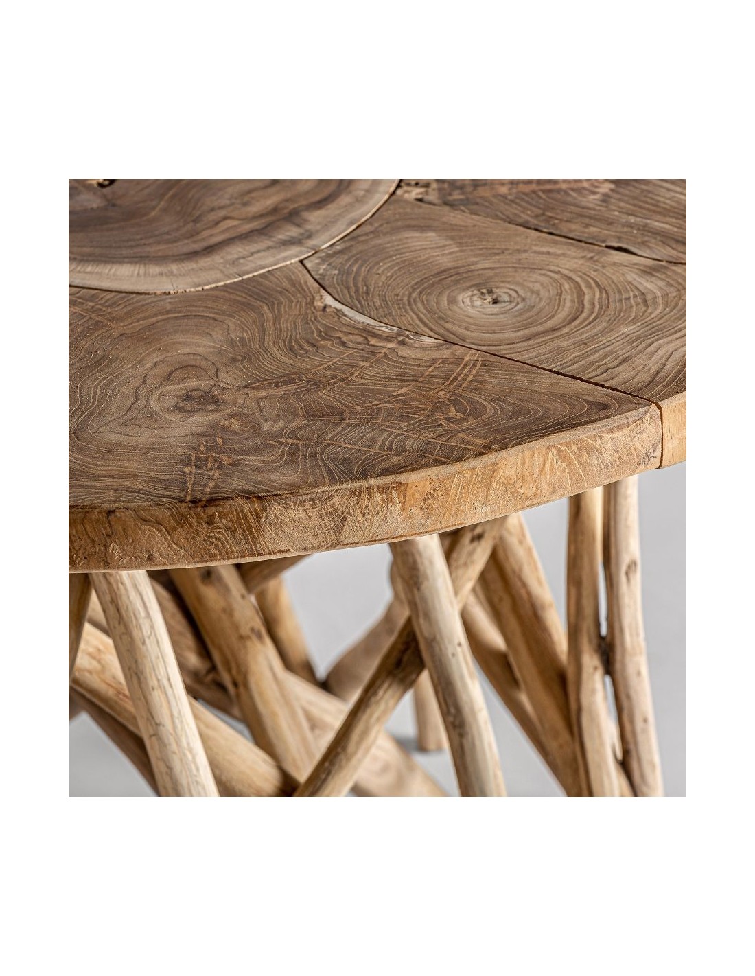 Mesa De Centro Atibo, En Color Natural, De Estilo Étnico. Fabricado En Madera De Teka.