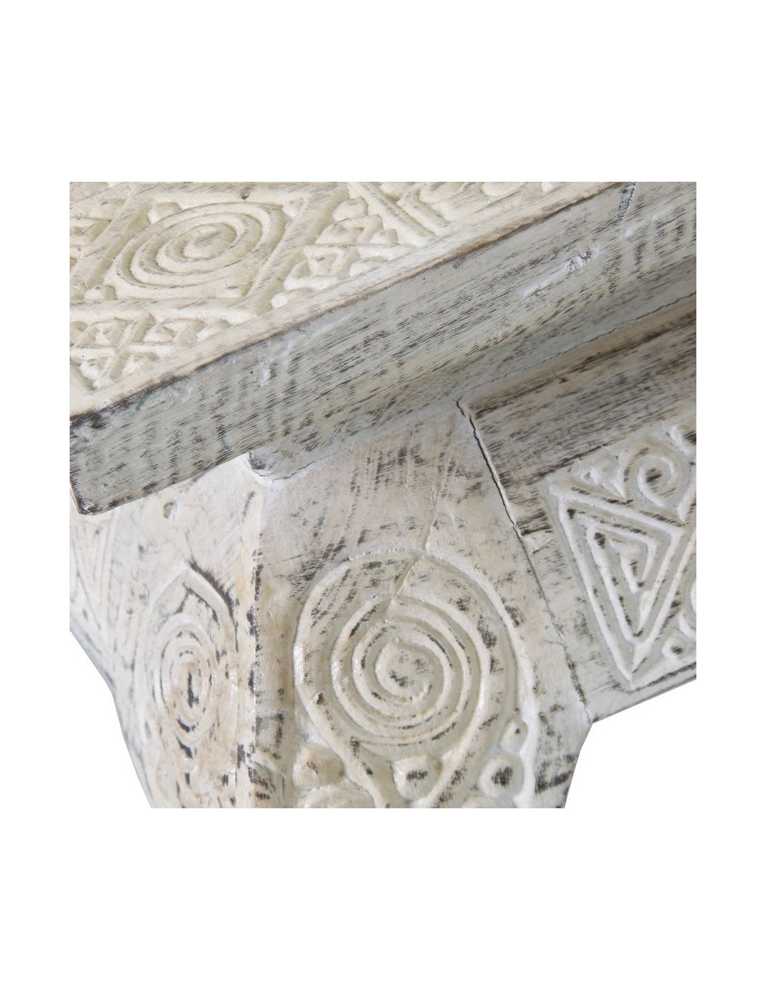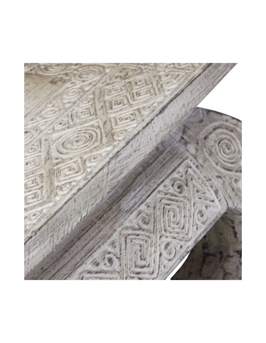 Mesa De Centro Rectangular Estambul, En Color Blanco Roto Tallado, De Estilo Oriental. Fabricado En Madera Mindi. Opium En Talla.