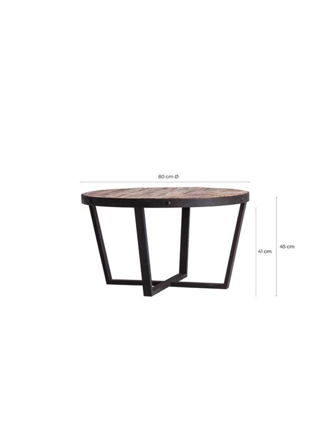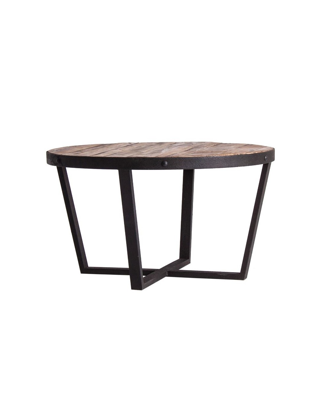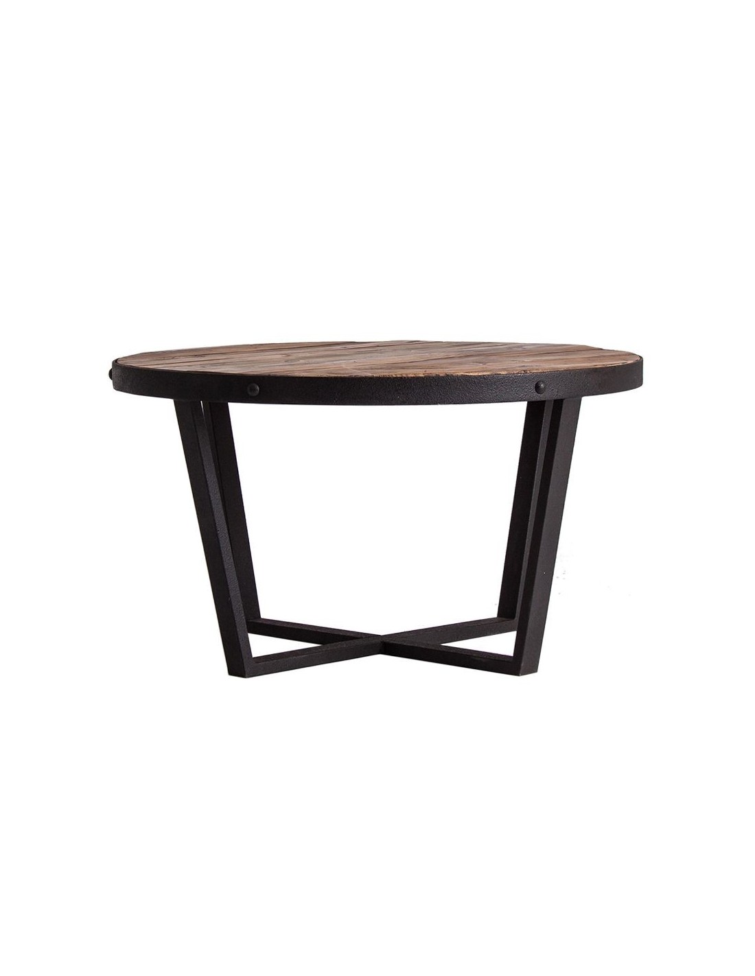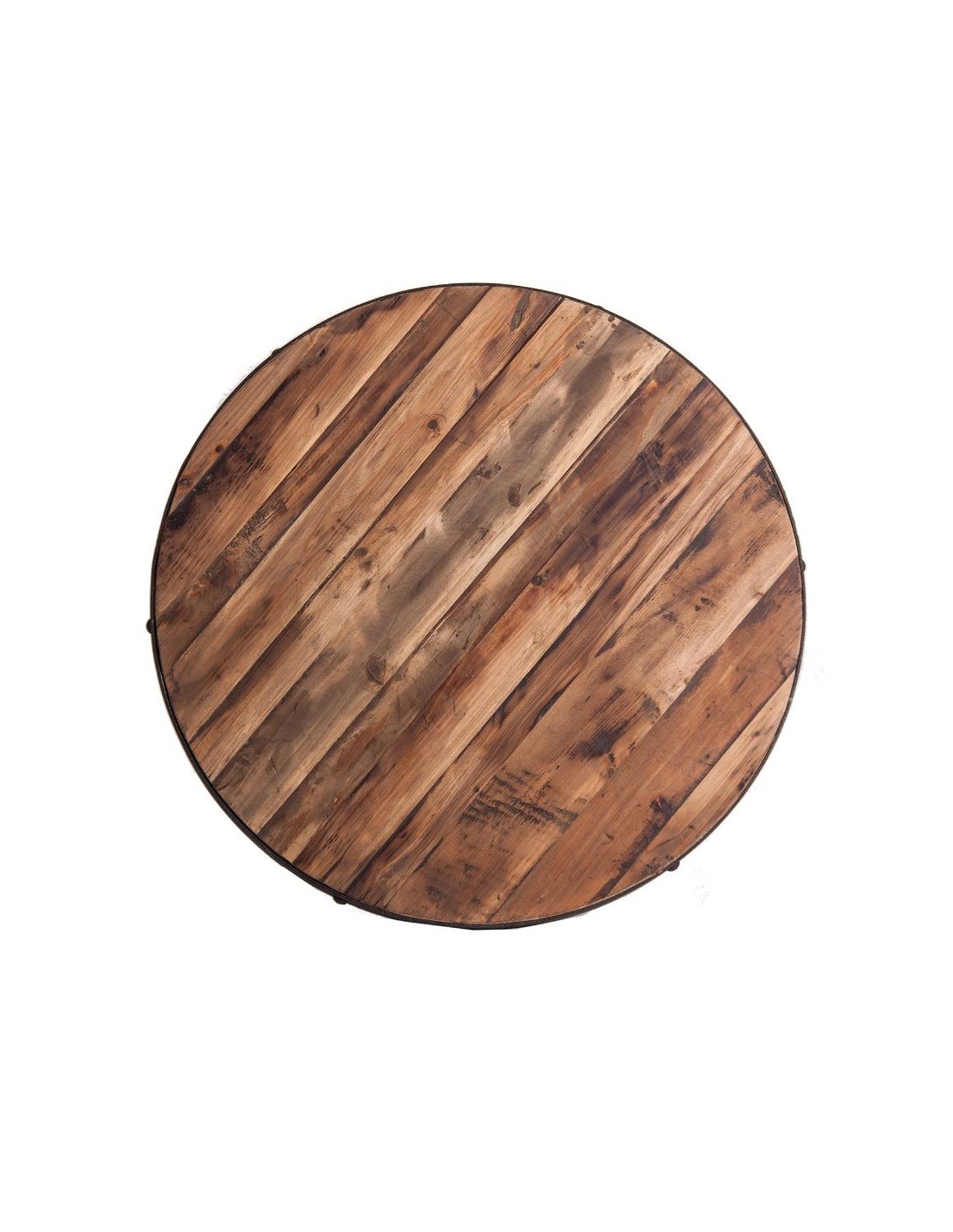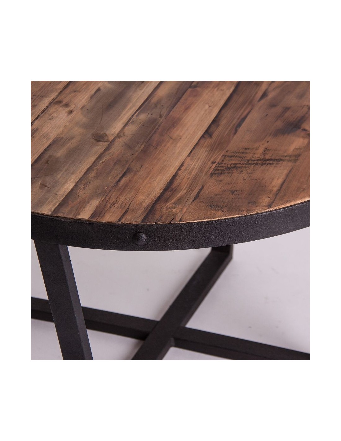 Mesa De Centro Redonda Minot, En Color Natural Envejecido, De Estilo Industrial. Fabricado En Madera De Pino Reciclado.