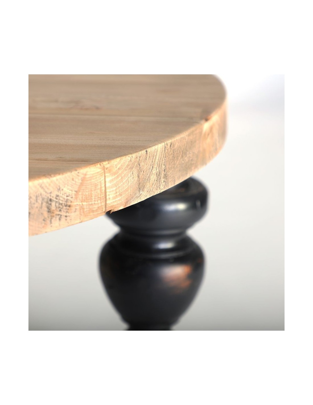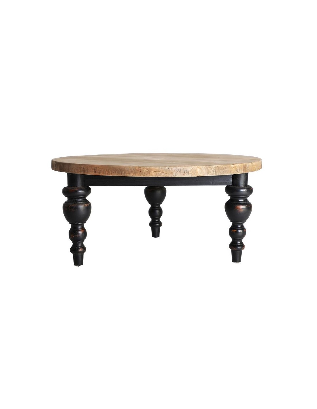 Mesa De Centro Zenica, En Color Negro/Natural, De Estilo Provenzal. Fabricado En Madera De Olmo.