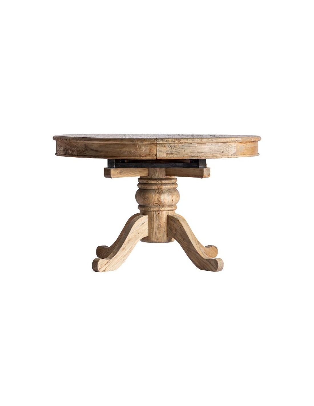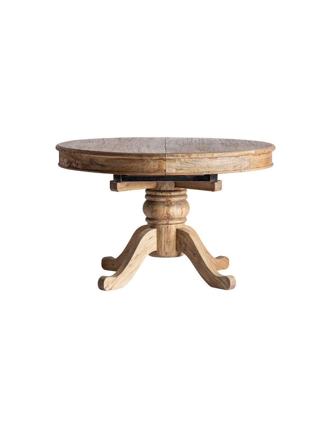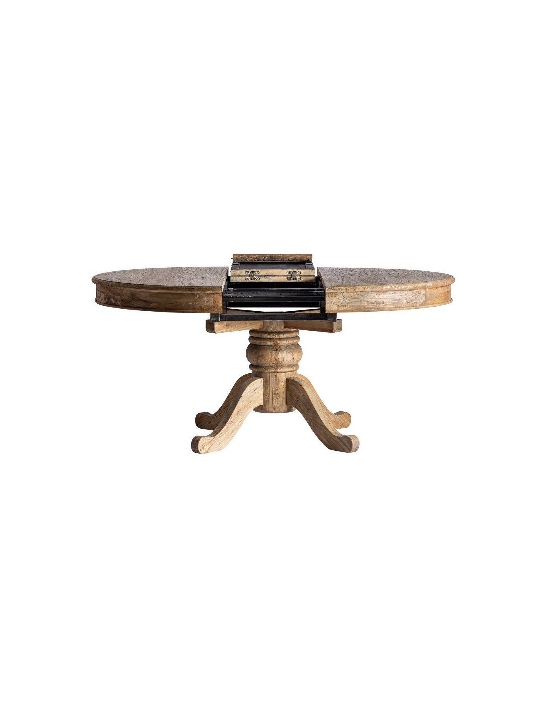 Mesa Extensible Redonda Berca, En Color Natural, De Estilo Clásico. Fabricado En Madera De Olmo Reciclado. Producto Desmontable, Extensible.