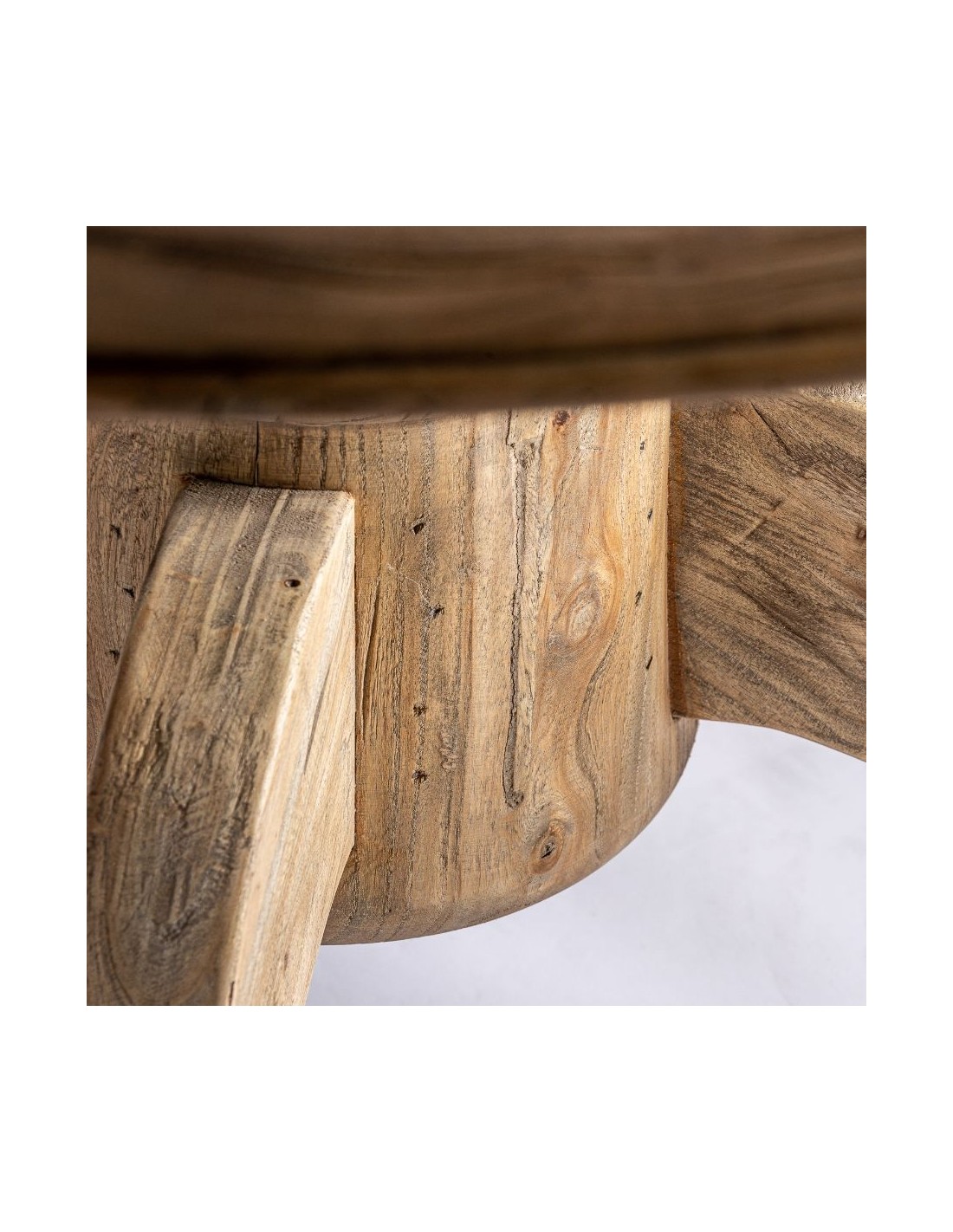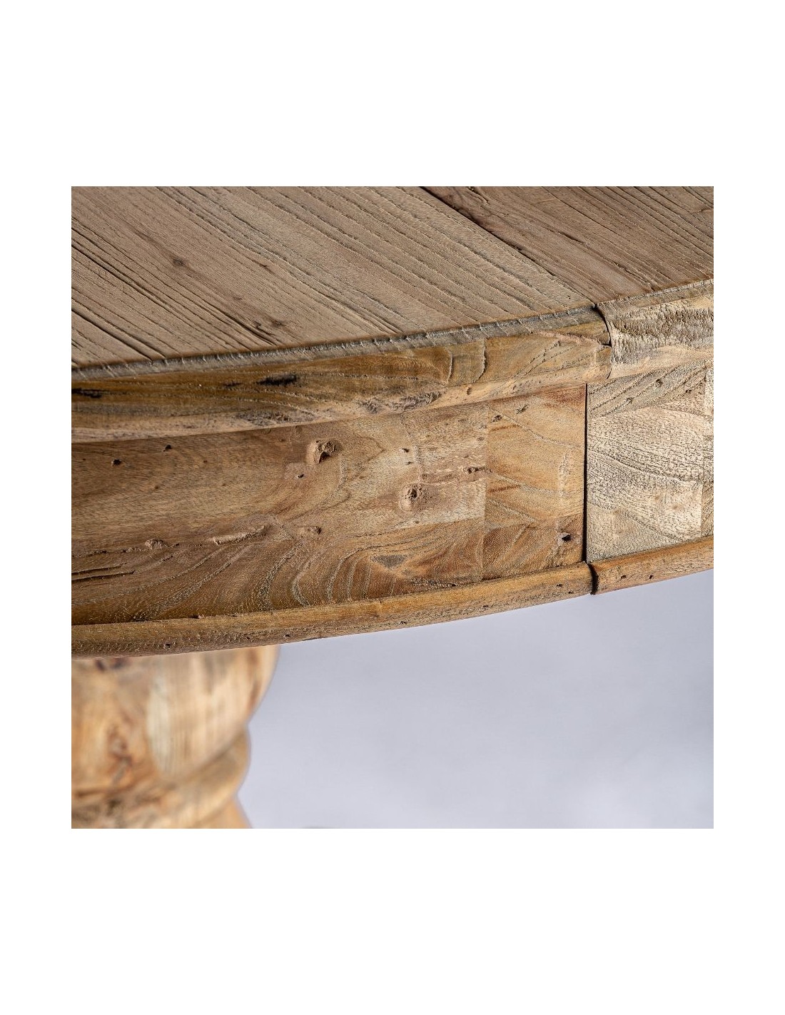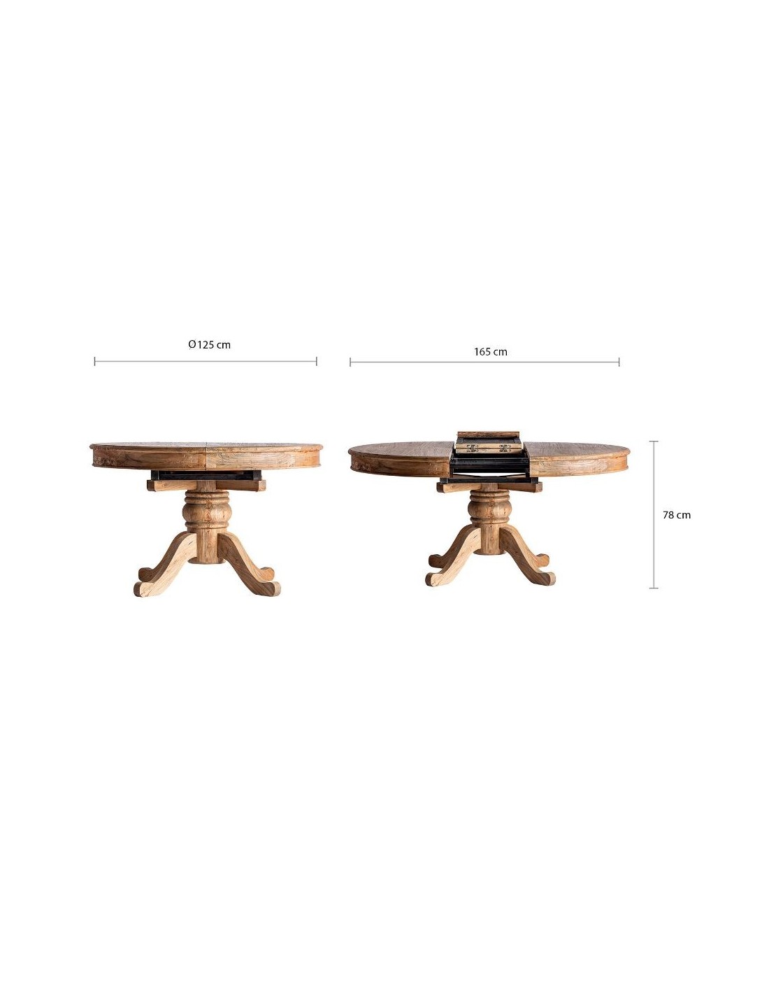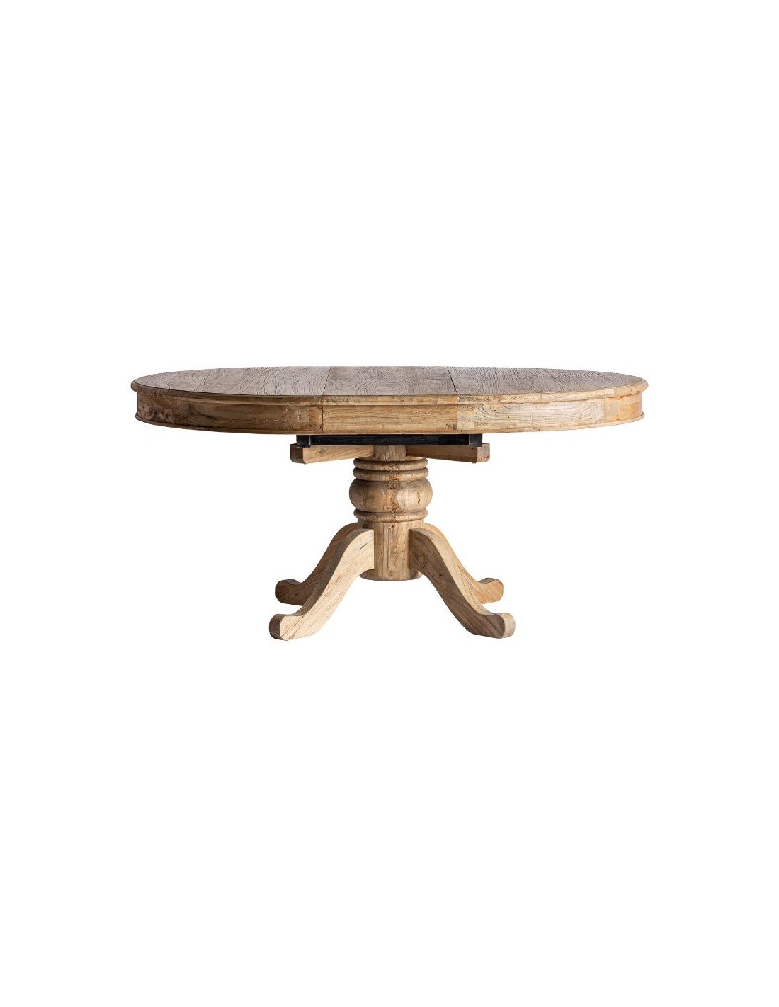 Mesa Extensible Redonda Berca, En Color Natural, De Estilo Clásico. Fabricado En Madera De Olmo Reciclado. Producto Desmontable, Extensible.