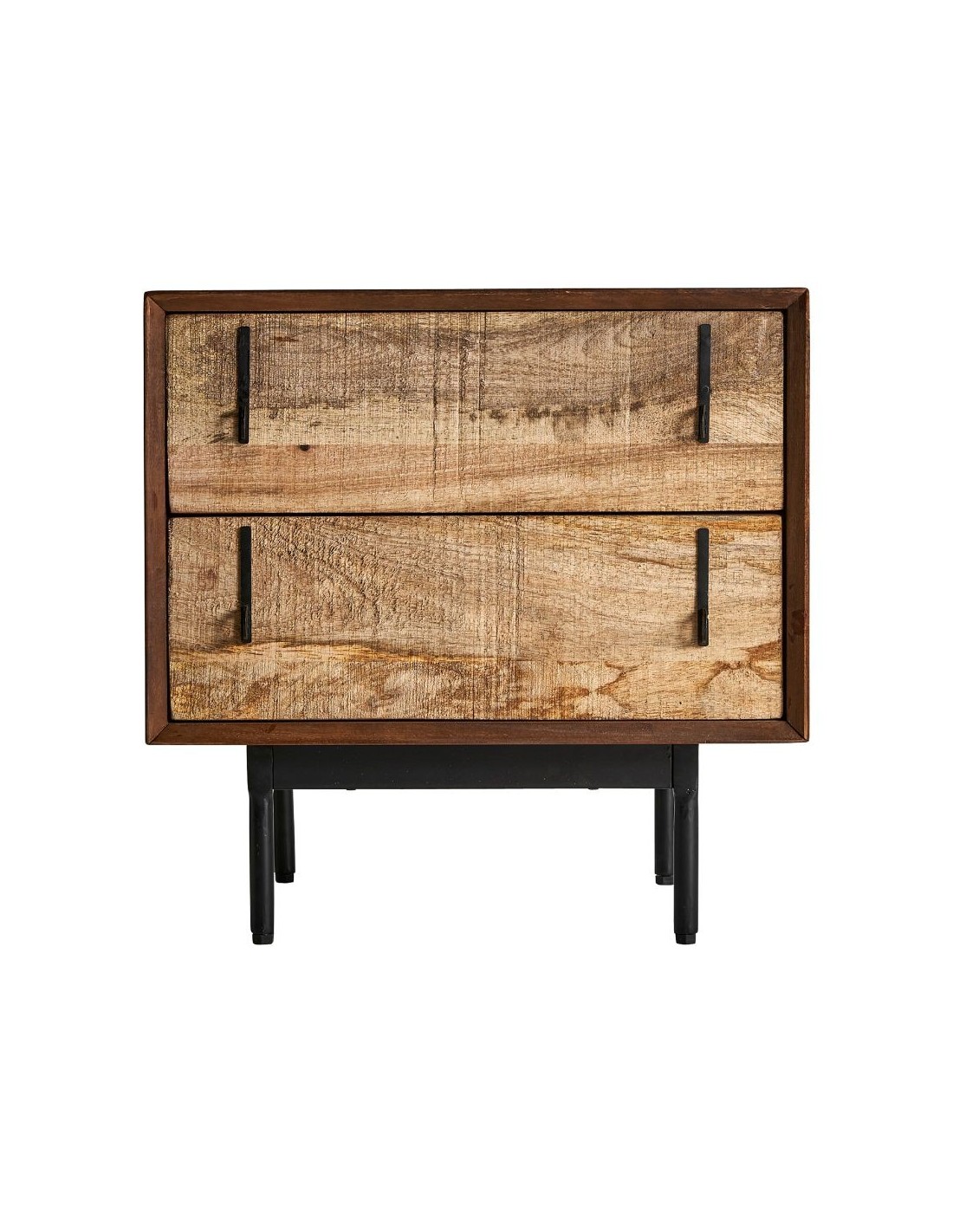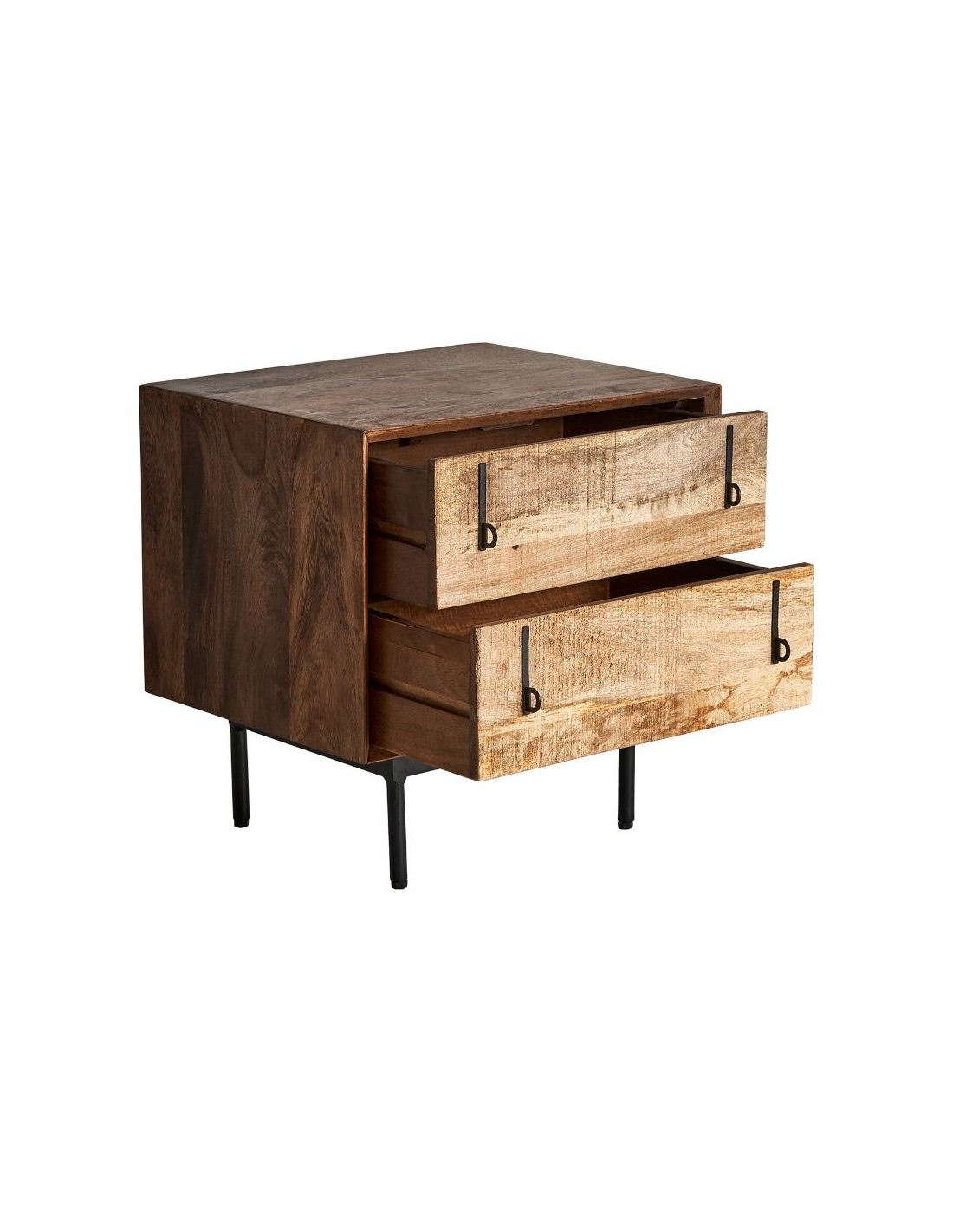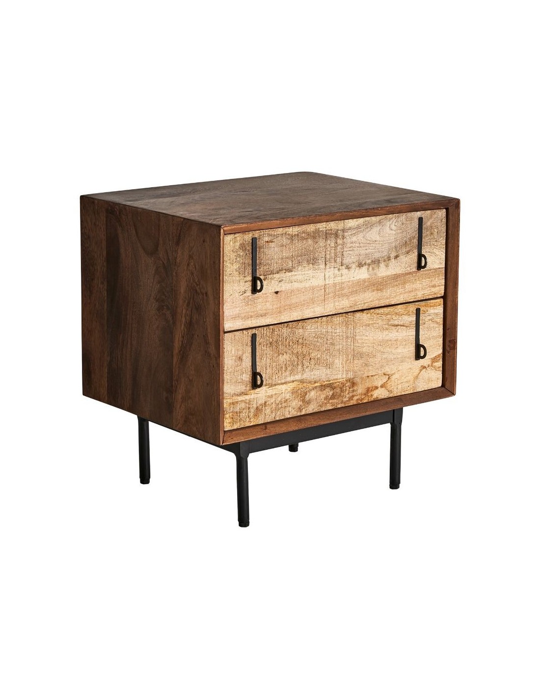 Mesita Trap, En Color Negro/Natural, De Estilo Contemporáneo. Fabricado En Madera De Mango, Combinado Con Hierro. Producto Desmontable.
