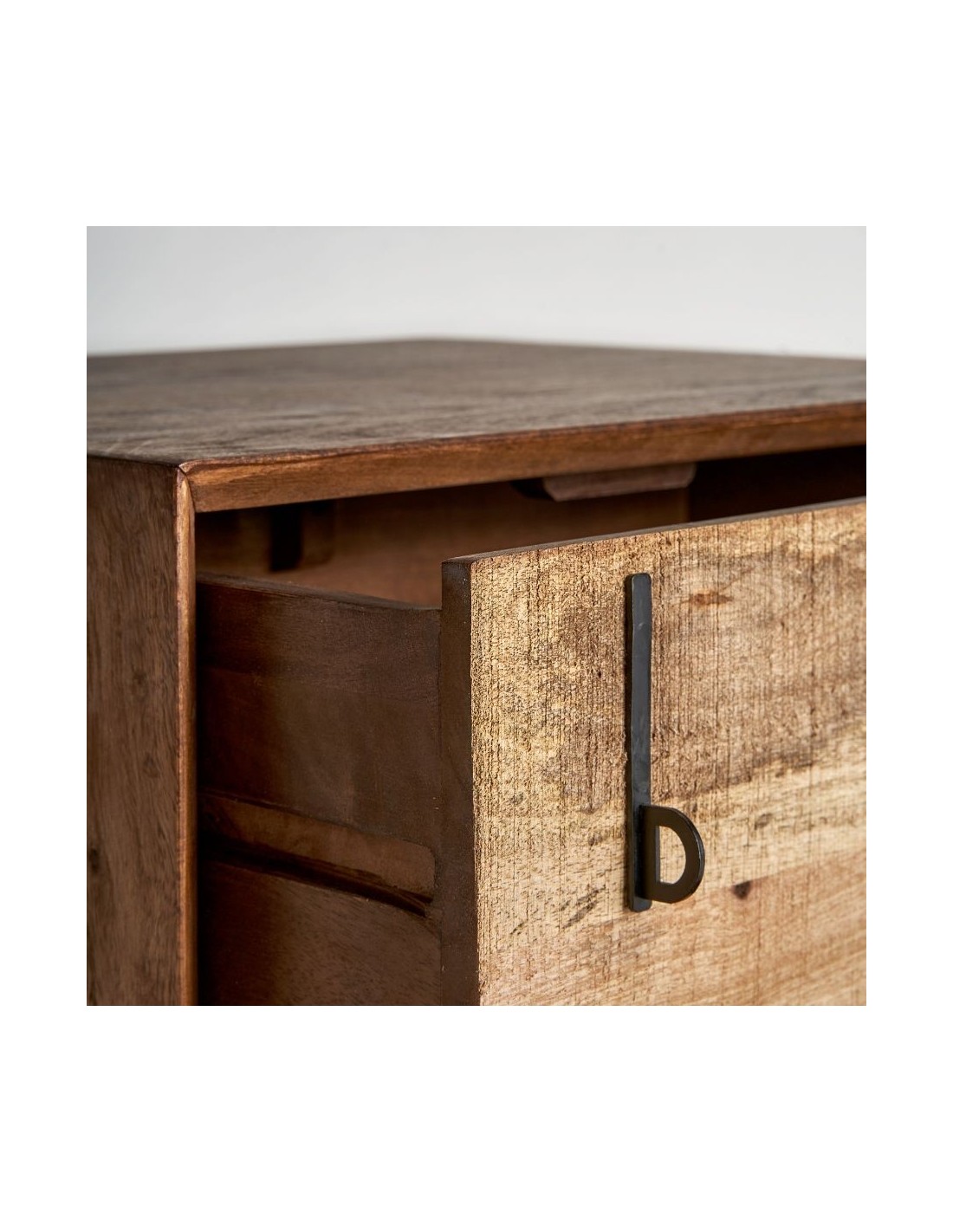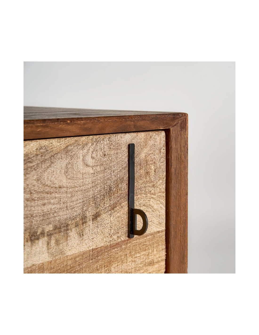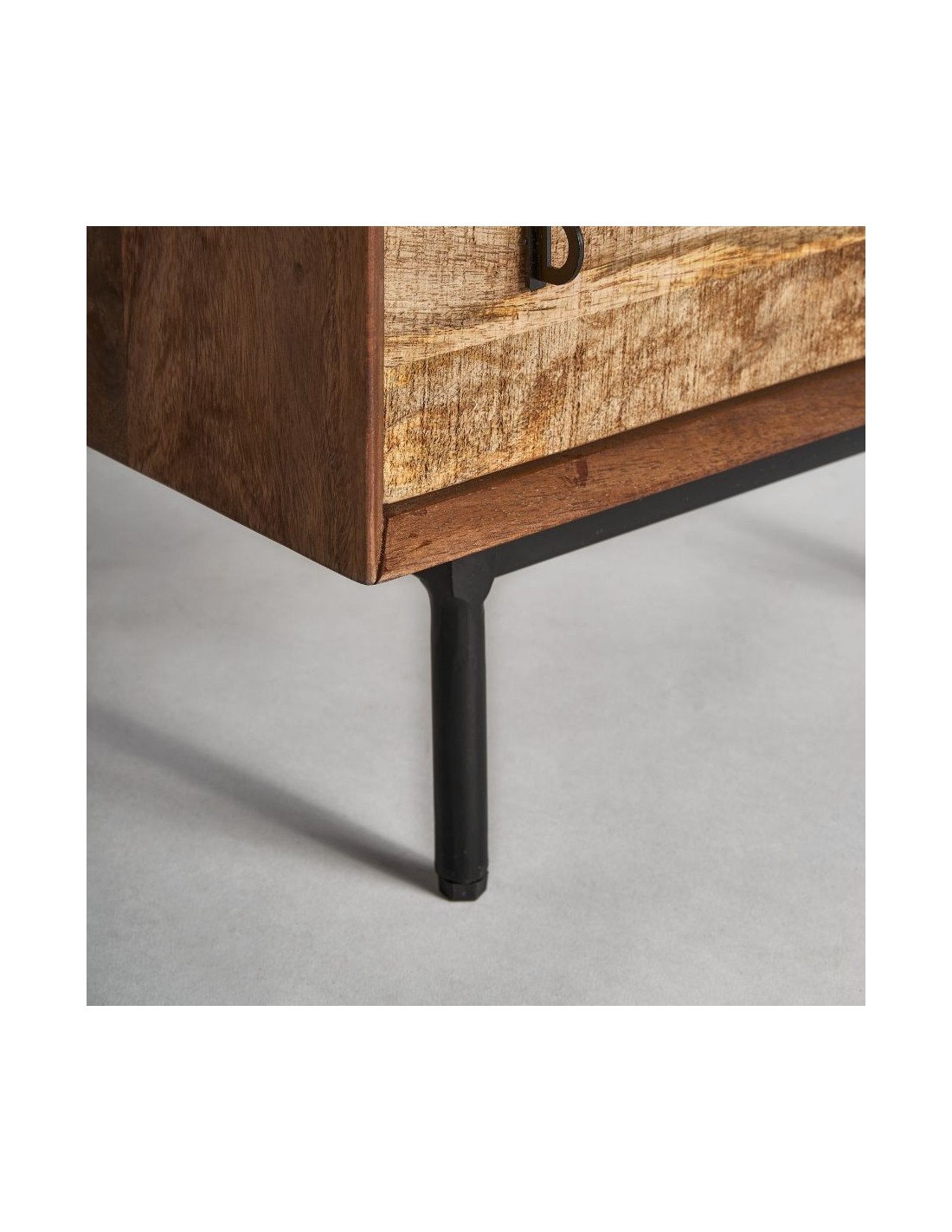 Mesita Trap, En Color Negro/Natural, De Estilo Contemporáneo. Fabricado En Madera De Mango, Combinado Con Hierro. Producto Desmontable.