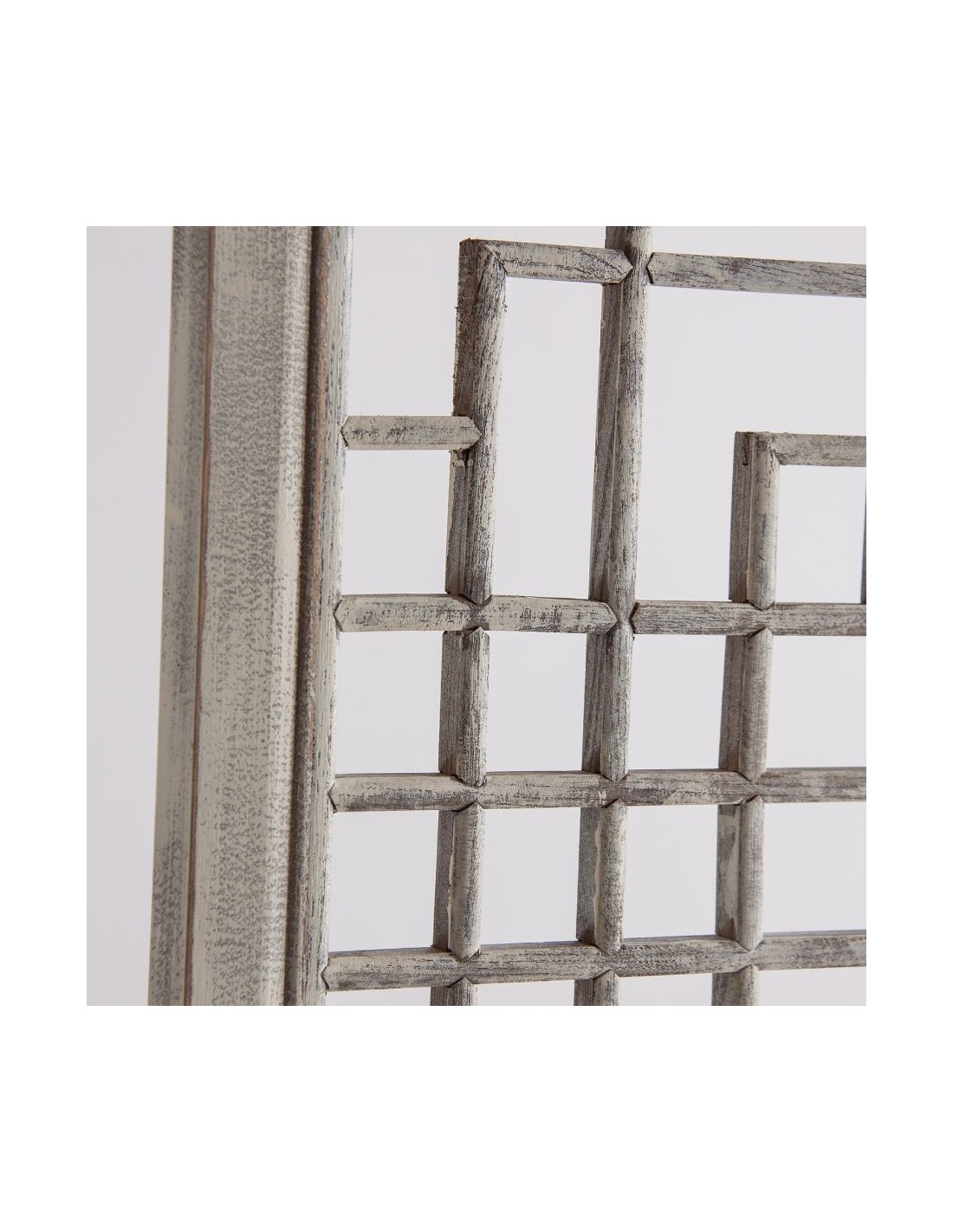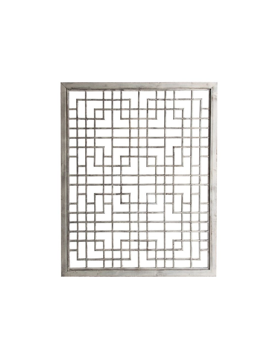Panel Decorativo Sundu, En Color Blanco Decapado, De Estilo Oriental. Fabricado En Madera De Olmo.