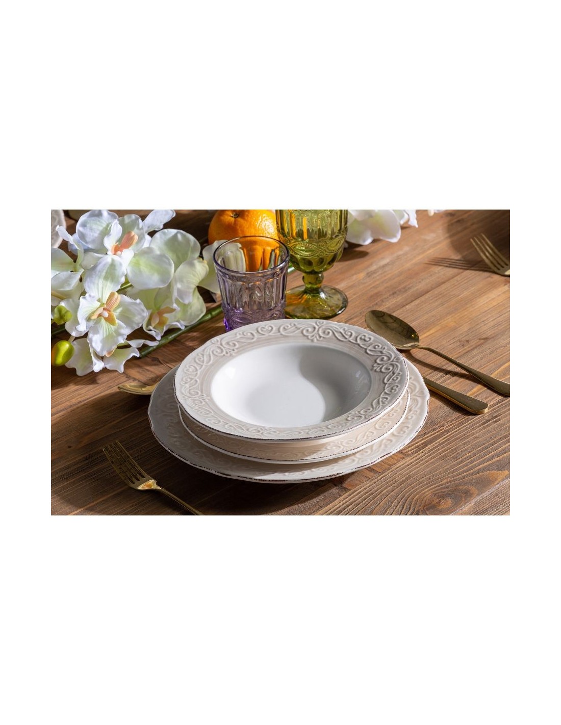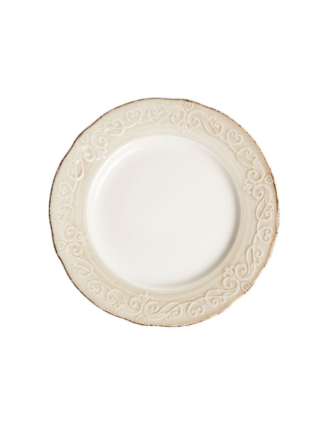 Plato Alka, En Color Blanco, De Estilo Shabby Chic. Fabricado En Cerámica.