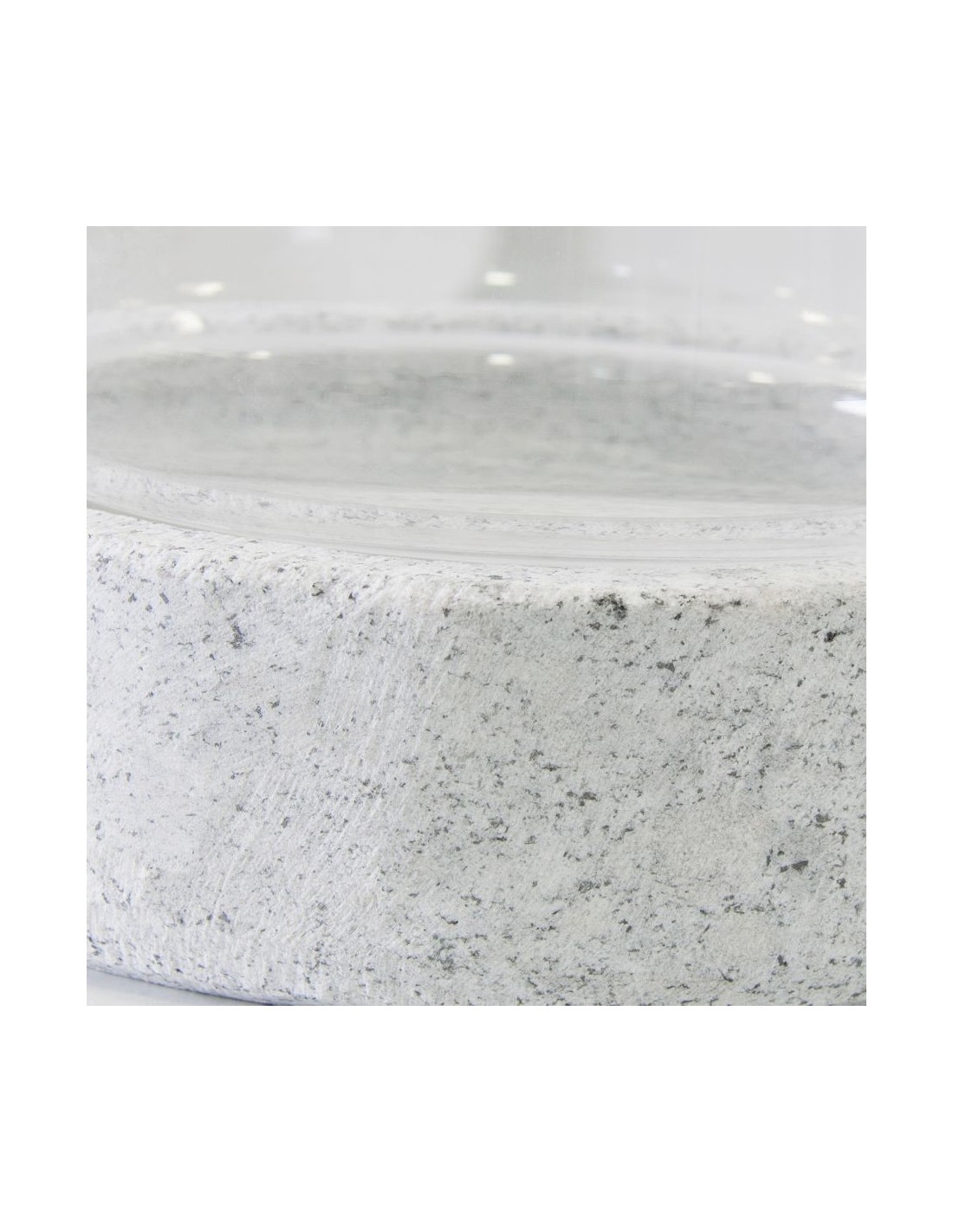 Portavela Redondo, En Color Transparente, De Estilo Shabby Chic. Fabricado En Vidrio, Combinado Con Piedra.