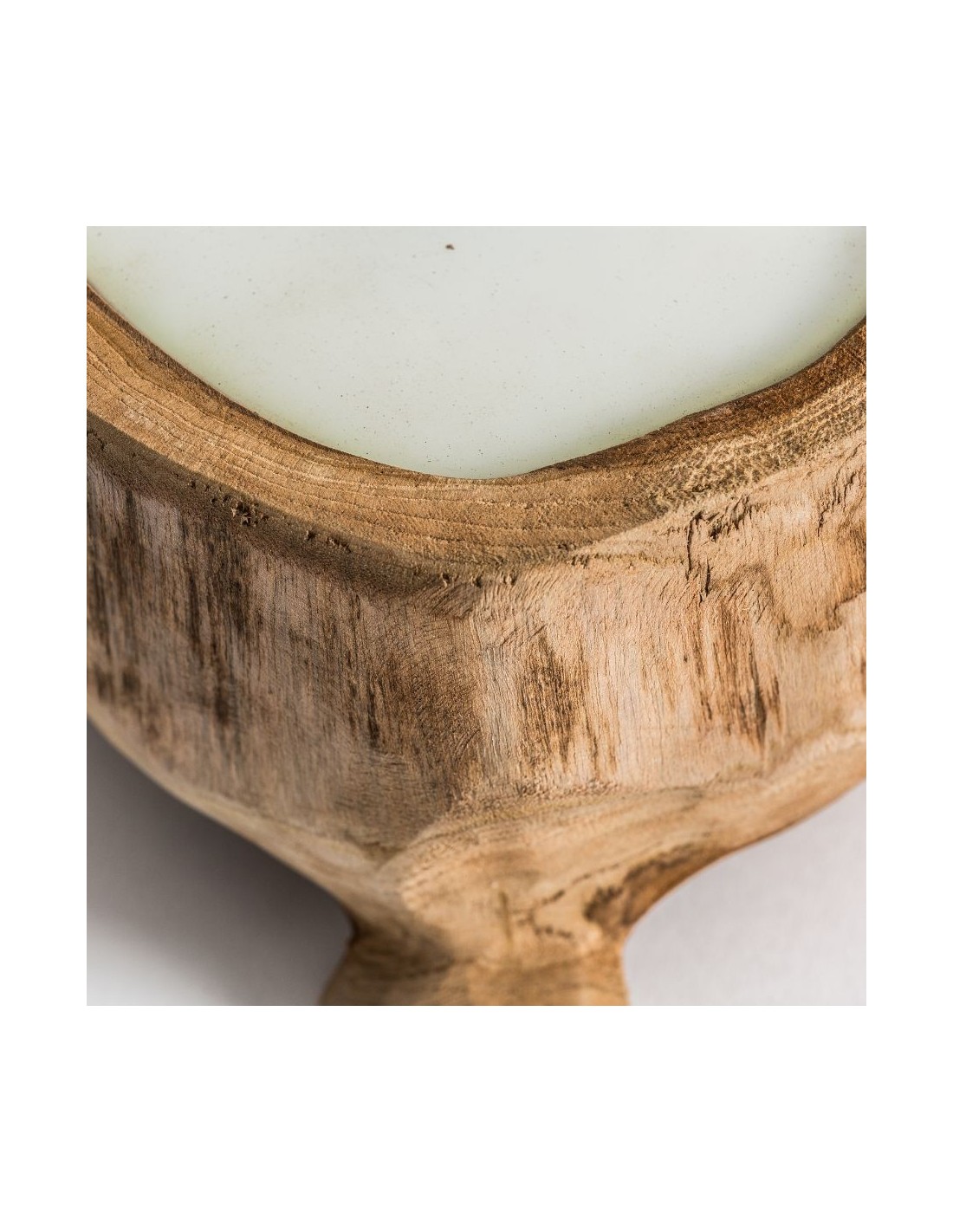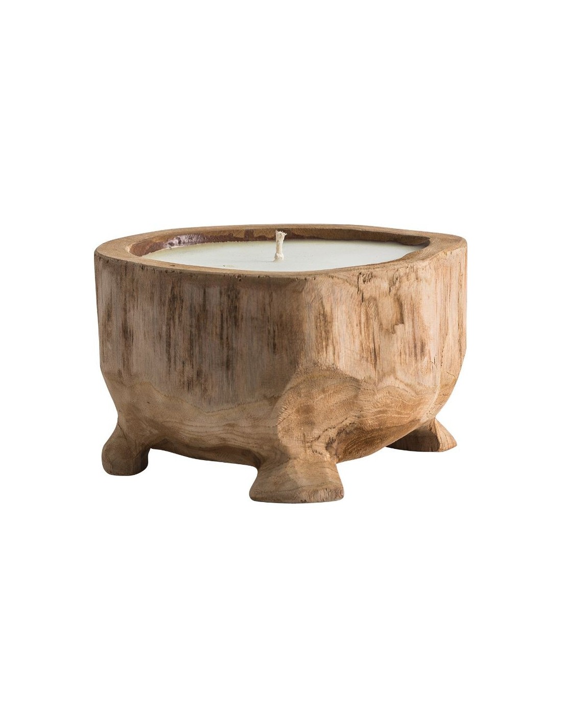 Portavela, En Color Natural, De Estilo Étnico. Fabricado En Madera De Teka, Combinado Con Cera. Puede Variar De Forma Y Tamaño.