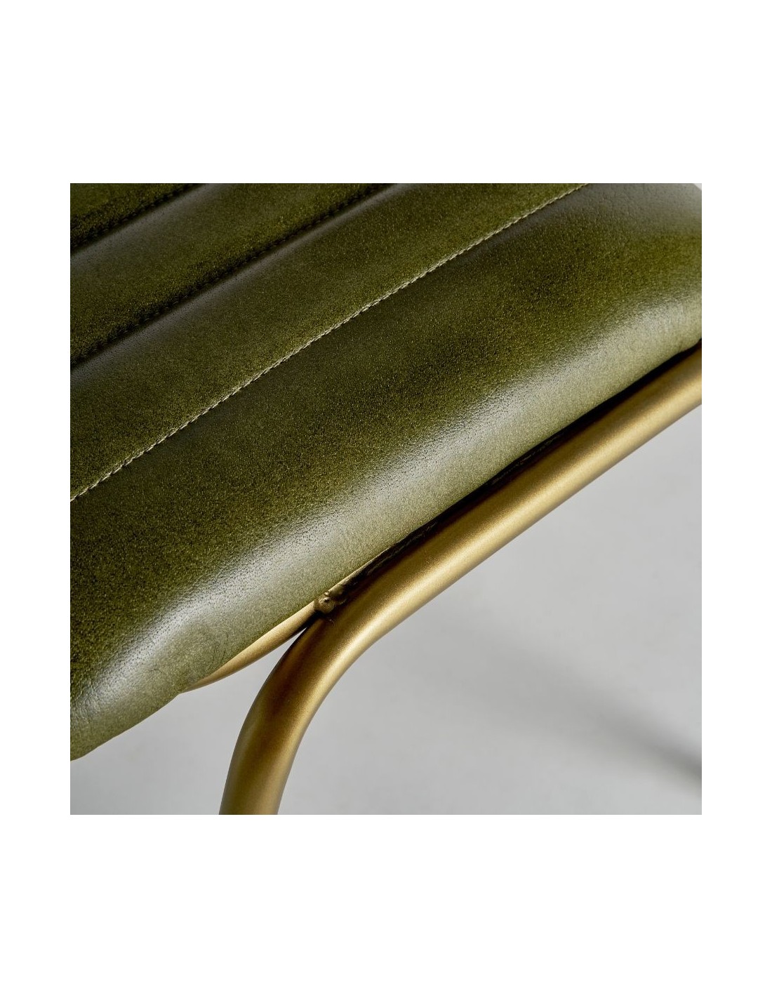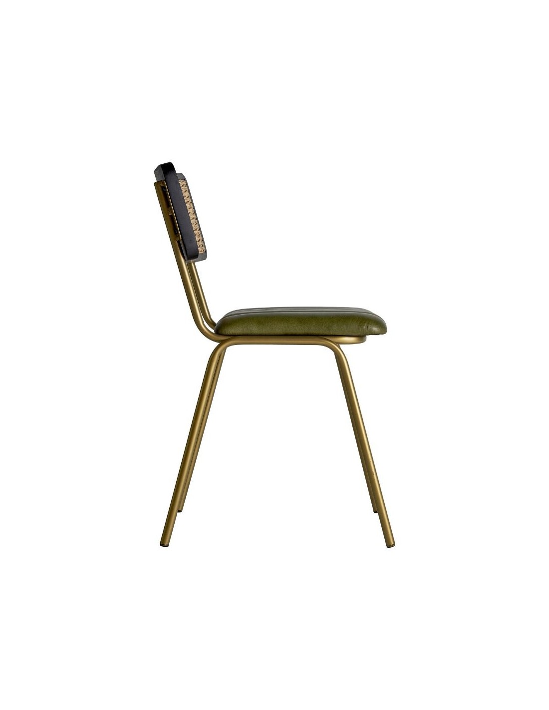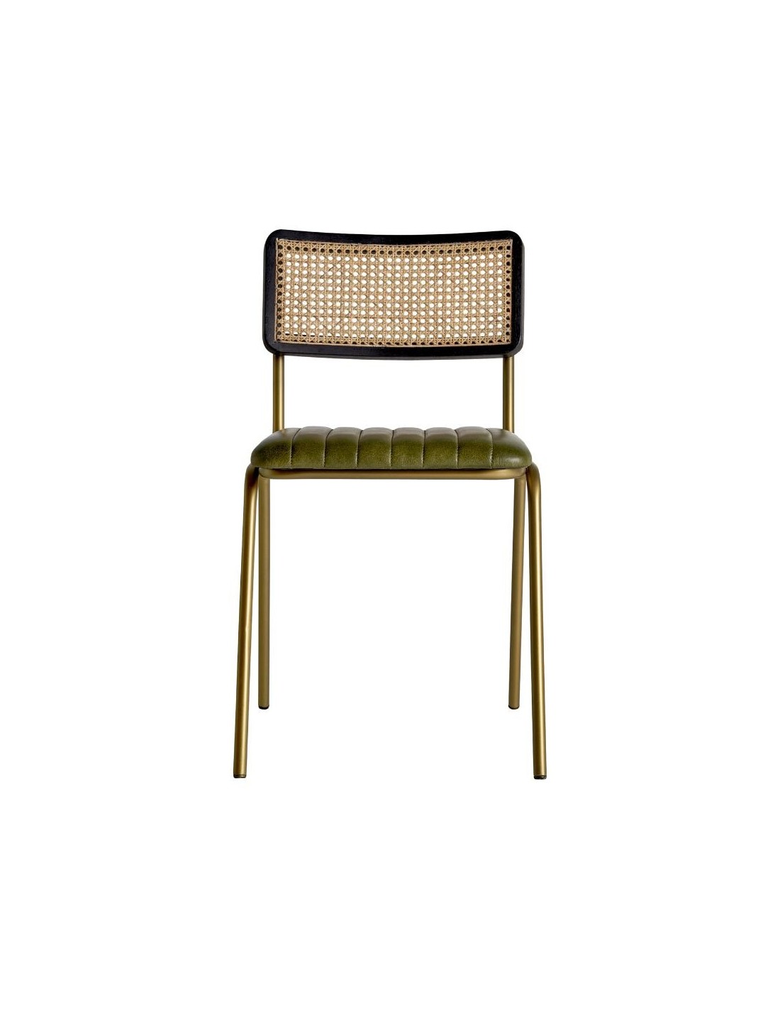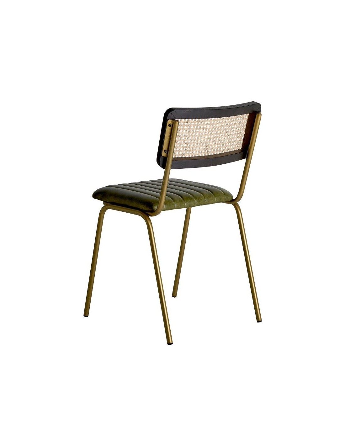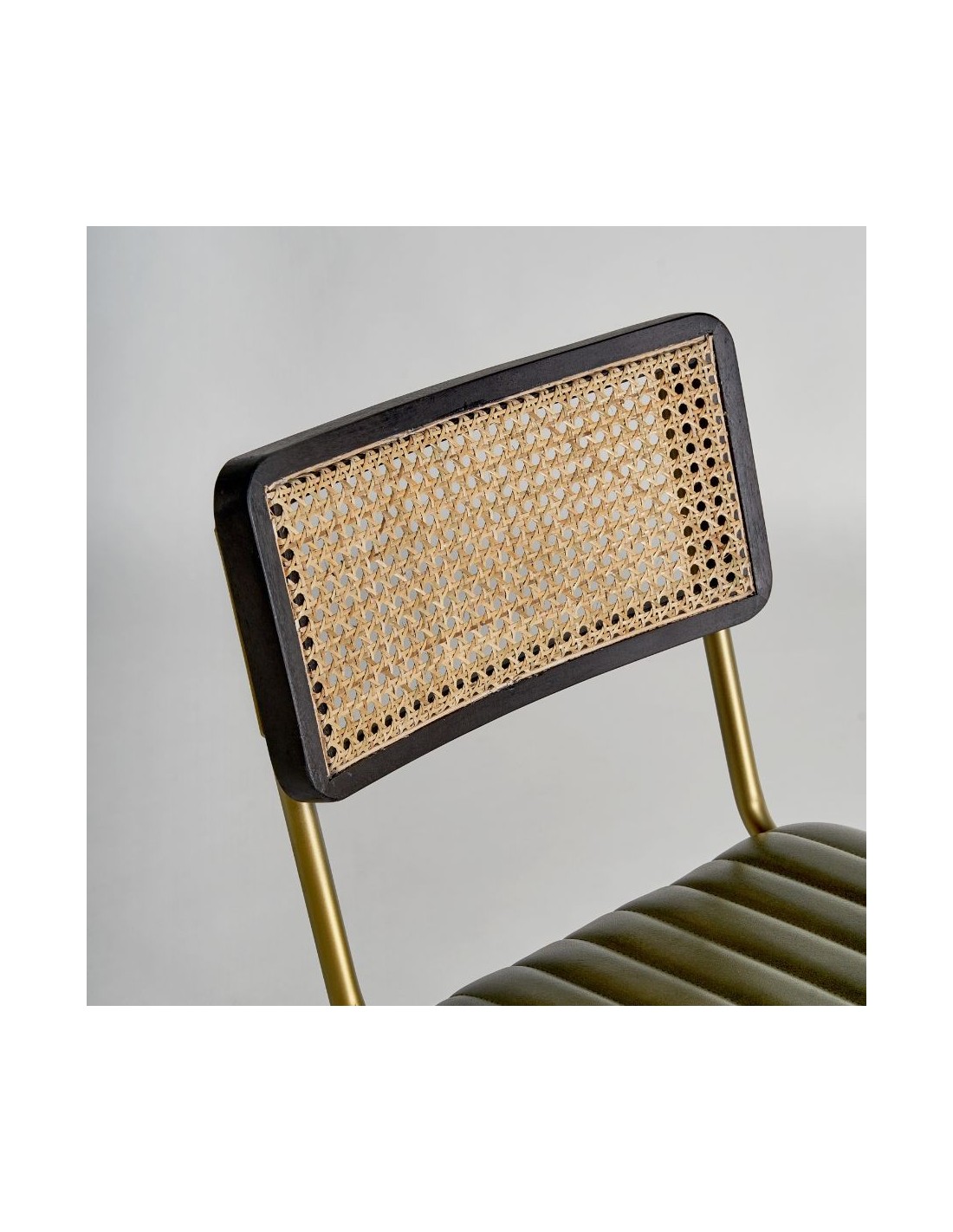 Silla Almstock, En Color Verde, De Estilo Vintage. Fabricado En Cuero, Combinado Con Hierro Y Ratán.