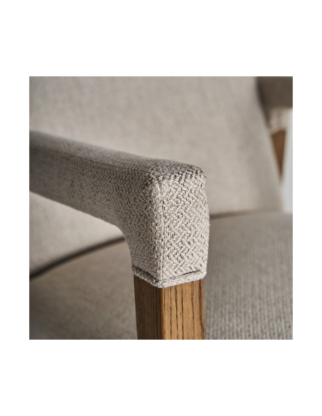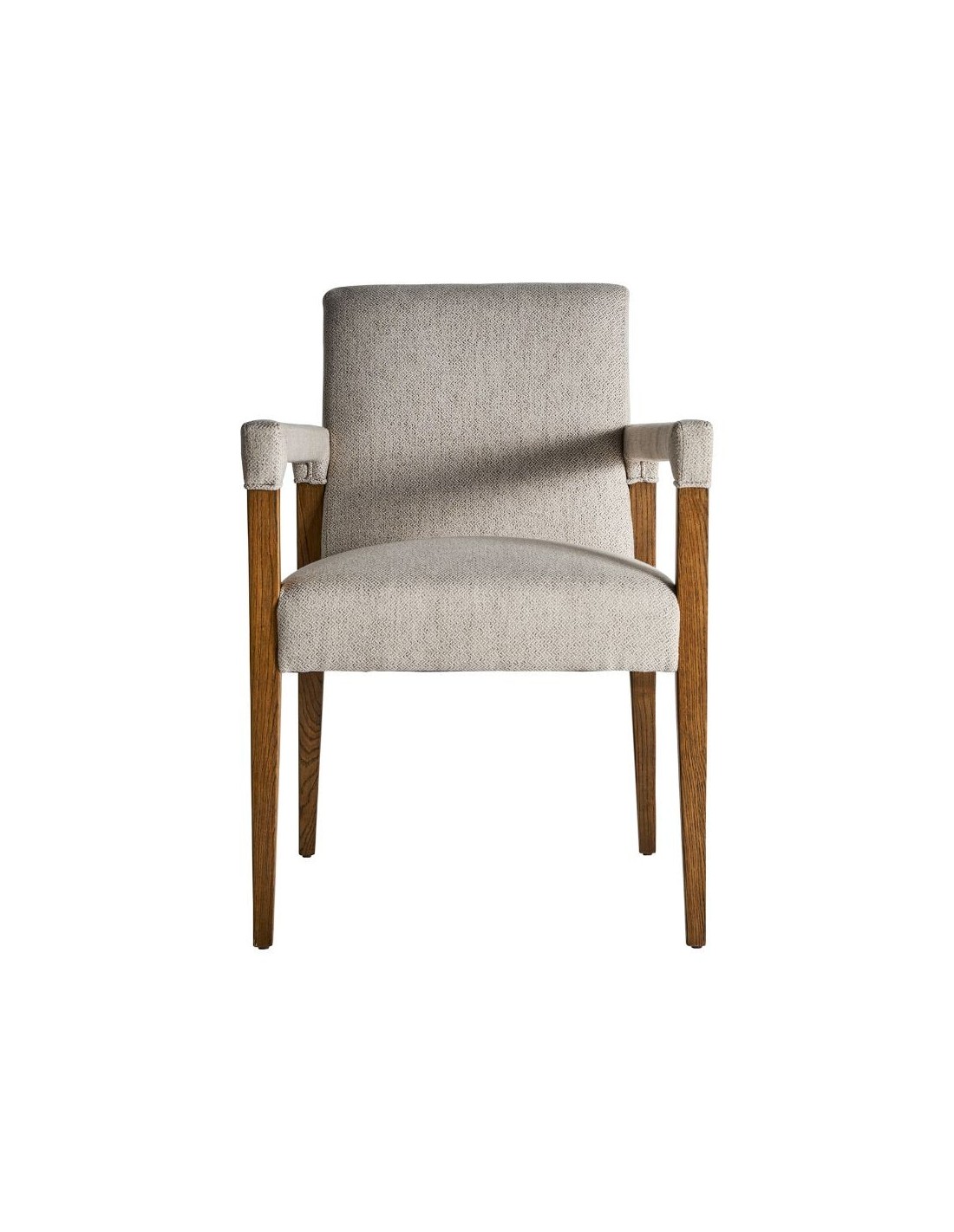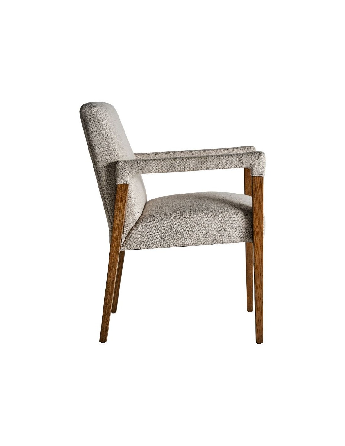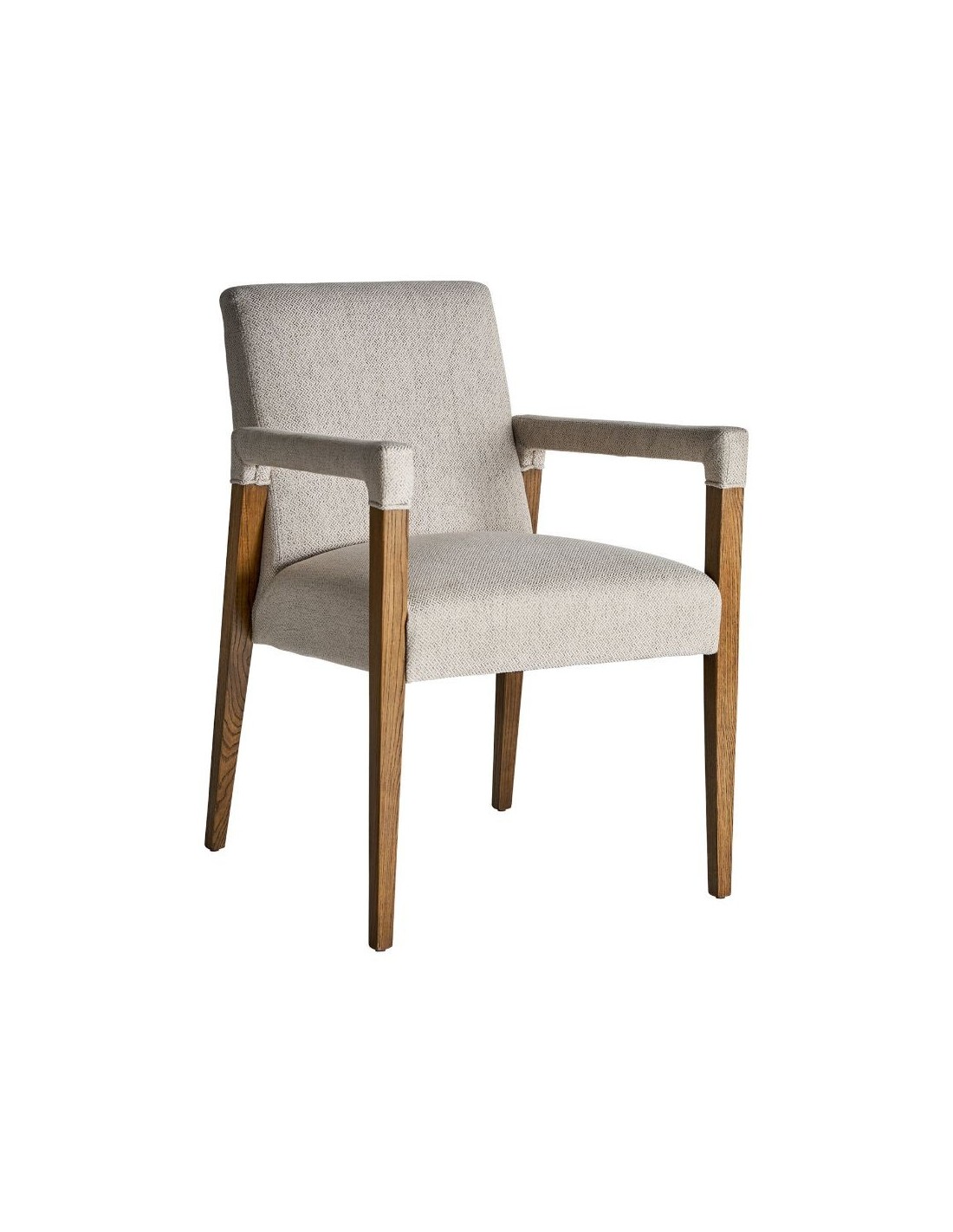 Silla Baena, En Color Crema, De Estilo Colonial. Fabricado En Lino, Combinado Con Madera Abedul Y Espuma.