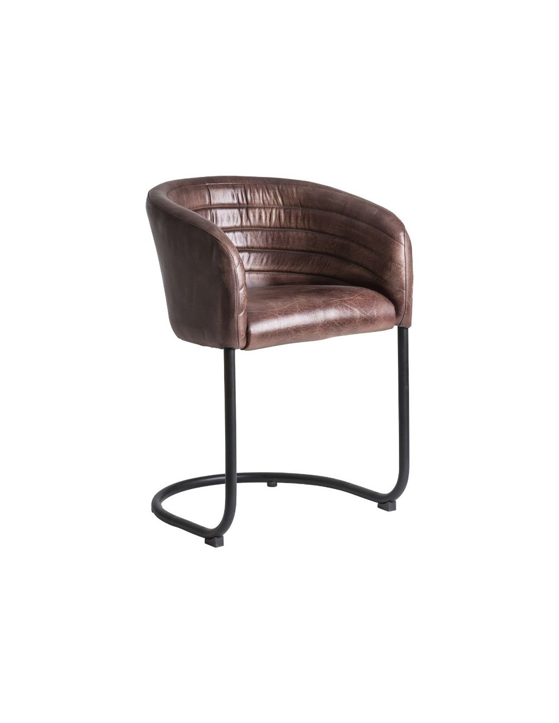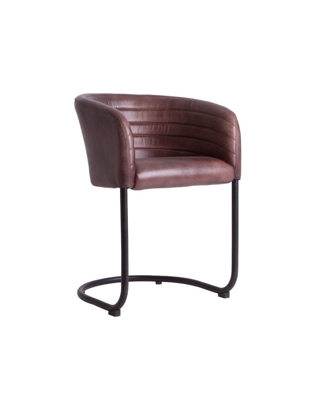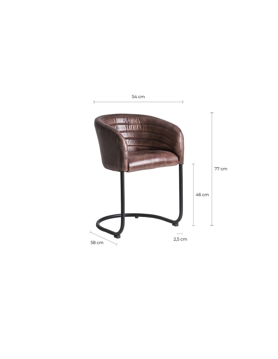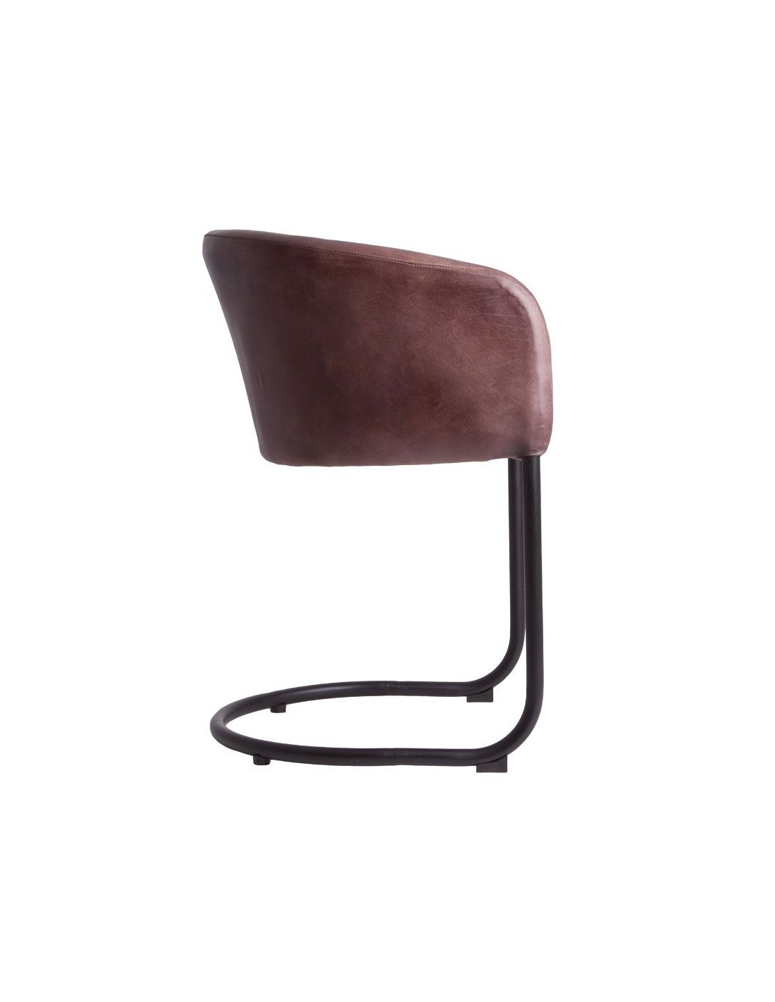 Silla Seney, En Color Marrón, De Estilo Vintage. Fabricado En Hierro, Combinado Con Cuero Y Espuma. Piel De Ante.