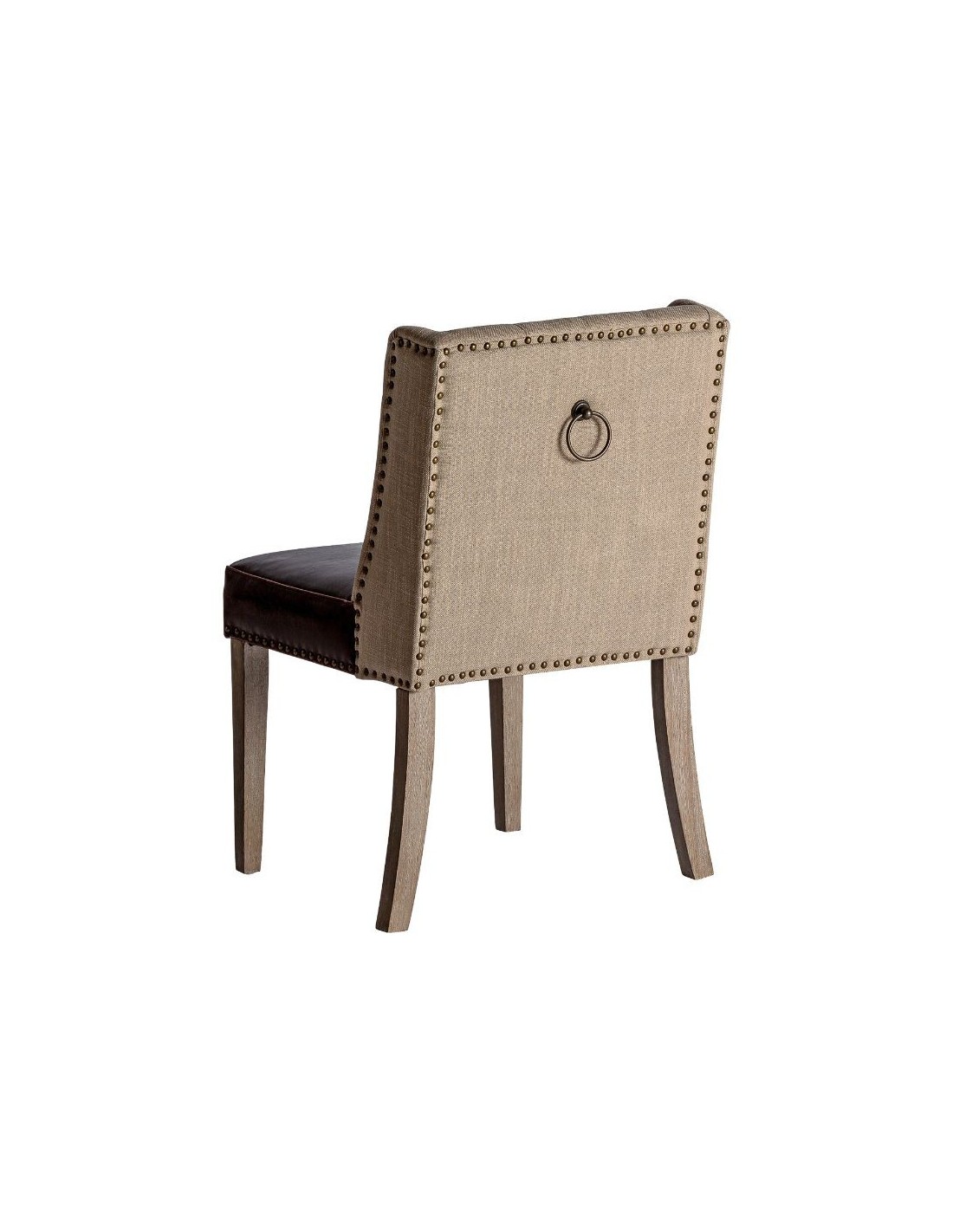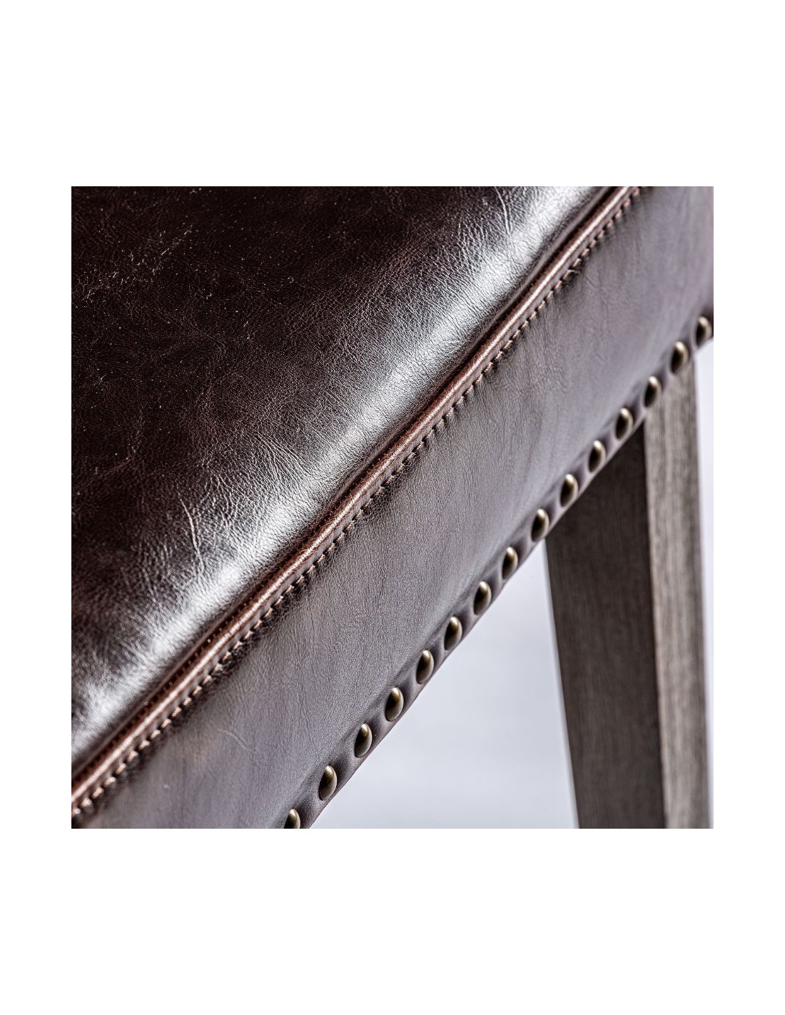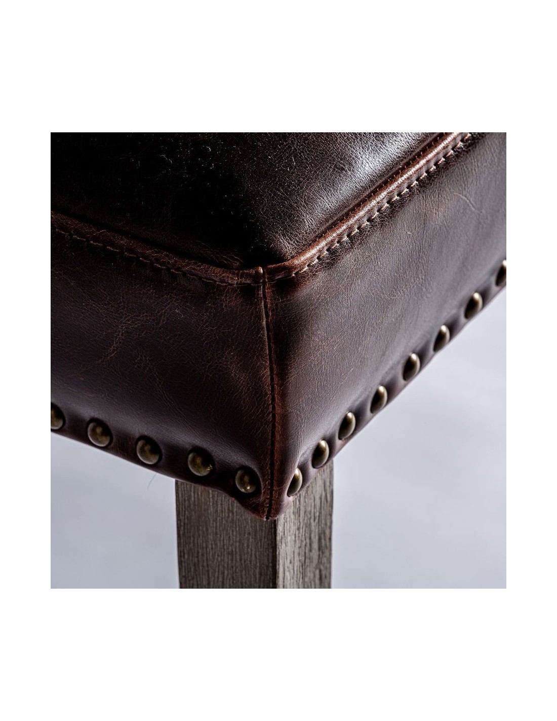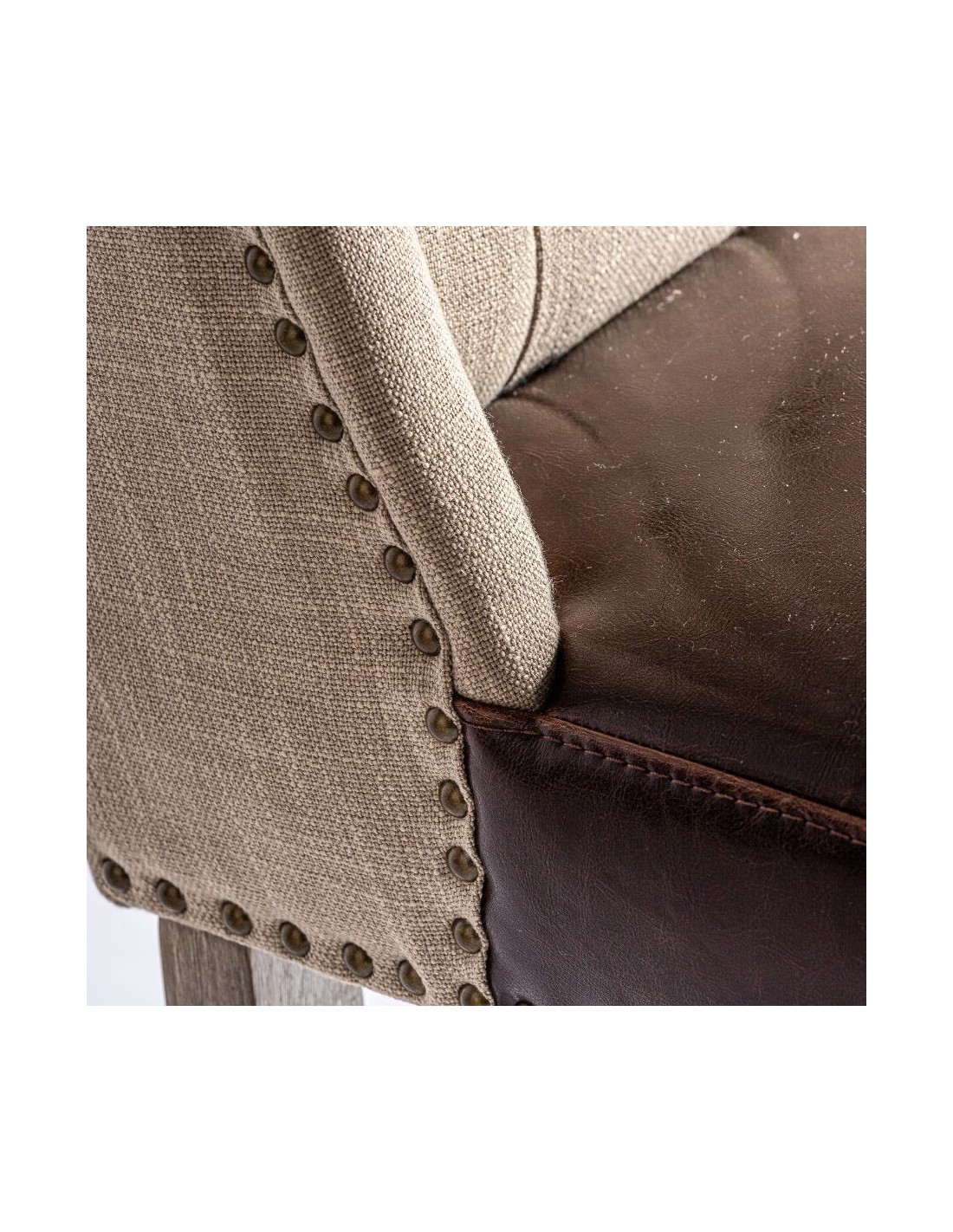 Silla Tunja, En Color Marrón, De Estilo Vintage. Fabricado En Madera De Pino, Combinado Con Loneta Y Cuero.