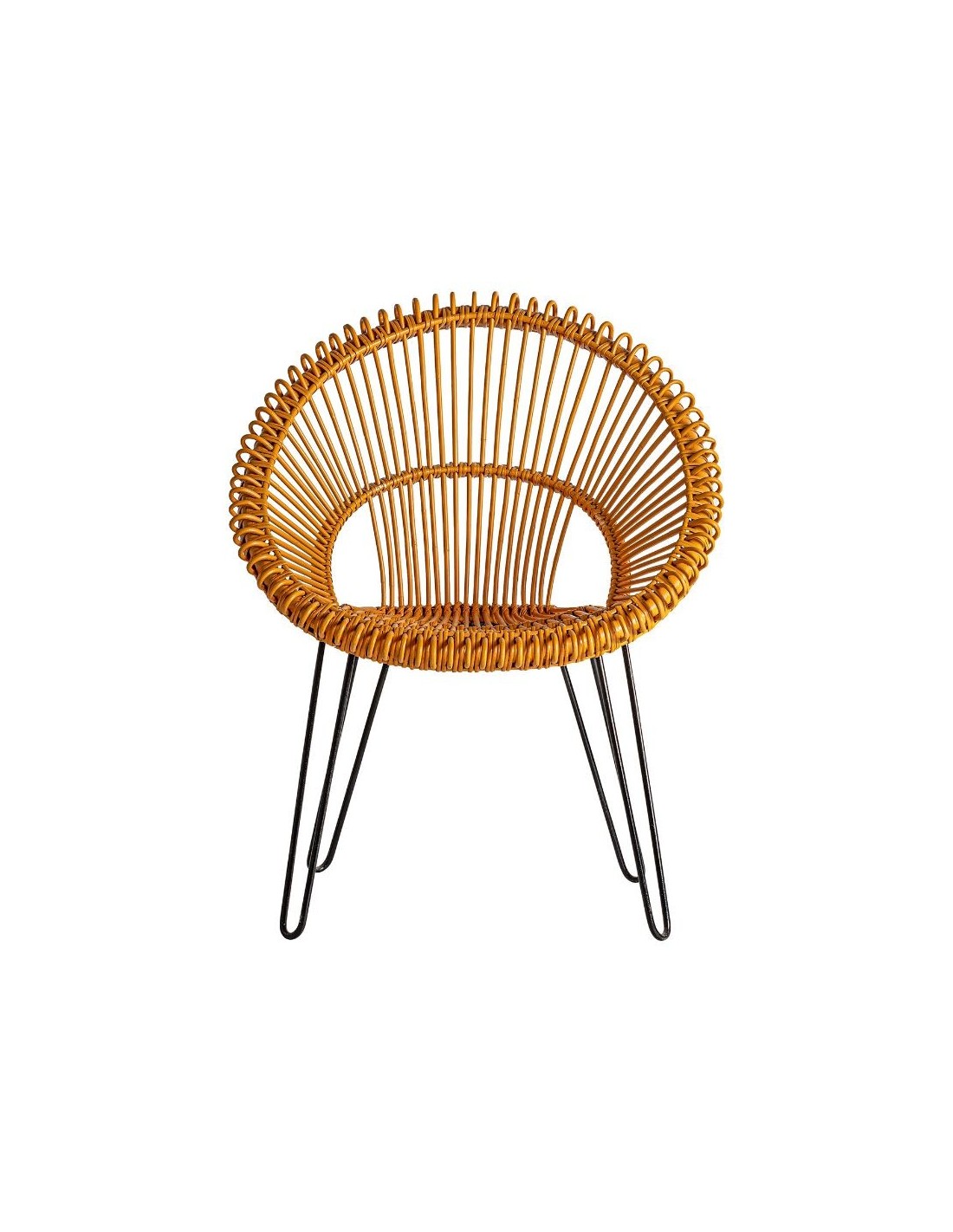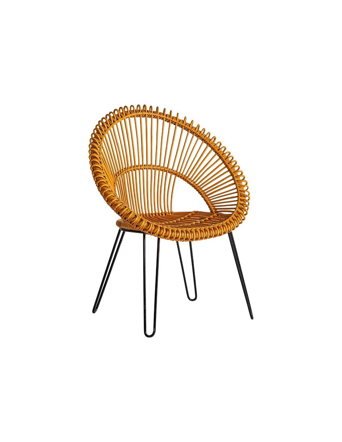 Sillón Alfta, En Color Mostaza, De Estilo Contemporáneo. Fabricado En Ratán, Combinado Con Hierro.