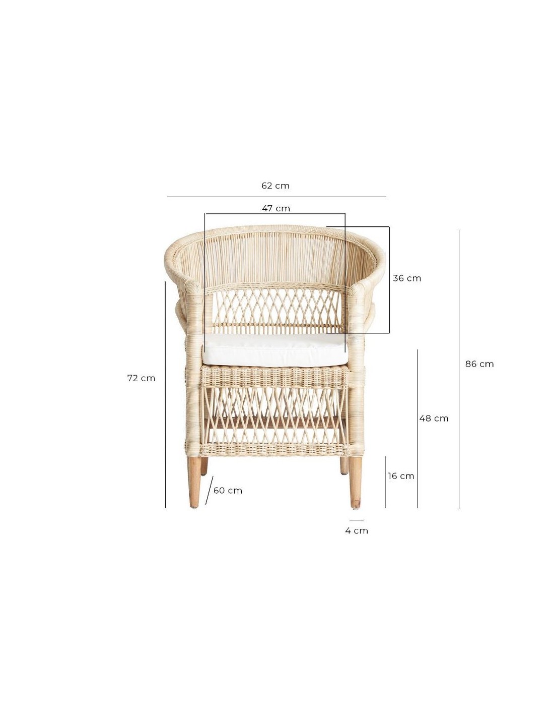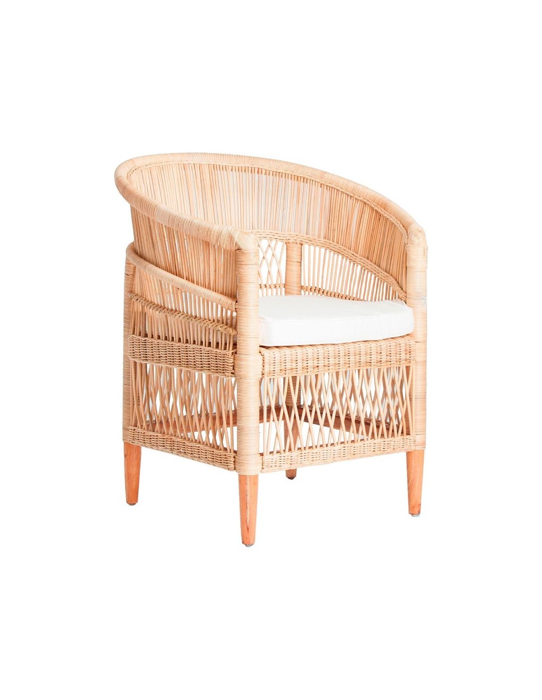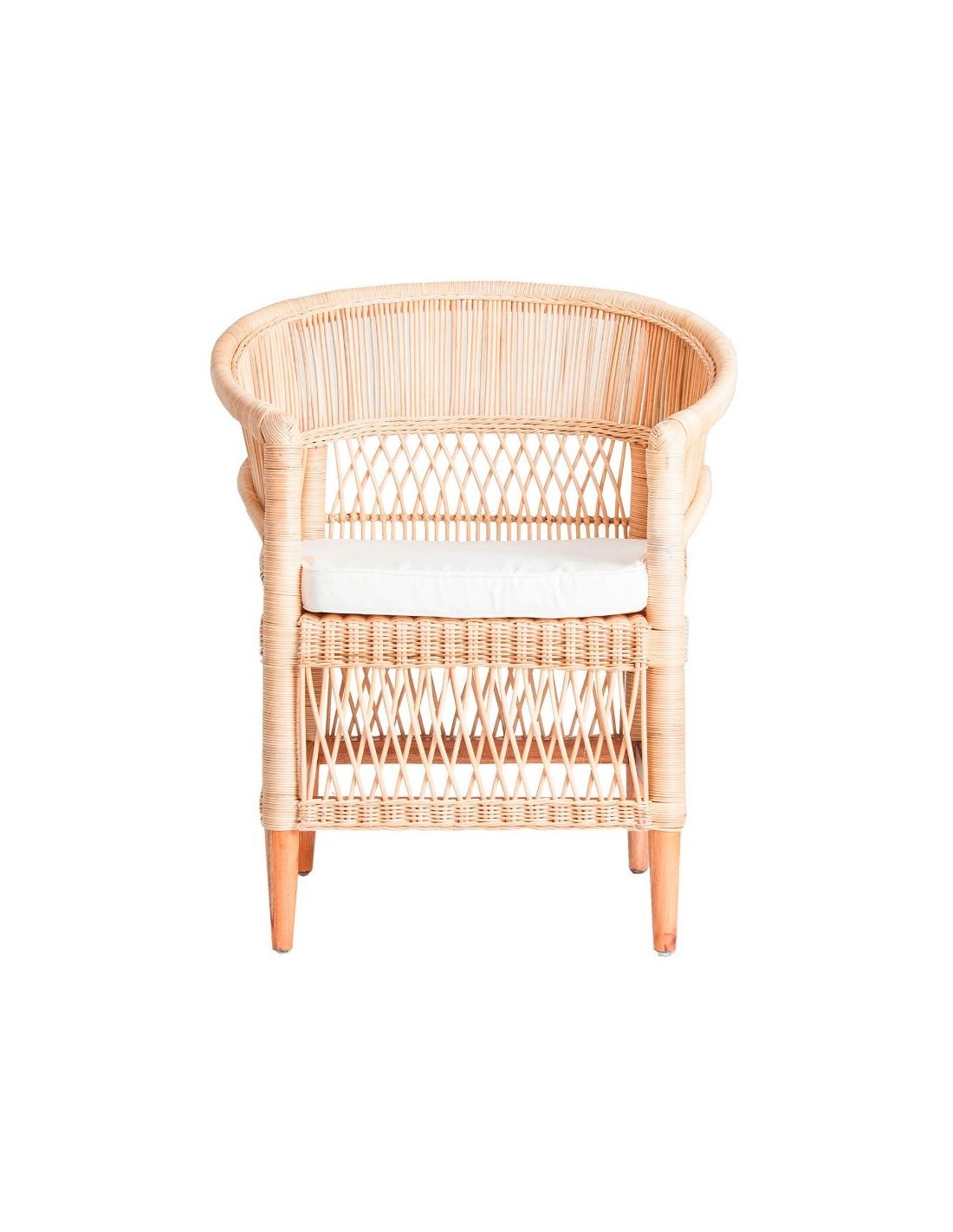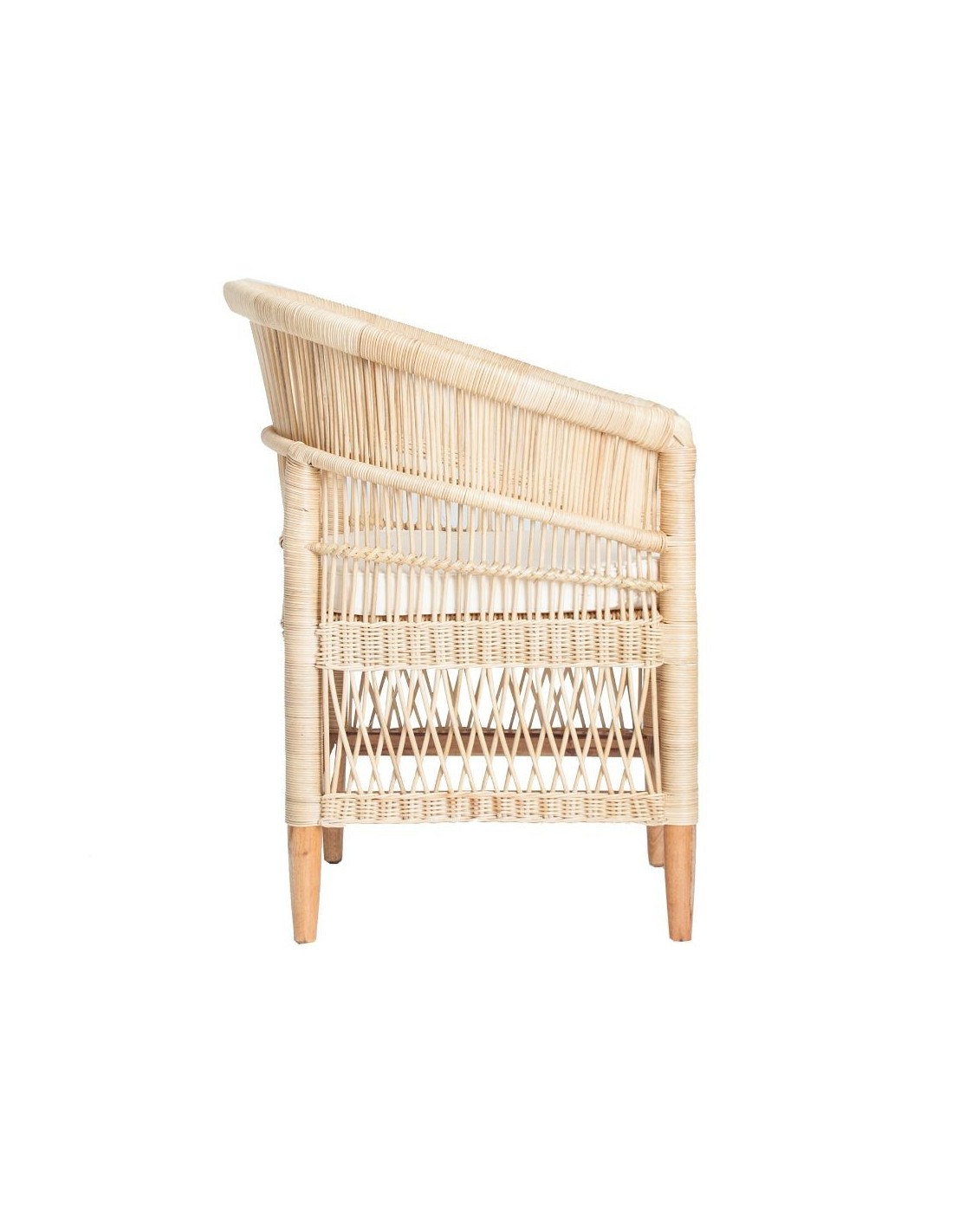 Sillón Elna, En Color Natural, De Estilo Contemporáneo. Fabricado En Ratán, Combinado Con Madera Mindi Y Algodón.