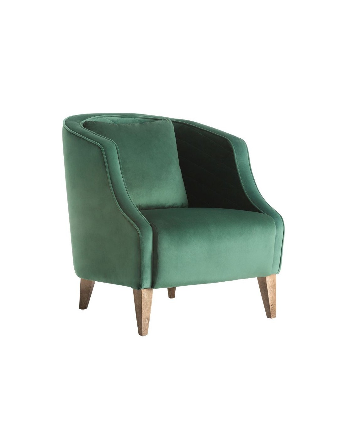 Sillón Gossel, En Color Verde, De Estilo Kitsh. Fabricado En Madera De Pino, Combinado Con Terciopelo Y Espuma. Producto Desmontable.