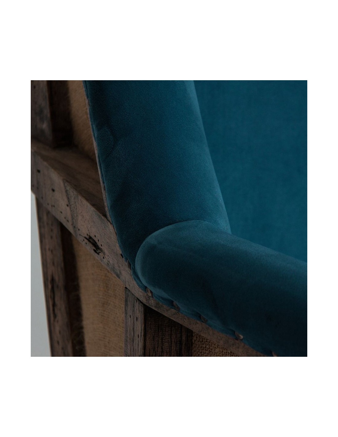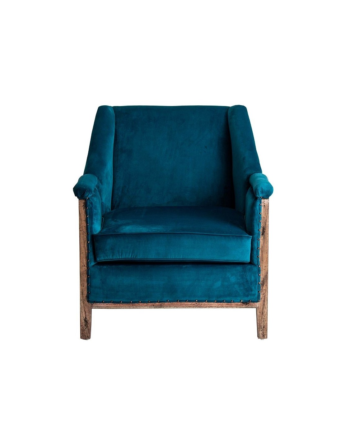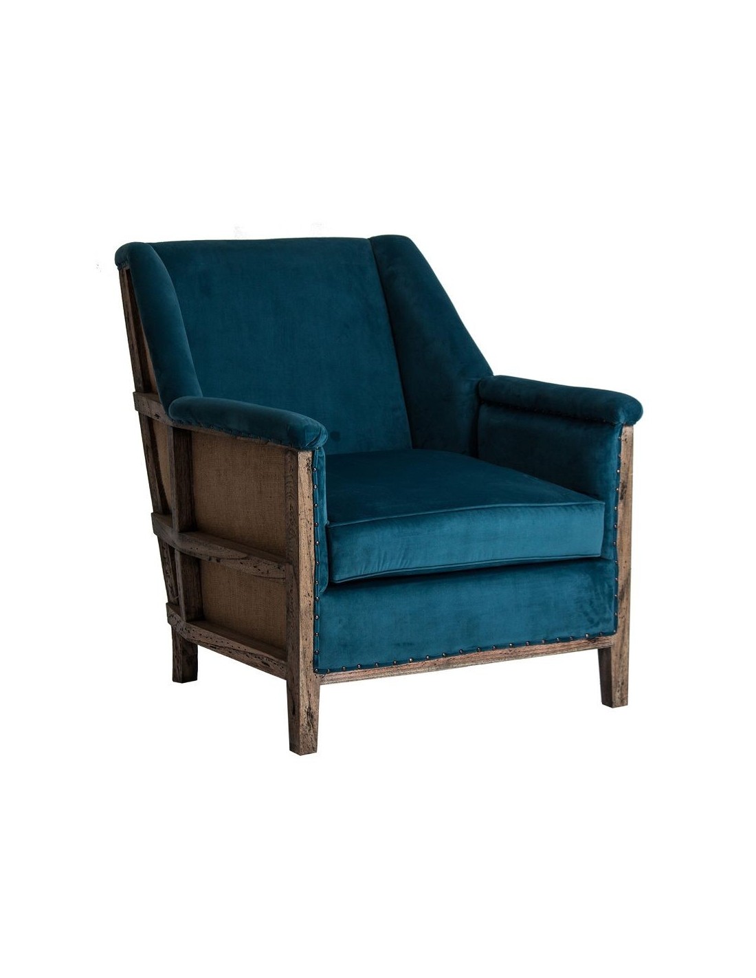 Sillón Johvi, En Color Azul Petroleo, De Estilo Kitsh. Fabricado En Madera Tropical, Combinado Con Terciopelo.
