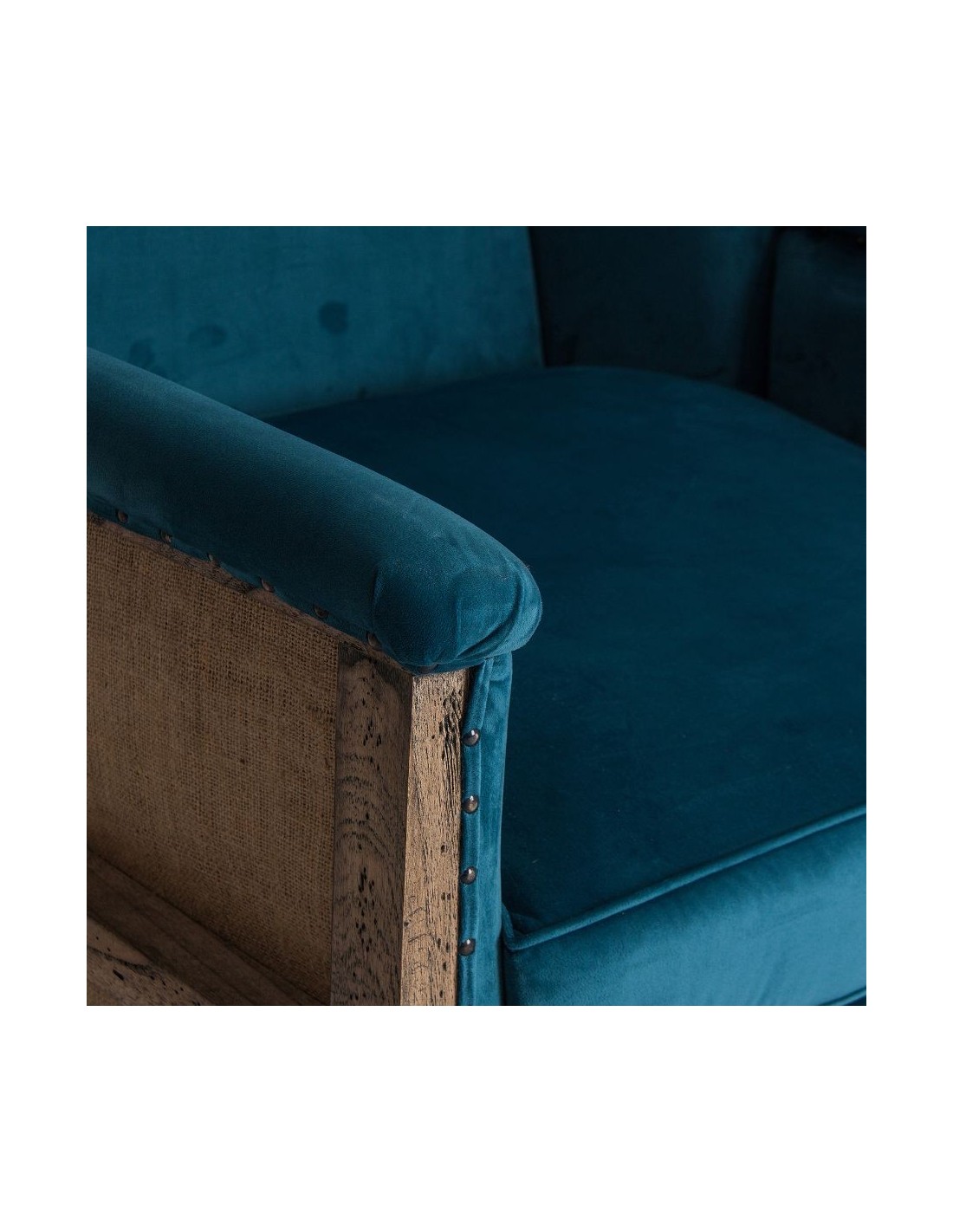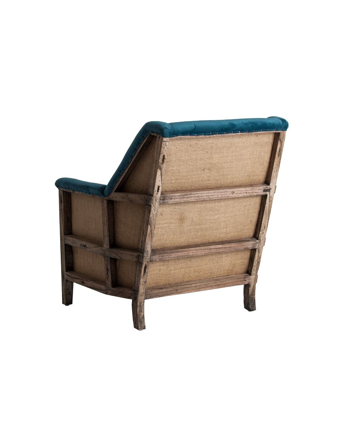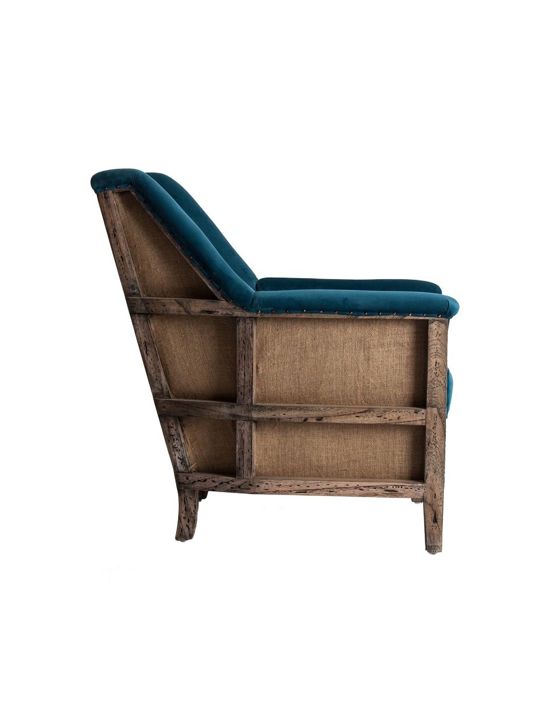 Sillón Johvi, En Color Azul Petroleo, De Estilo Kitsh. Fabricado En Madera Tropical, Combinado Con Terciopelo.