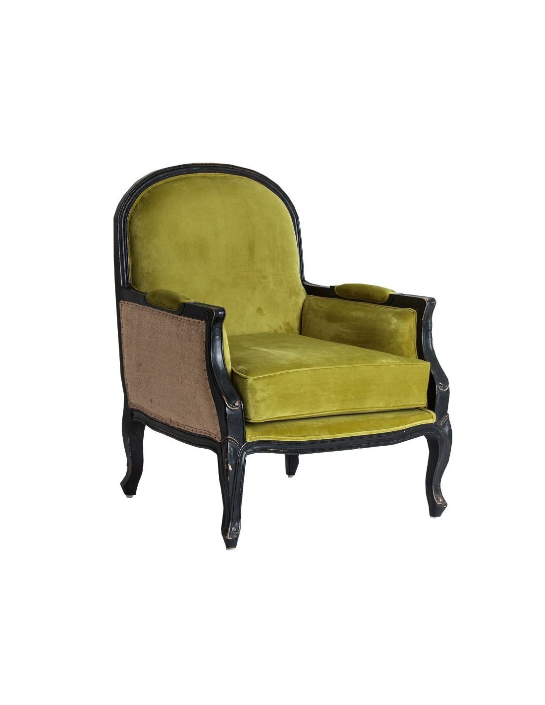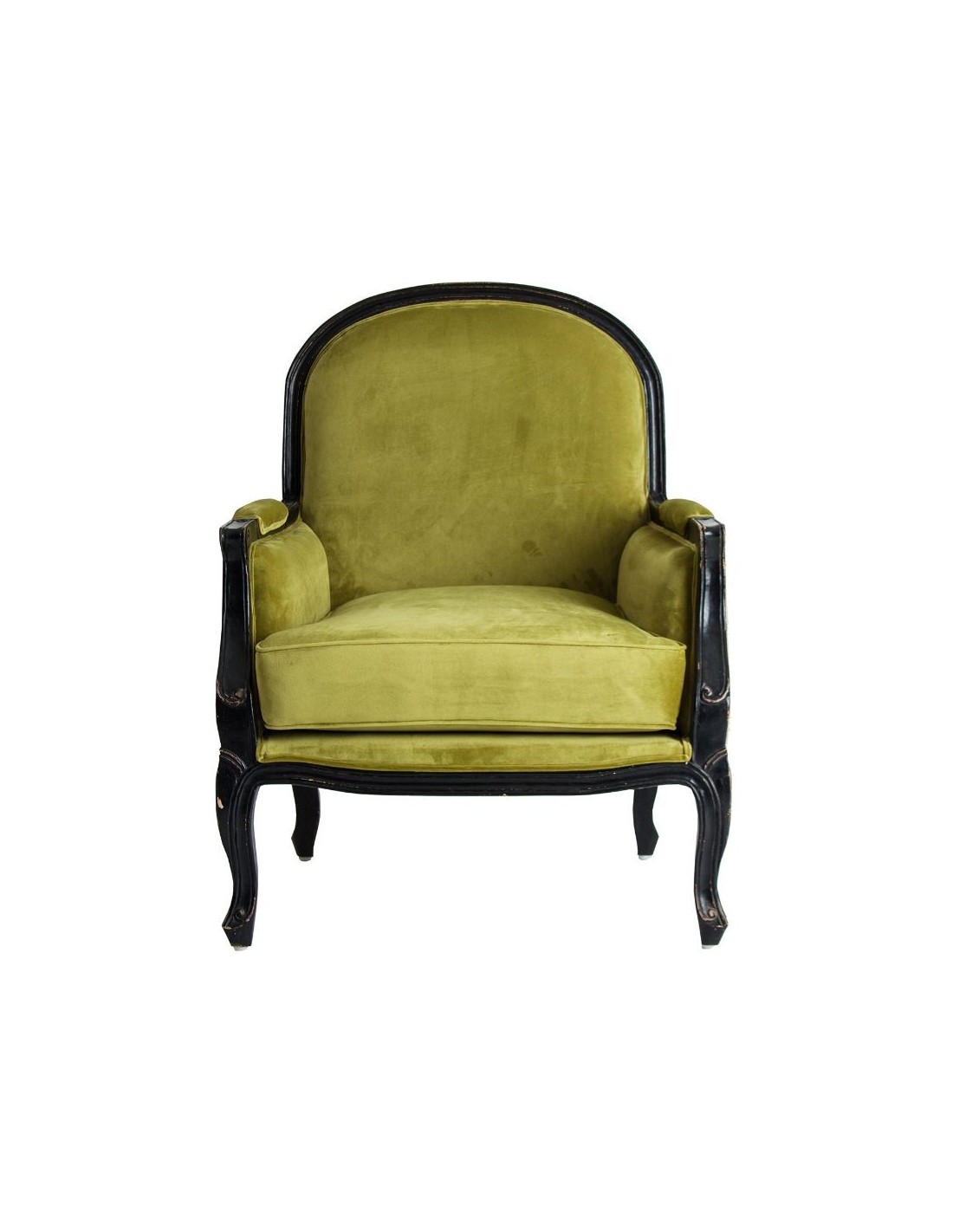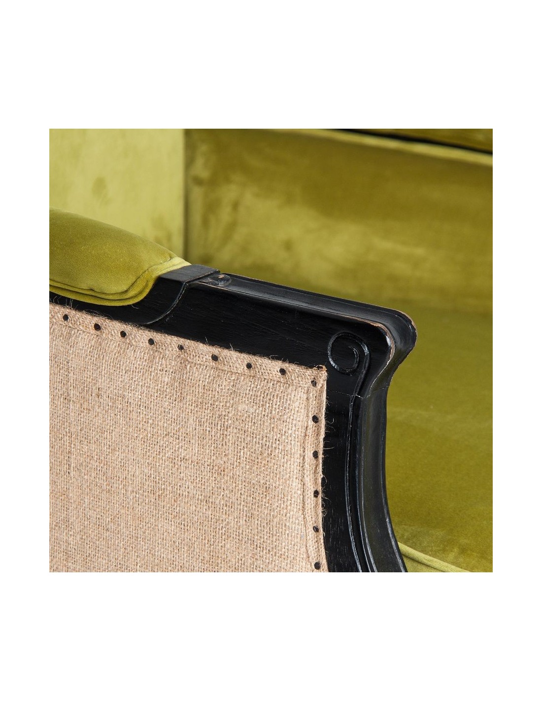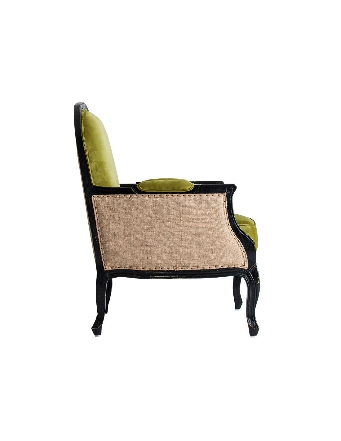 Sillón Johvi, En Color Verde/Negro, De Estilo Kitsh. Fabricado En Madera Tropical, Combinado Con Terciopelo.