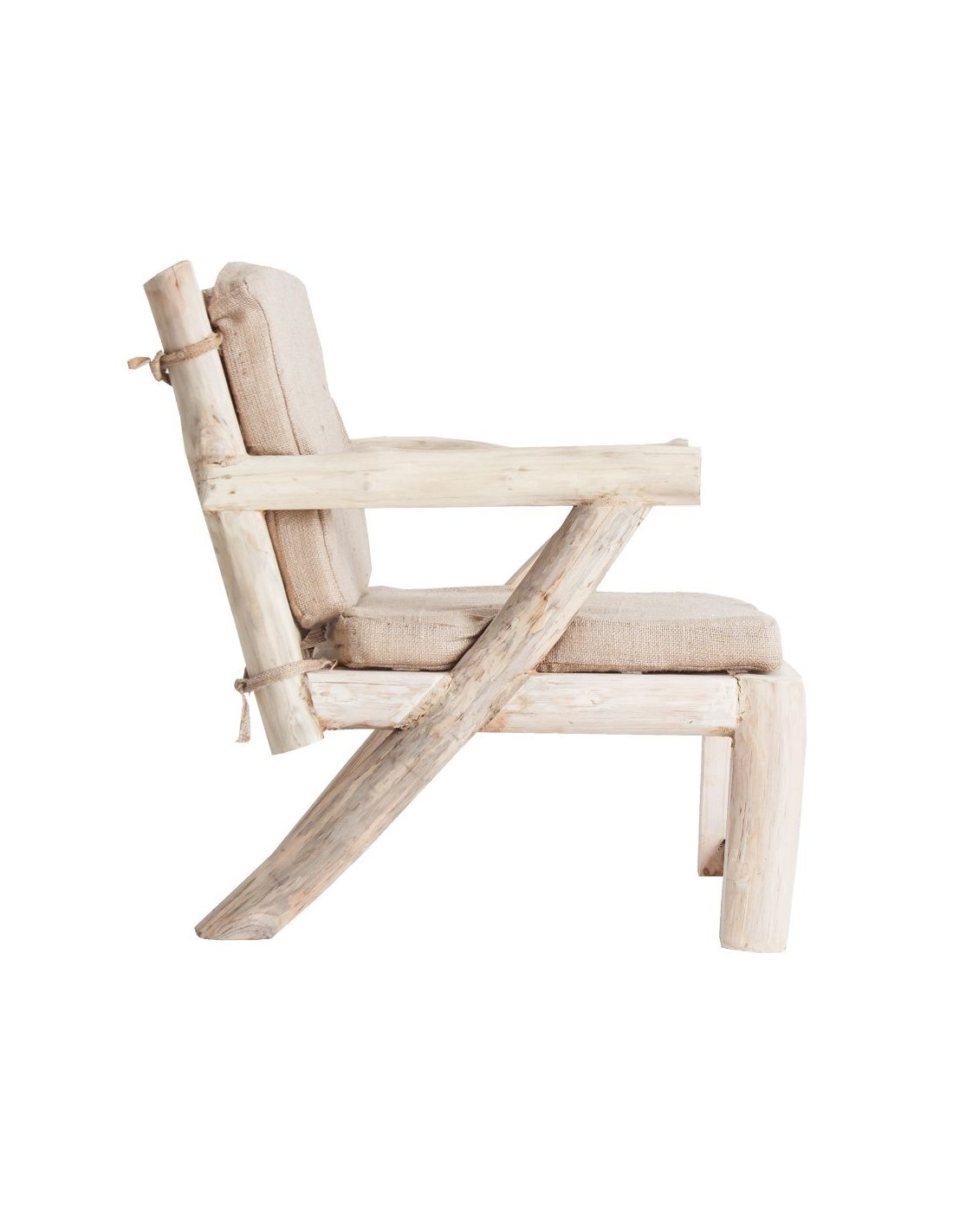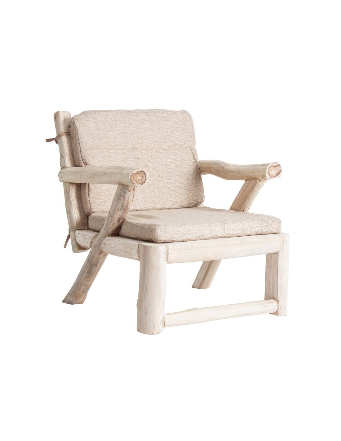 Sillón Kibray, En Color Natural Envejecido, De Estilo Contemporáneo. Fabricado En Madera De Teka.