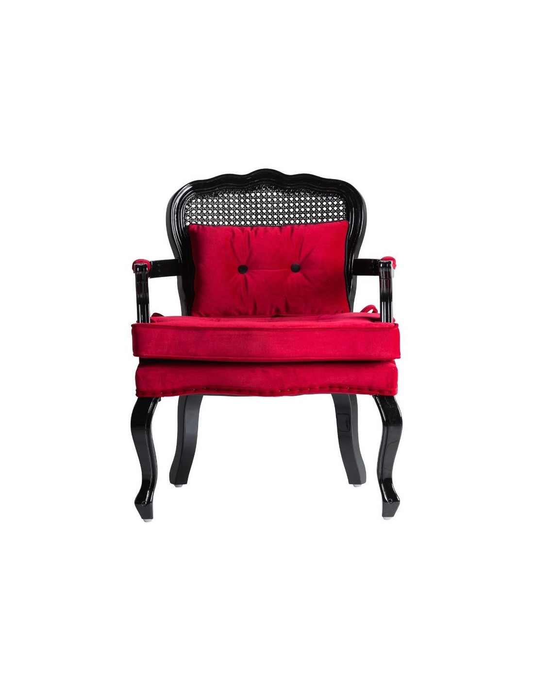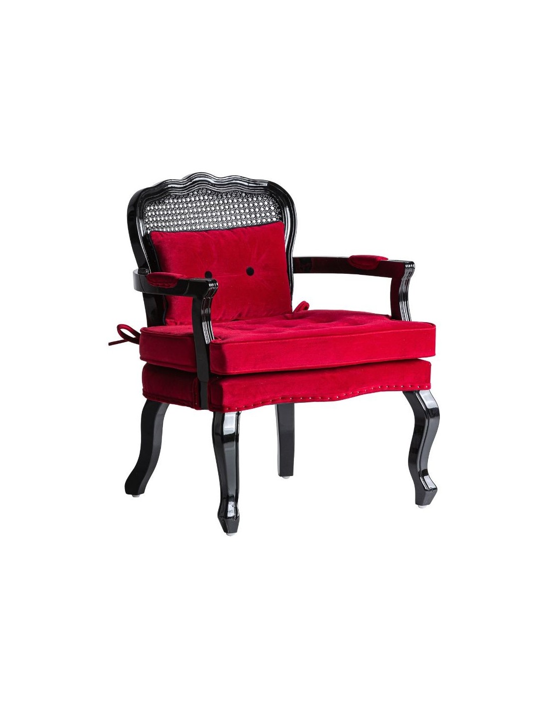 Sillón Laleu, En Color Rojo, De Estilo Colonial. Fabricado En Terciopelo, Combinado Con Madera De Pino. Producto Desenfundable.