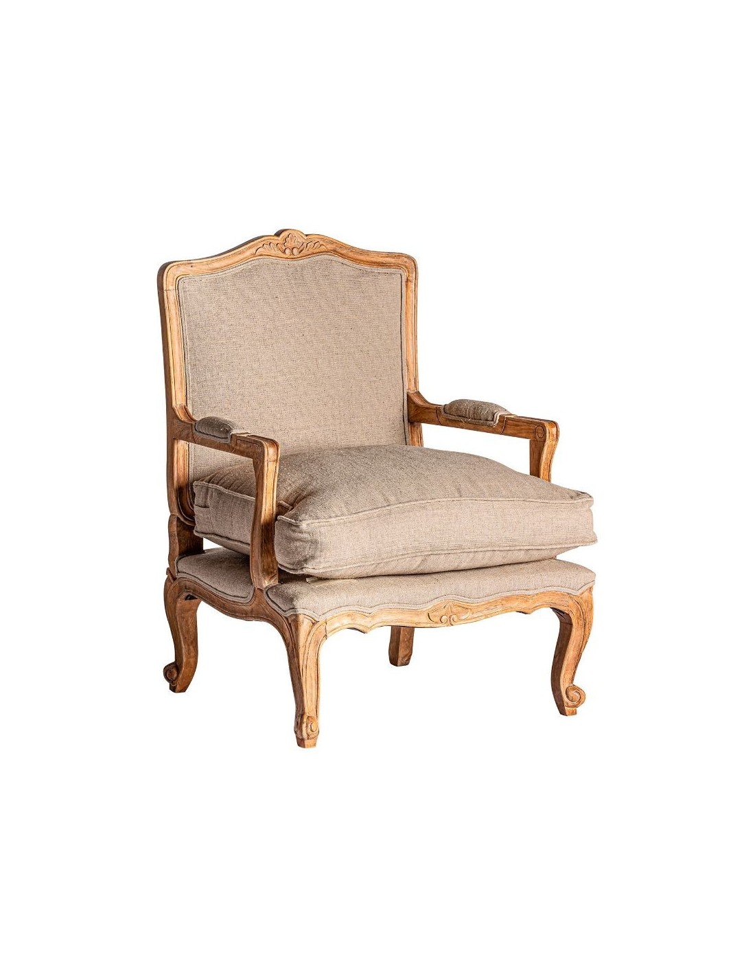 Sillón Zwet, En Color Beige, De Estilo Clásico. Fabricado En Madera De Mango, Combinado Con Algodón. Producto Desenfundable.