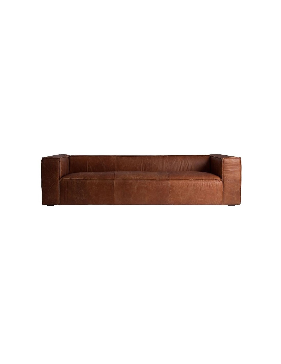 Sofá Kurza, En Color Marrón, De Estilo Vintage. Fabricado En Cuero Vaca, Combinado Con Madera De Abeto Y Espuma. Producto Desmontable.