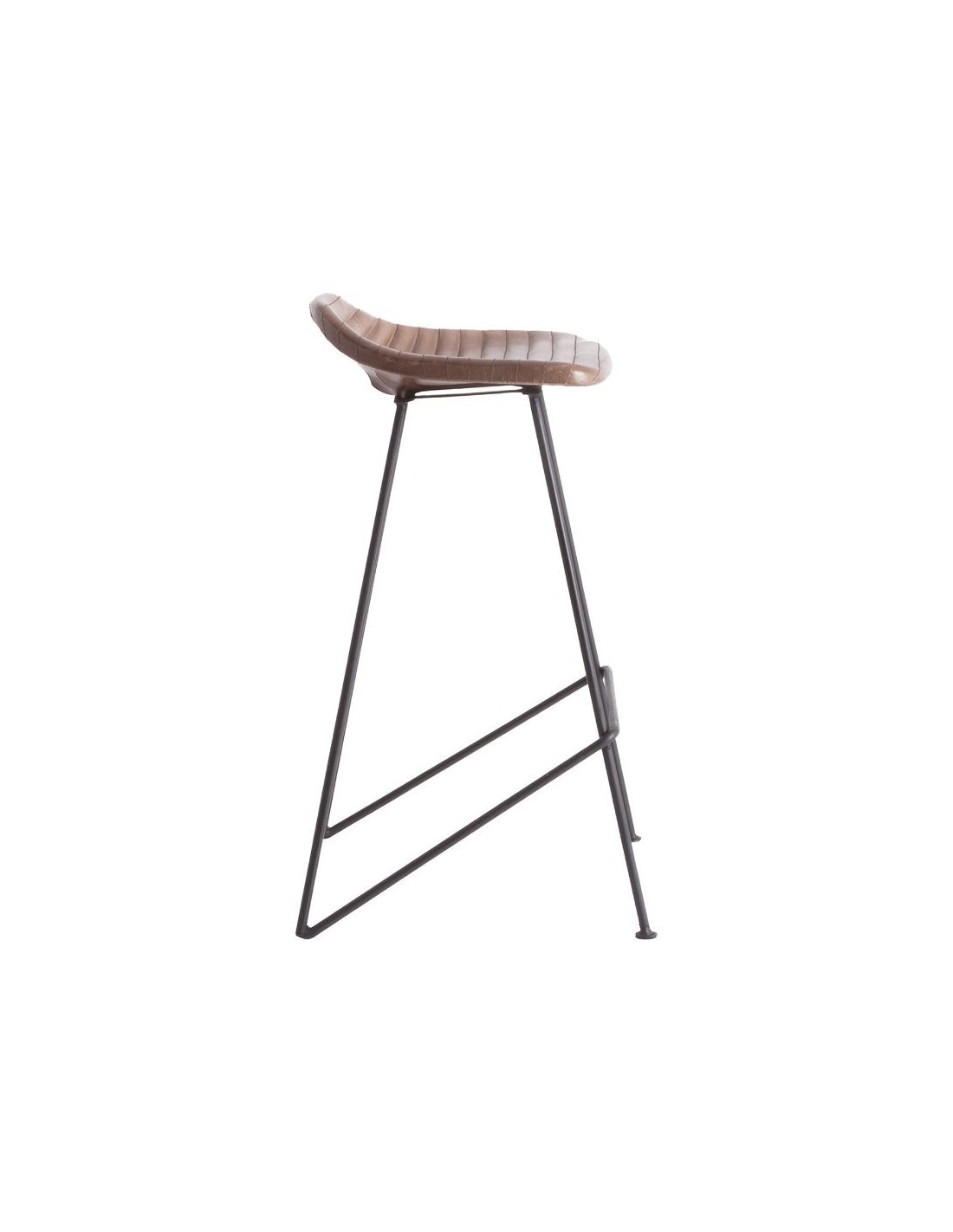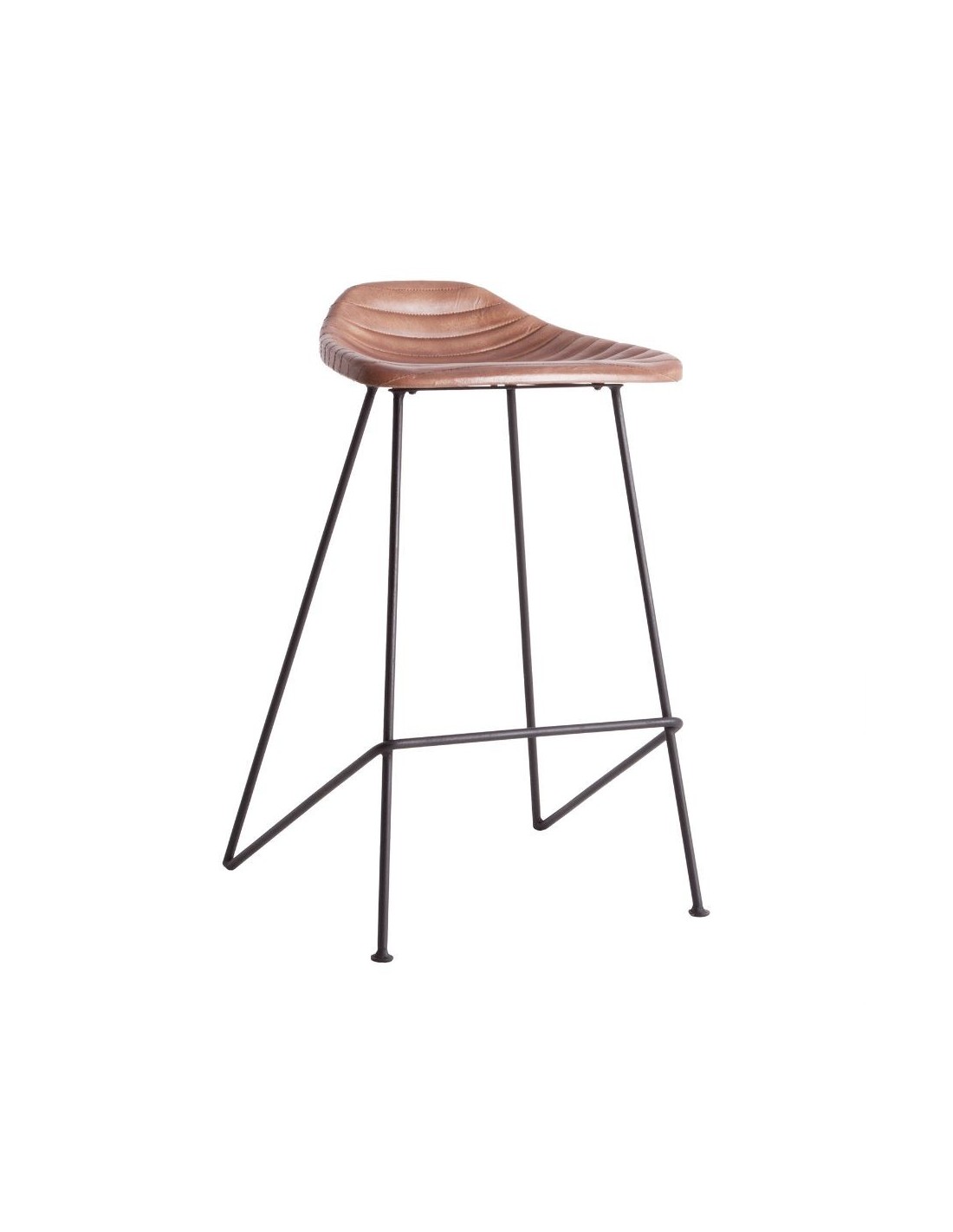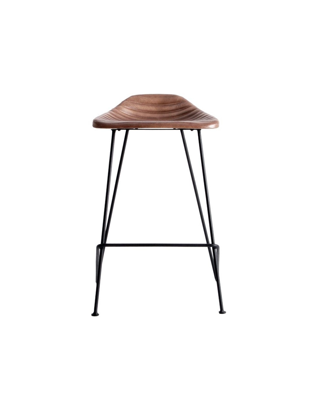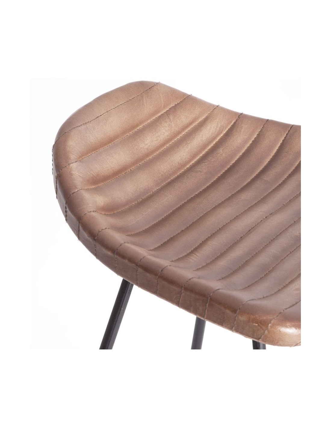 Taburete Almstock, En Color Marrón, De Estilo Vintage. Fabricado En Hierro, Combinado Con Piel.