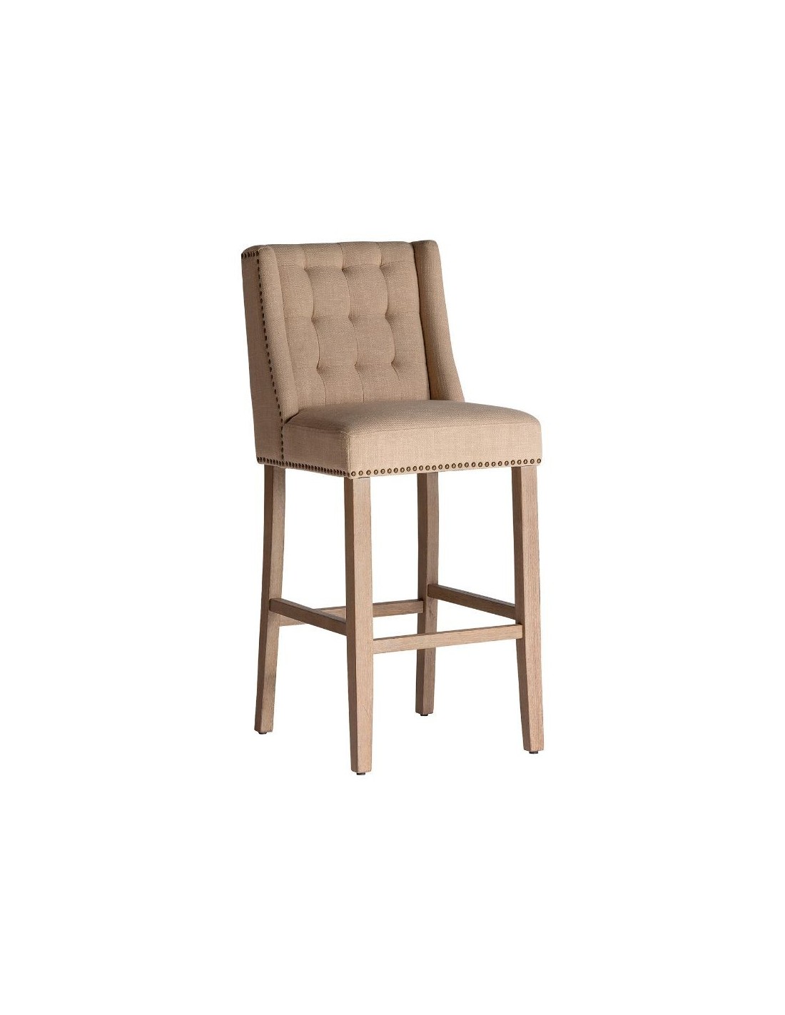 Taburete Erfurt, En Color Crema, De Estilo Colonial. Fabricado En Madera De Pino, Combinado Con Loneta. Producto Desmontable.