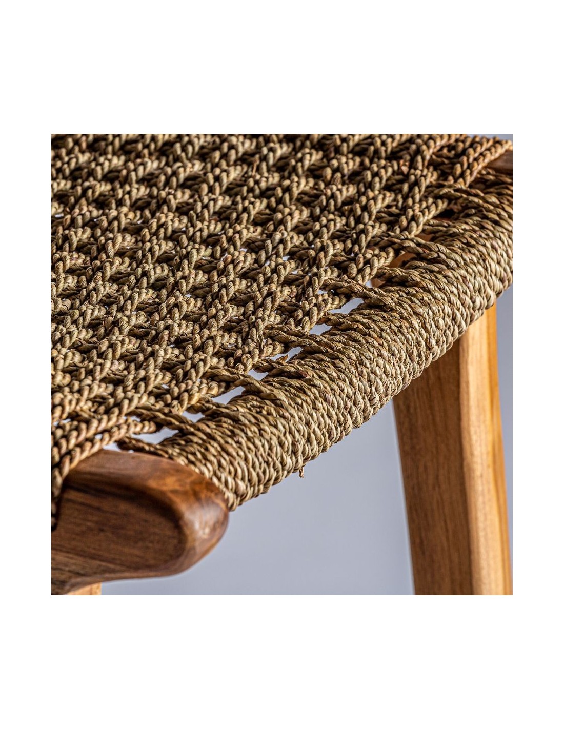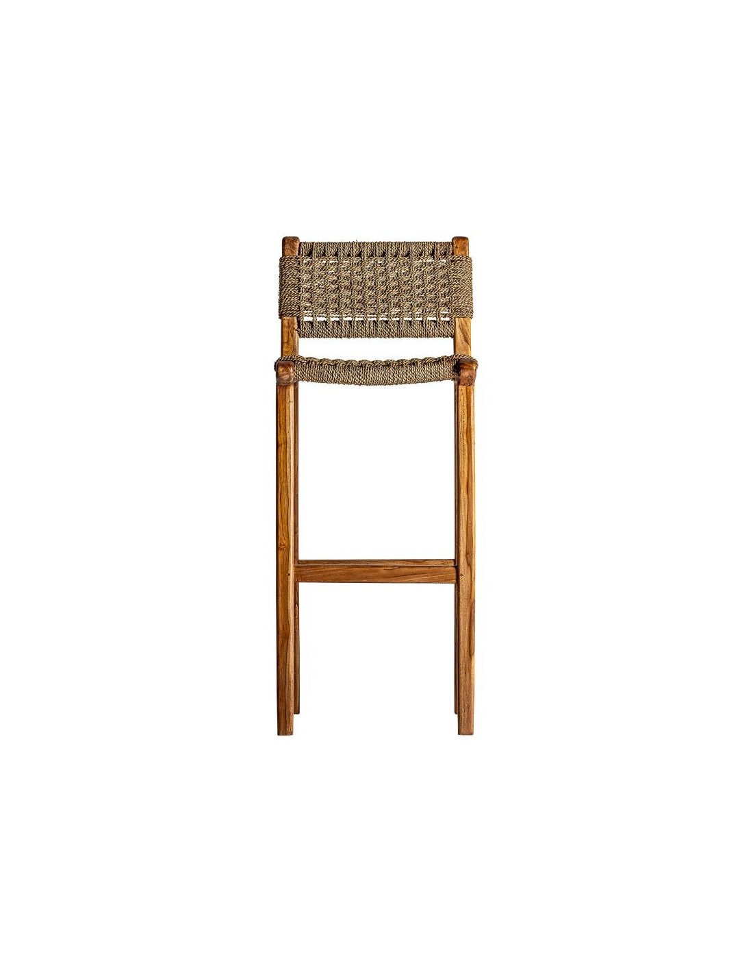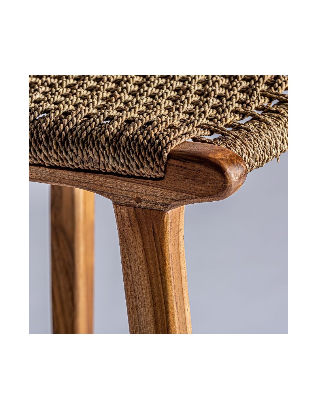 Taburete Kavala, En Color Natural, De Estilo Vintage. Fabricado En Madera De Teka, Combinado Con Cuerda.