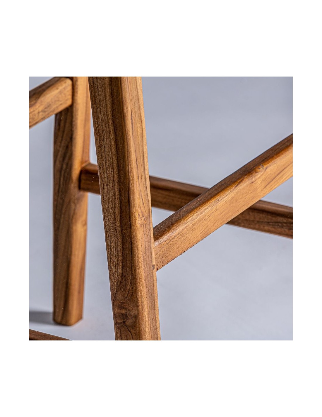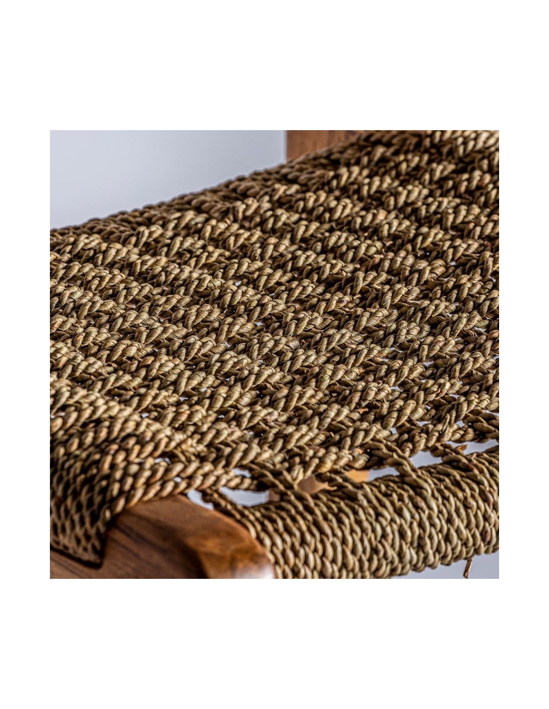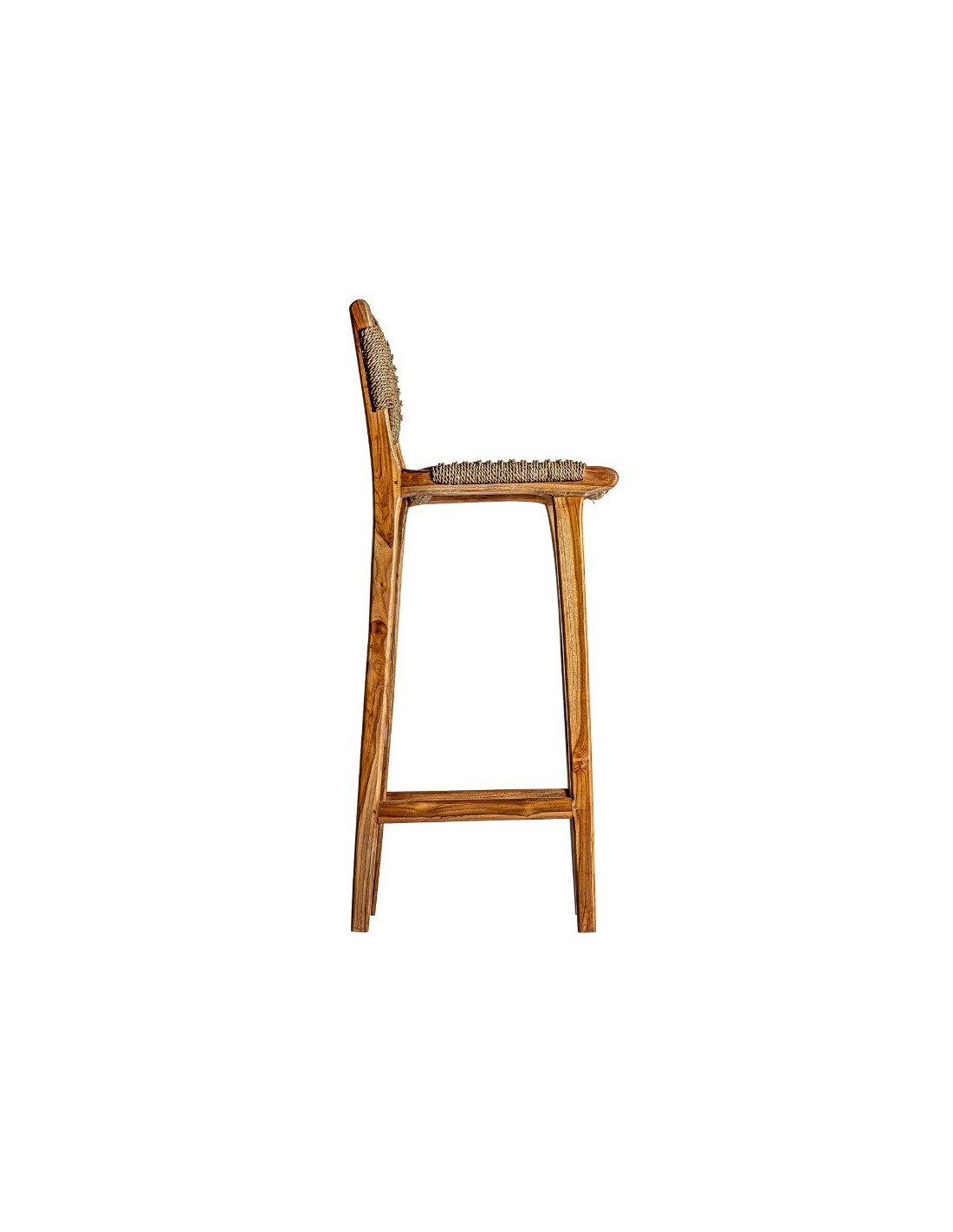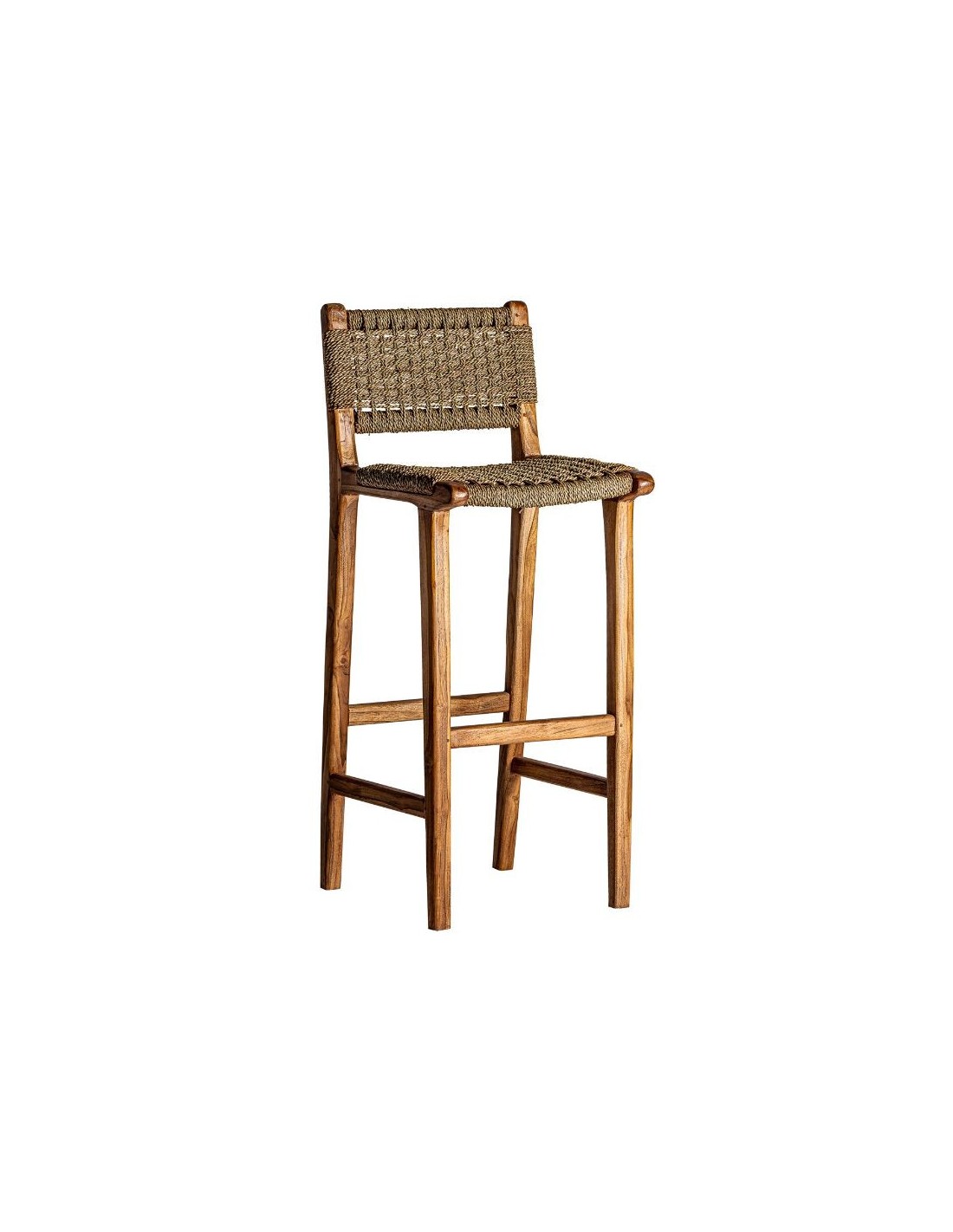 Taburete Kavala, En Color Natural, De Estilo Vintage. Fabricado En Madera De Teka, Combinado Con Cuerda.