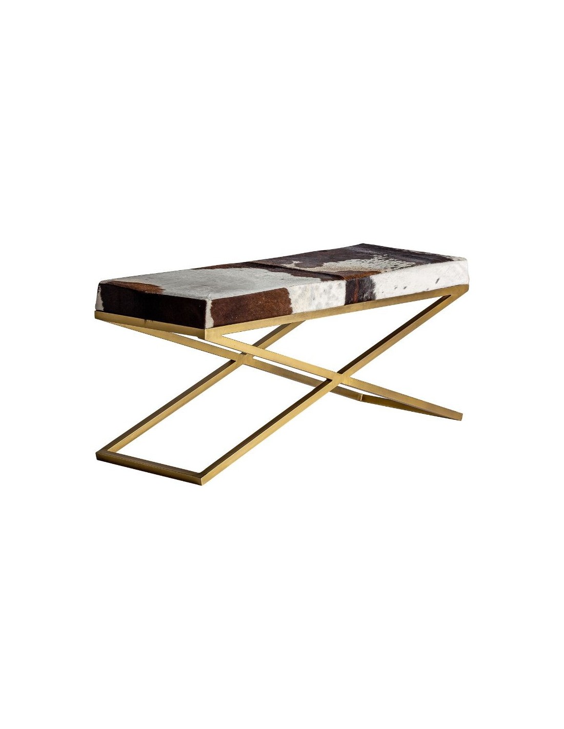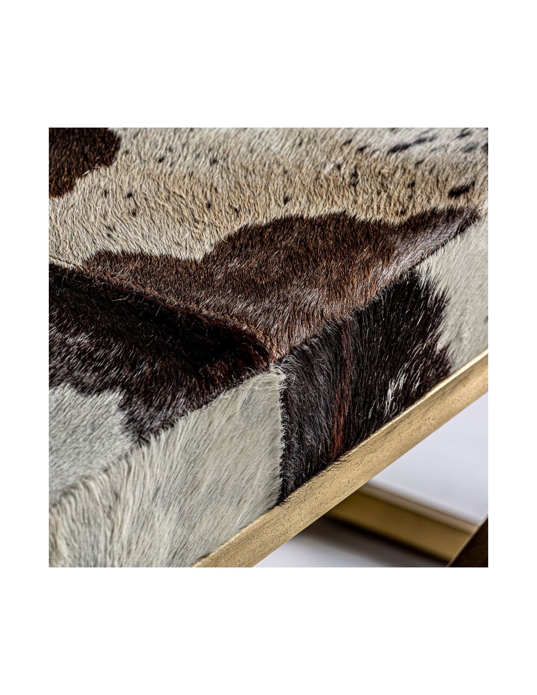 Taburete Wayland, En Color Marrón/Oro, De Estilo Art Deco. Fabricado En Hierro, Combinado Con Cuero.