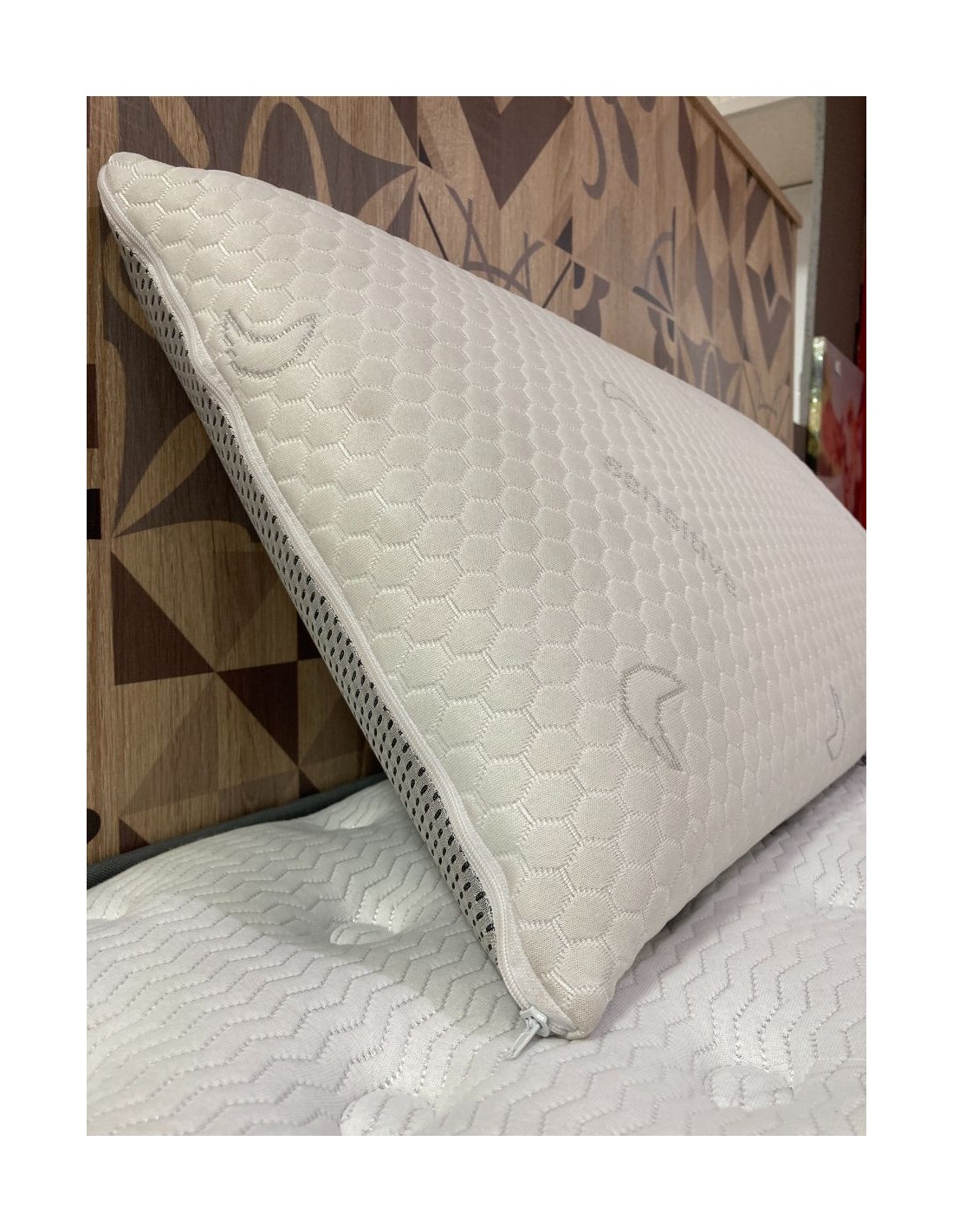 Almohada con relleno viscoelástico de gran calidad que se diferencia del resto de las comercializadas por su gran transpirabilidad, ventilación y termorregulación. Su funda lavable con su tratamiento con aloe vera favorecen y benefician mantener la piel sana.