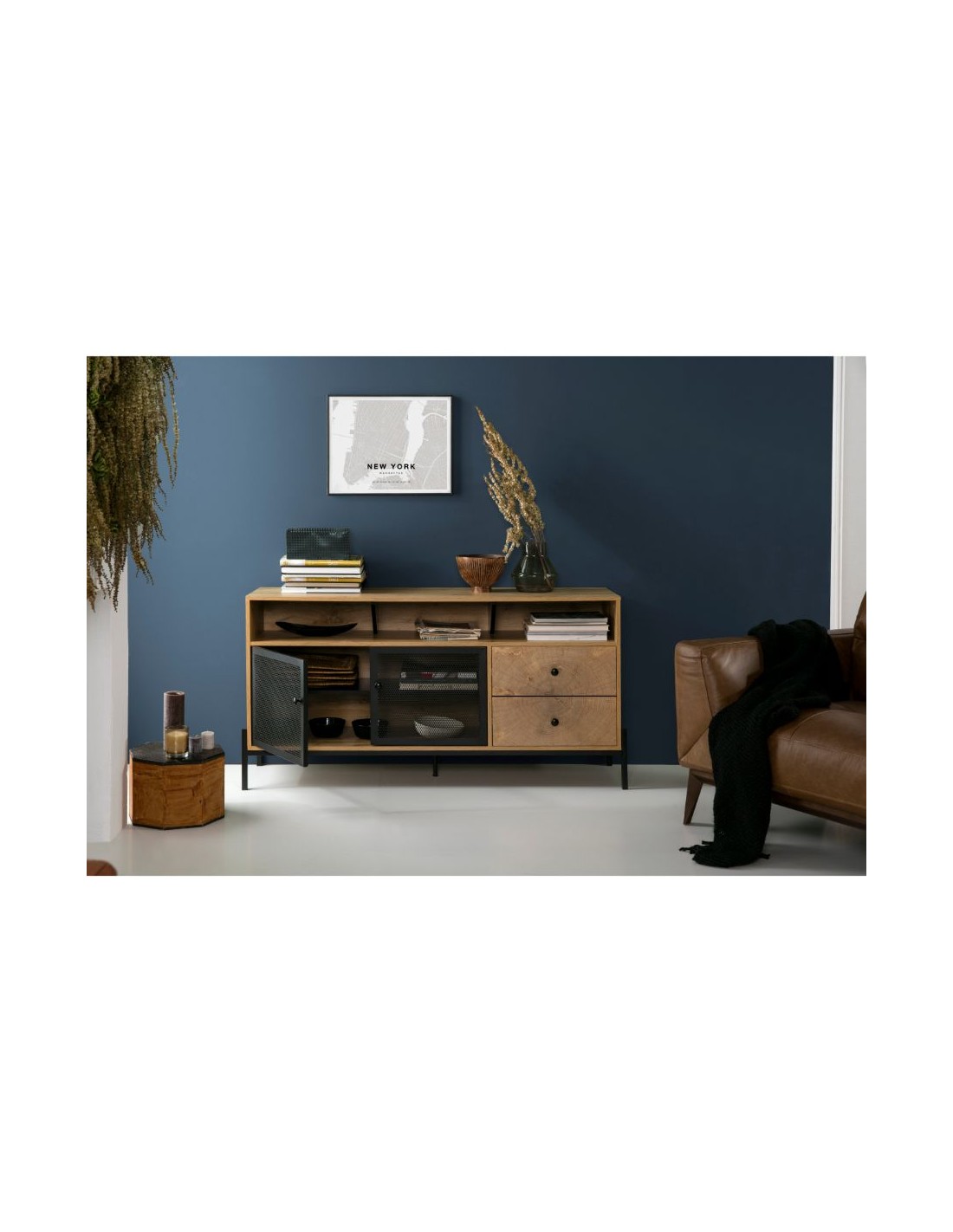 Aparador de dos puertas fabricado en madera de roble de gran calidad con acabados detallados. Aporta a tu salon el toque ideal y guarda todas las cosas de uso cotidiano en su interior.