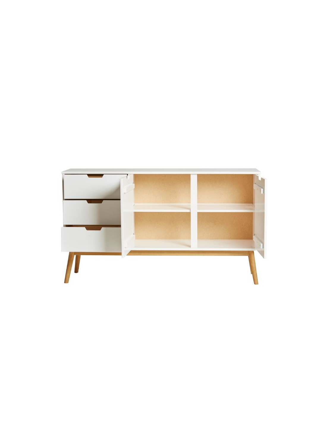 Aparador de dos puertas fabricado en madera de pino de gran calidad con acabados detallados. Aporta a tu salon el toque ideal y guarda todas las cosas de uso cotidiano en su interior.