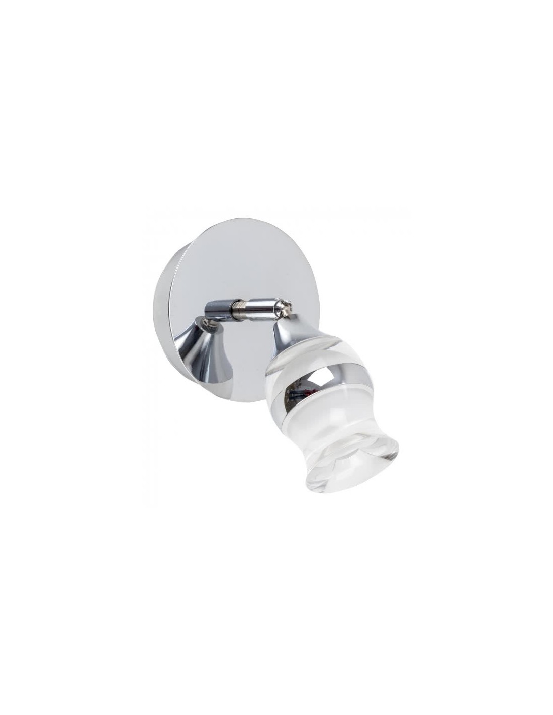 Aplique serie ZODIACO con tecnología LED integrada. Su base es circular y está realizado en metal cromado y tulipa orientable. Tiene unas medidas de 18x16x12 centímetros y un peso neto de 500 gramos. Potencia de luz de 5 watios, 400 lúmenes y 4000K.