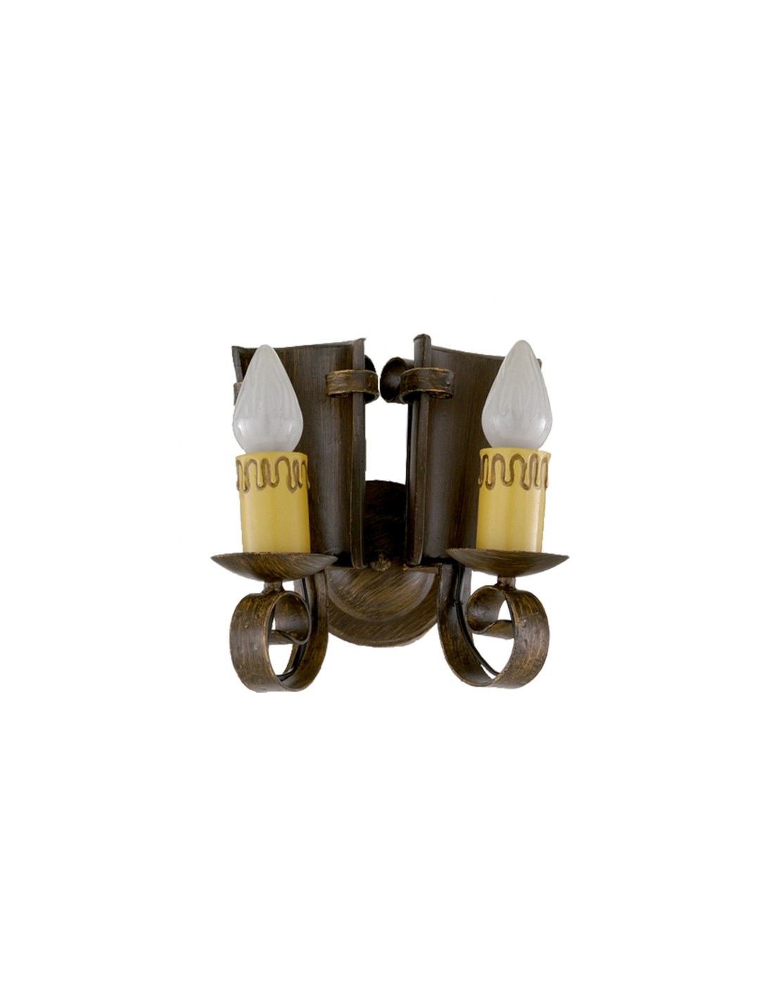 Aplique de dos luces serie cantina en color marrón. Realizado en metal y cerámica, reproduce un estilo rústico ideal para casas de campo. Sus dimensiones son 16x30x30 cm. Utiliza dos portalámparas E27. Se recomienda bombillas LEd en forma de vela para potenciar el diseño del aplique y conseguir un mayor ahorro en el consumo.