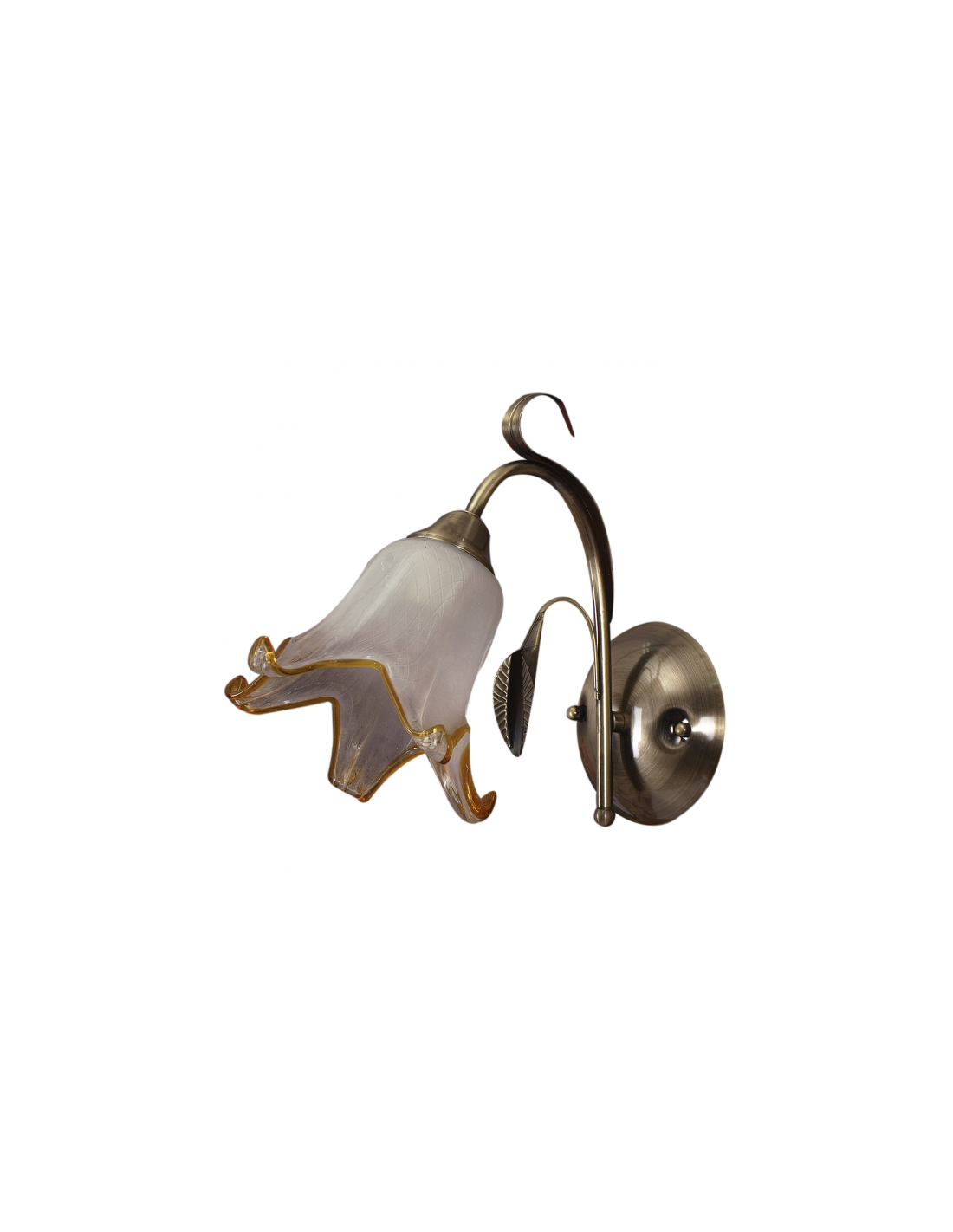 Aplique serie Forja de color cuero. Realizado en metal y cristal. Este aplique forma parte de una familia muy completa formada por lámparas de cinco, tres luces y sobremesa. Posee un cuerpo inspirado en la naturaleza, como si de una flor se tratara. El portalámparas E27.