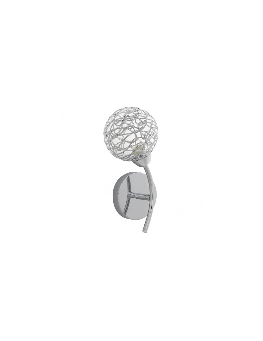 Aplique serie LYON, realizado en metal color CROMO. Original y moderno diseño con tulipa formada por una maraña de hilos metálicos, que dejan ver el interior, resultando una composición muy decorativa. Tiene un portalámpara en G9. Bombilla no incluida. Tiene una dimensión de 23x10x10 centímetros. Se puede completar la decoración de su hogar con las lámparas de cuatro y seis luces y sobremesa de color cromo. También disponibles en color cuero.