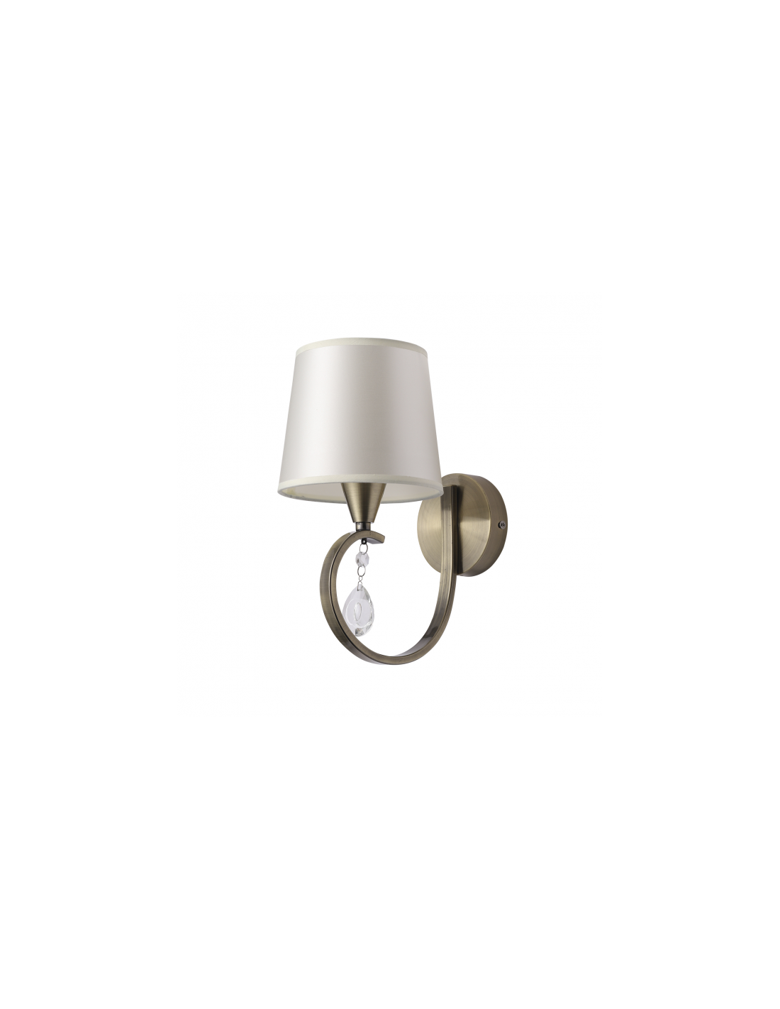 Aplique serie Rinca de color cuero. Acompaña tanto al sobremesa como la lámpara de tres y cinco luces en cromo. Está realizado en metal y cristal y sus dimensiones son 29x15x21cm, su peso neto 385 g y el portalámparas E14.