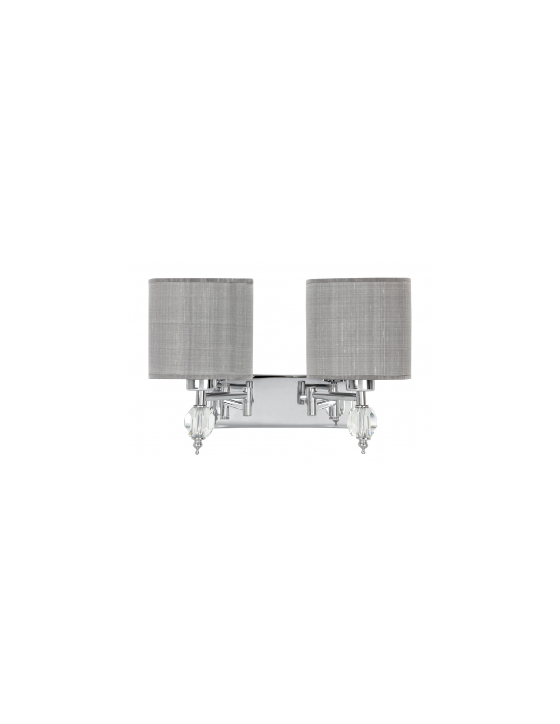 Aplique de dos luces serie San Miguel en color gris/cromo. Este elegante aplique combina el material textil y metal con detalles en cristal. Presenta un brazo articulable lo cual lo hace más funcional. Sus dimensiones son 16<,36x38x23 cm y su peso neto 1030 gr. Utiliza dos portalámparas E27. Puede completar la iluminación de su hogar con la serie completa.