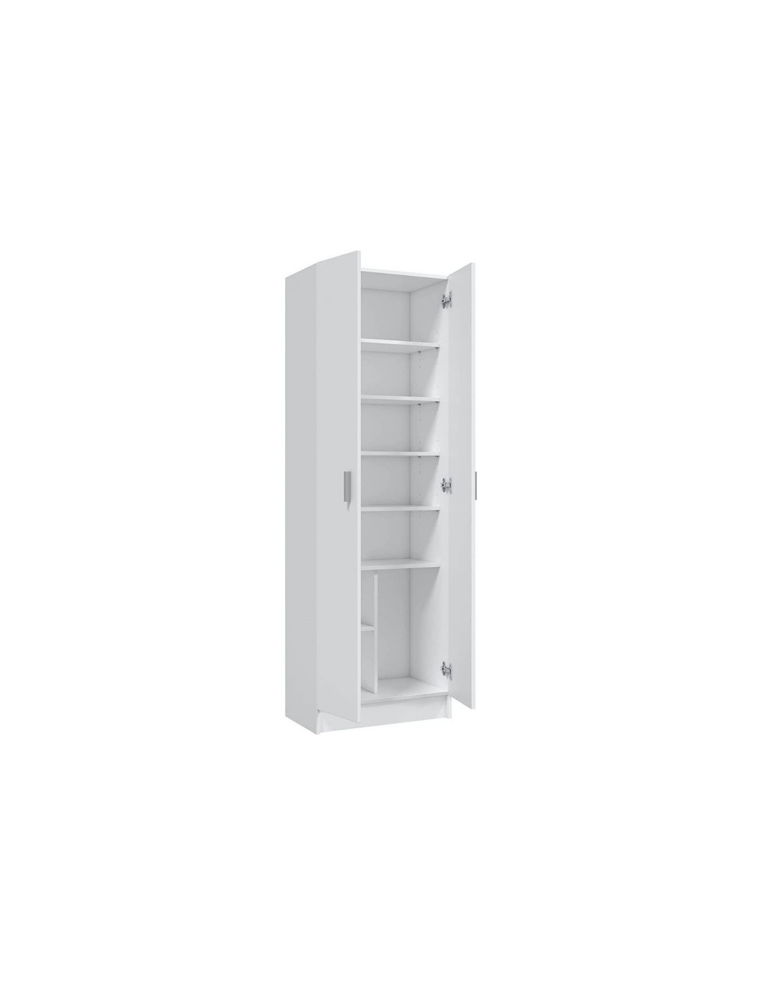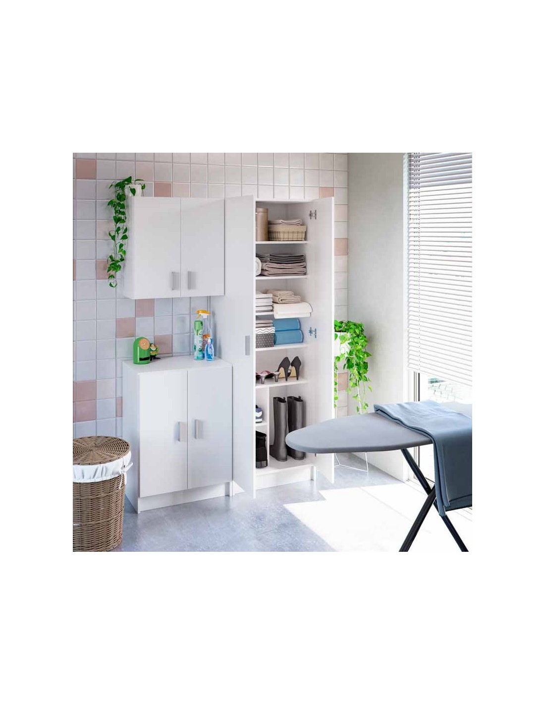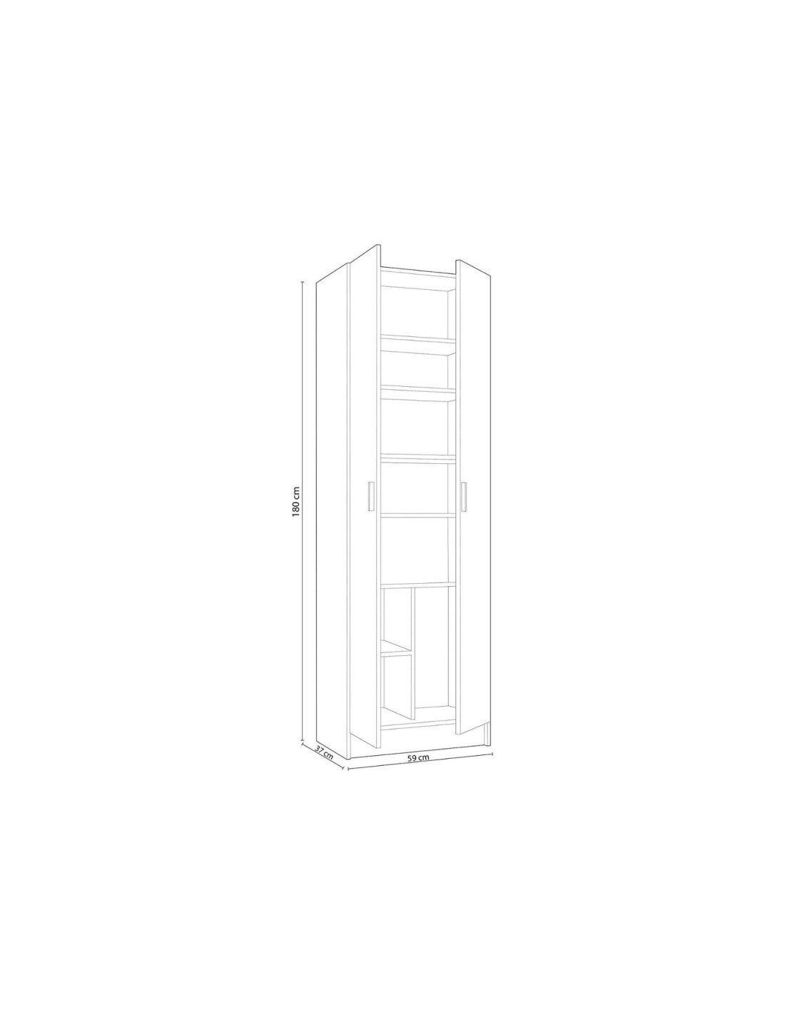 Armario de 2 puertas con 5 estantes regulables en altura. Está fabricado con melaminas de 15 mm. de espesor. La trasera del mueble es de madera de 3 mm.
